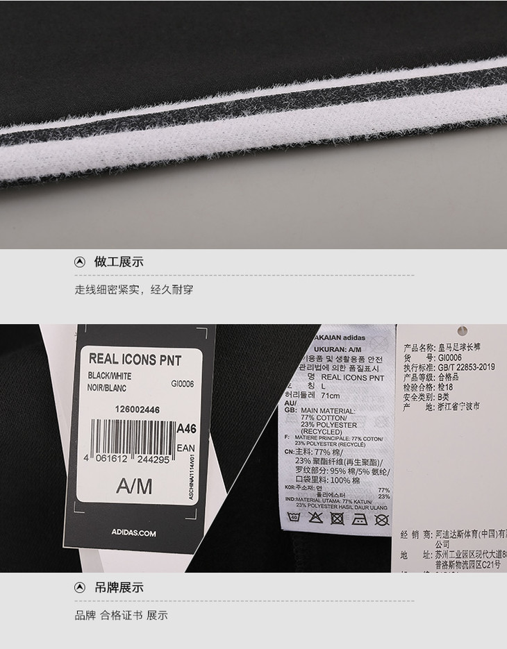 ADIDAS/阿迪达斯 皇马logo运动训练收口裤GI0006