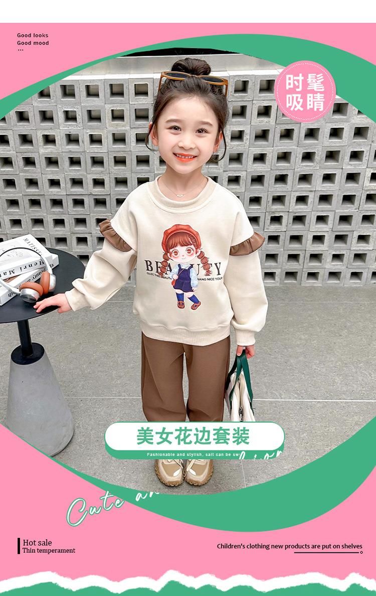 女童美女花边套装2024春季新款韩版两件套洋气网红童装潮