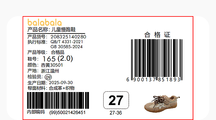 巴拉巴拉童鞋儿童慢跑鞋男女童2025年新款秋冬透气鞋子舒适百搭