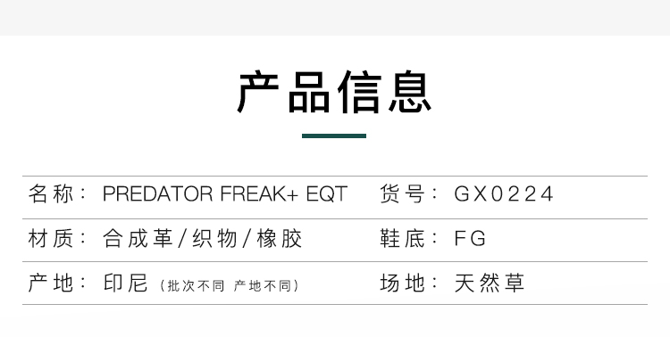 ADIDAS/阿迪达斯 PREDATOR FREAK+FG长钉 猎鹰EQT高端限量足球鞋GX0224