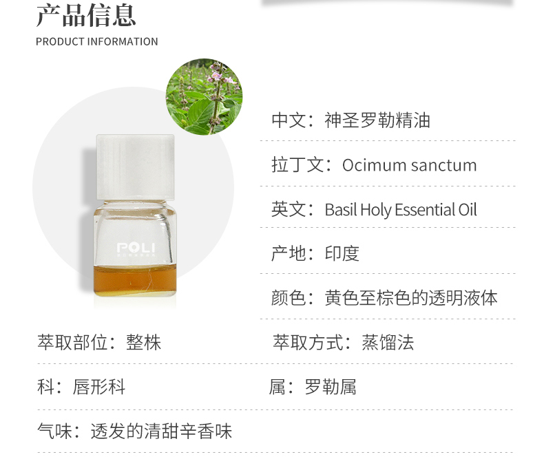 印度进口神圣罗勒精油进口天然单方精油批发颇黎POLI罗勒精油原料