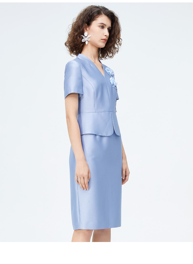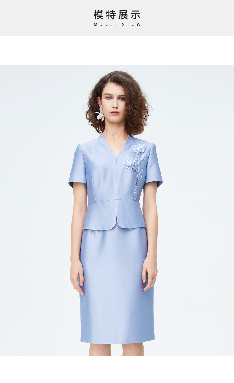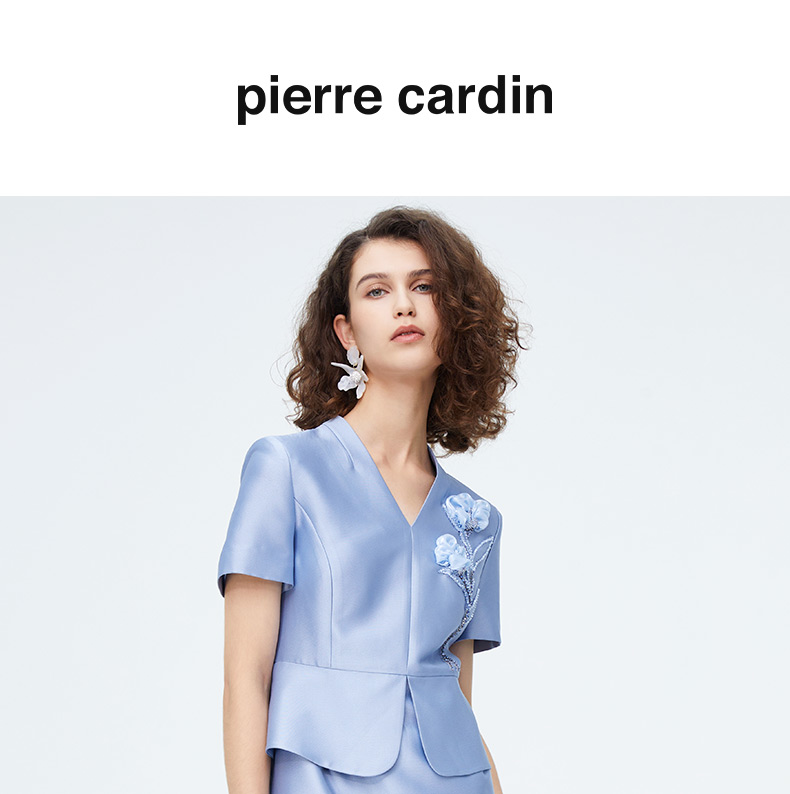 [皮尔卡丹女装]卡丹女装新品法式小黑裙V领长袖优雅长袖连衣裙