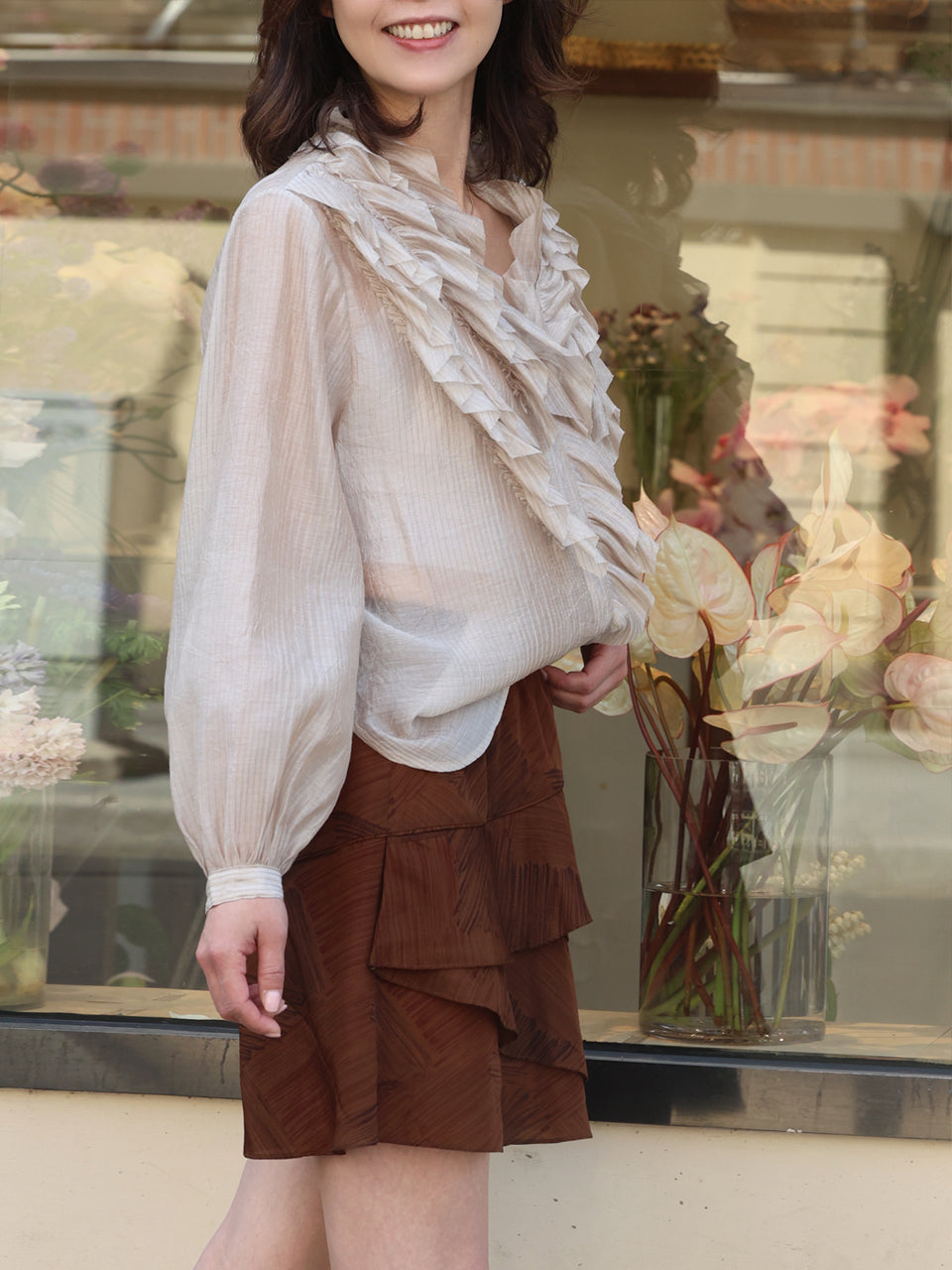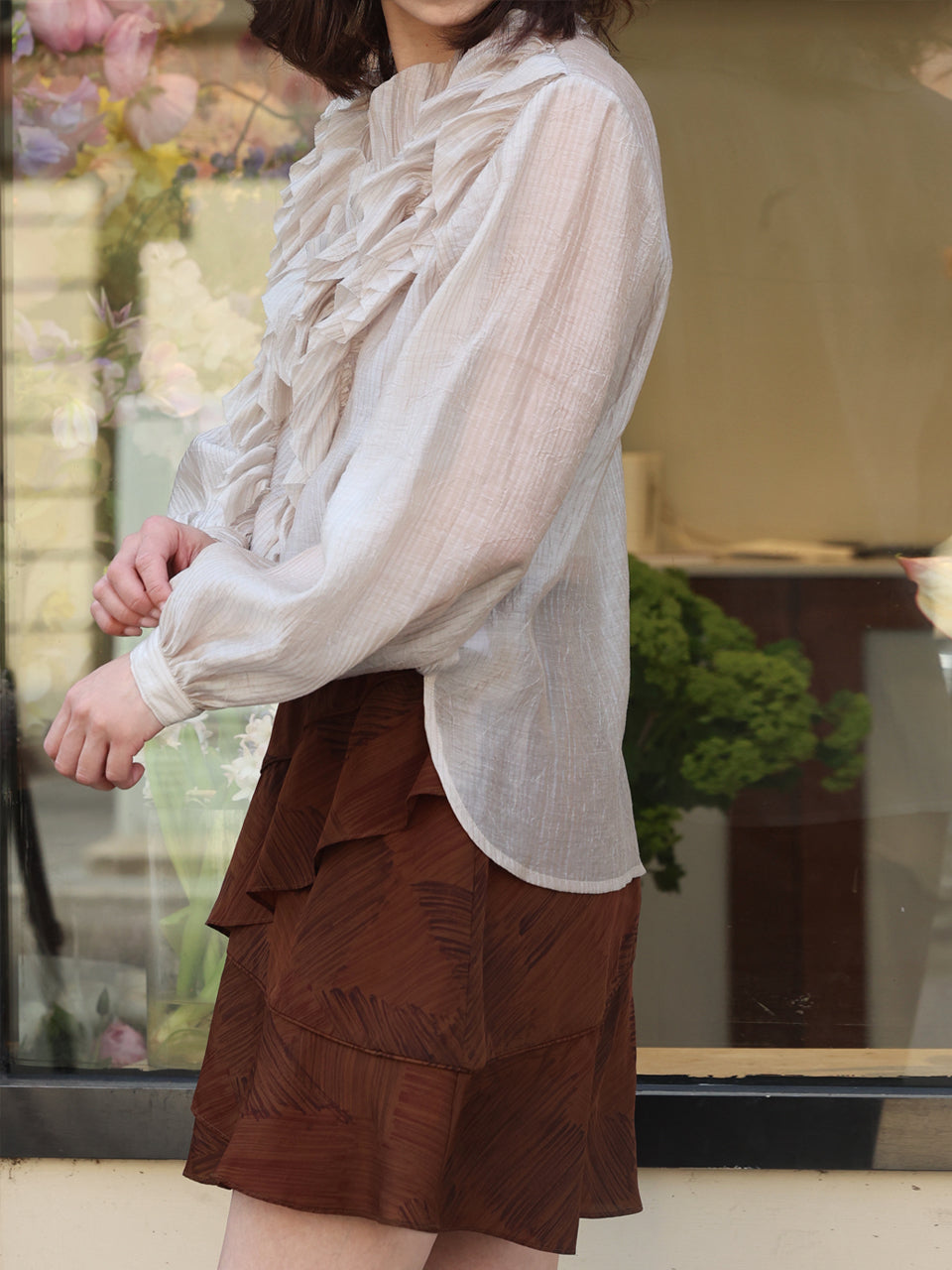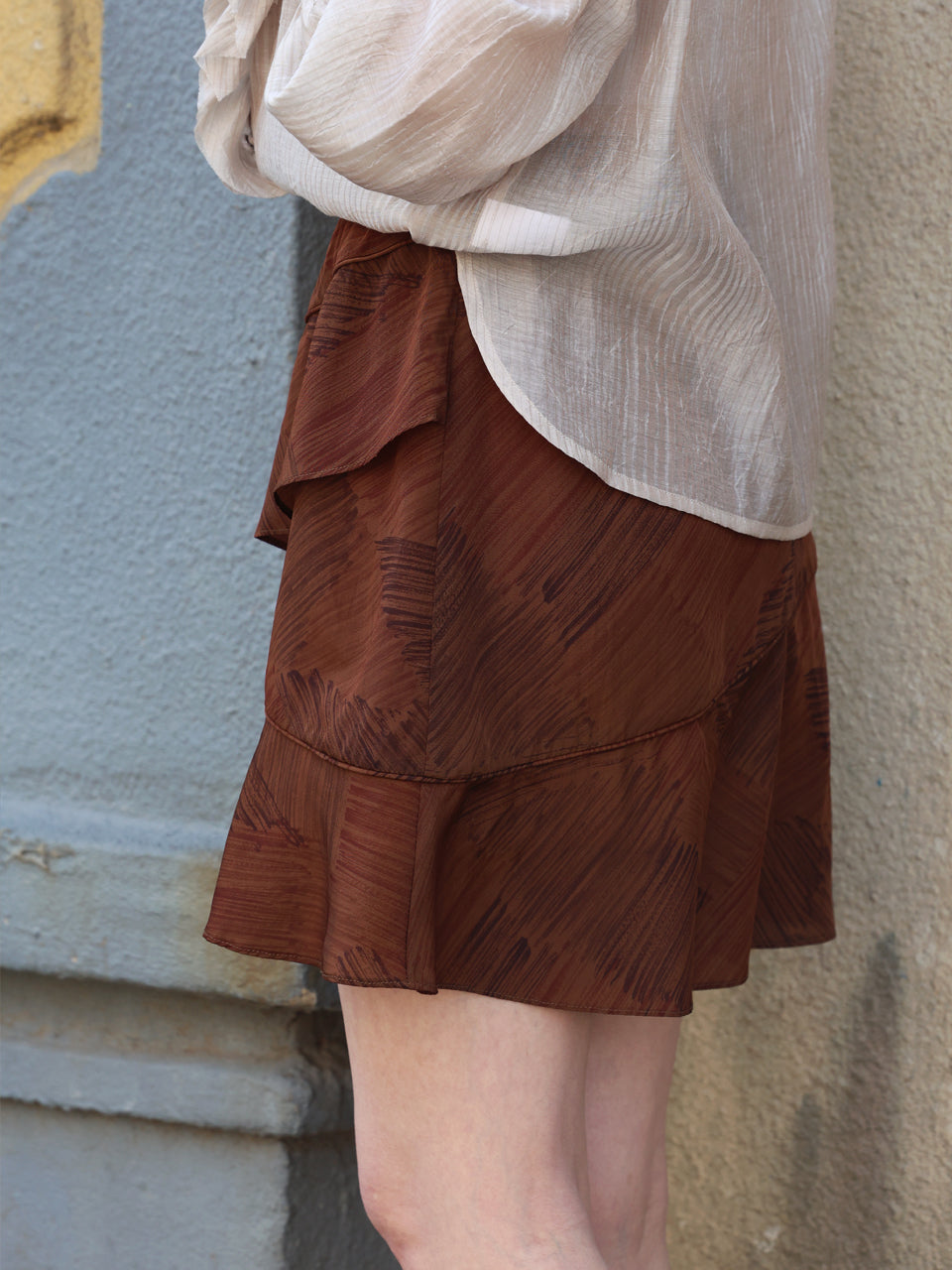 TYNVIE 层叠荷叶边短裙 - 咖啡印花