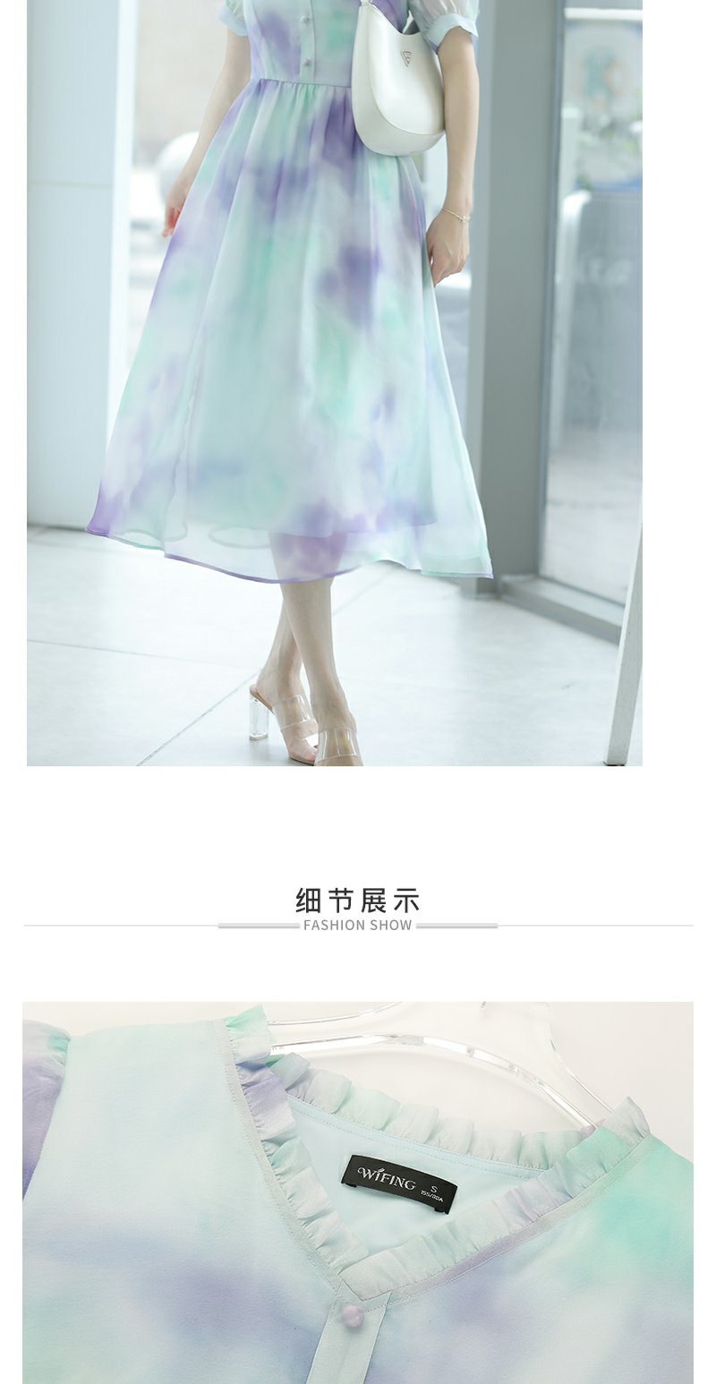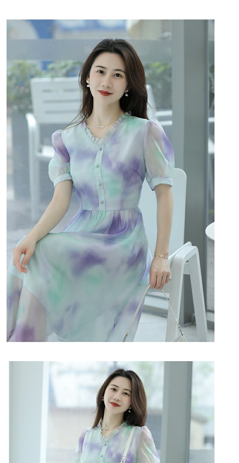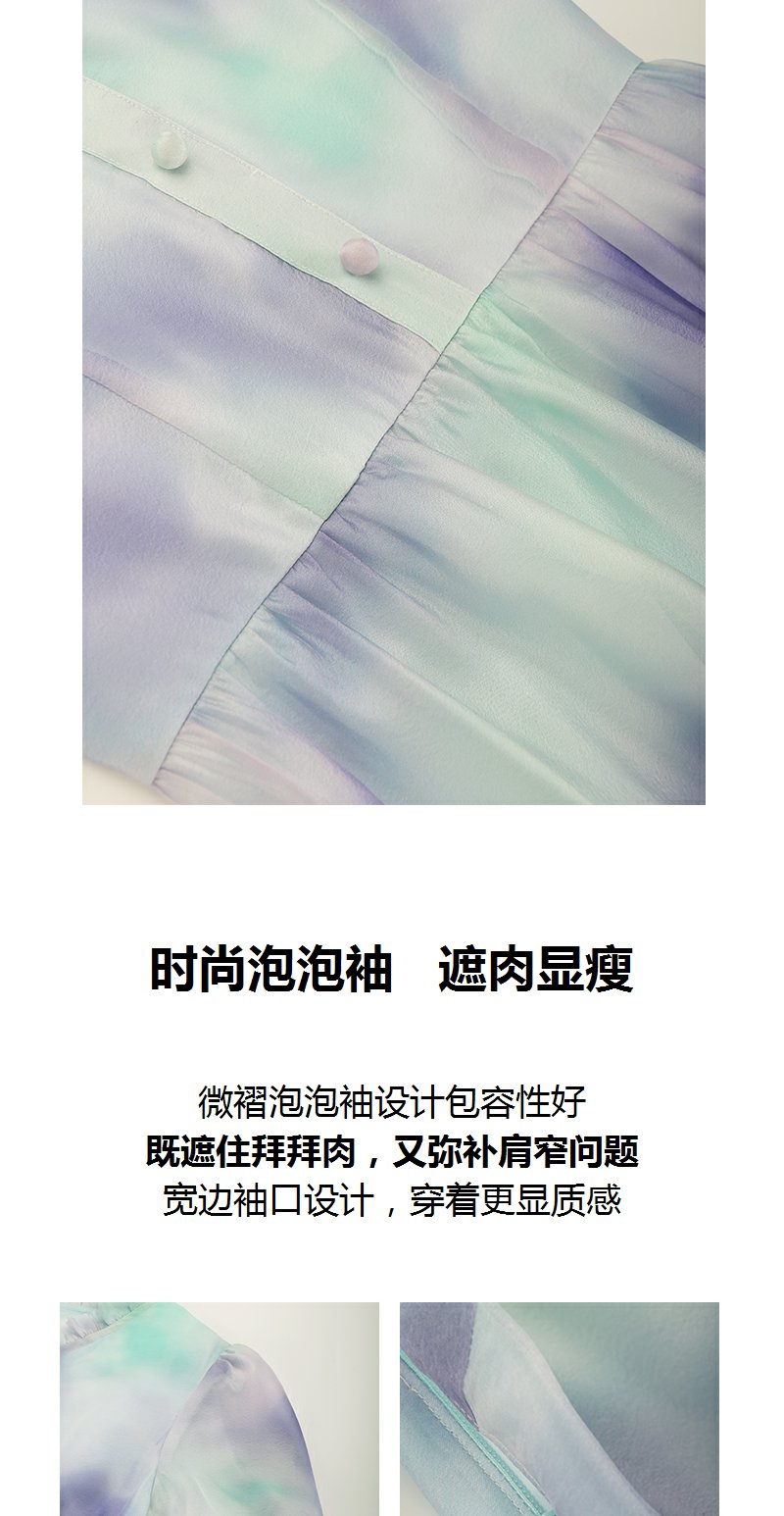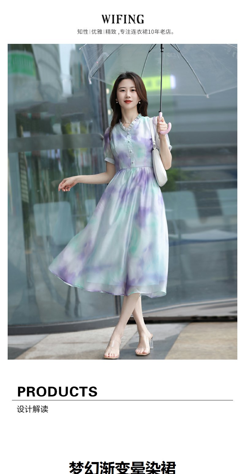 未风雪纺印花渐变连衣裙女夏2025夏季新款气质泡泡袖减龄显瘦裙子