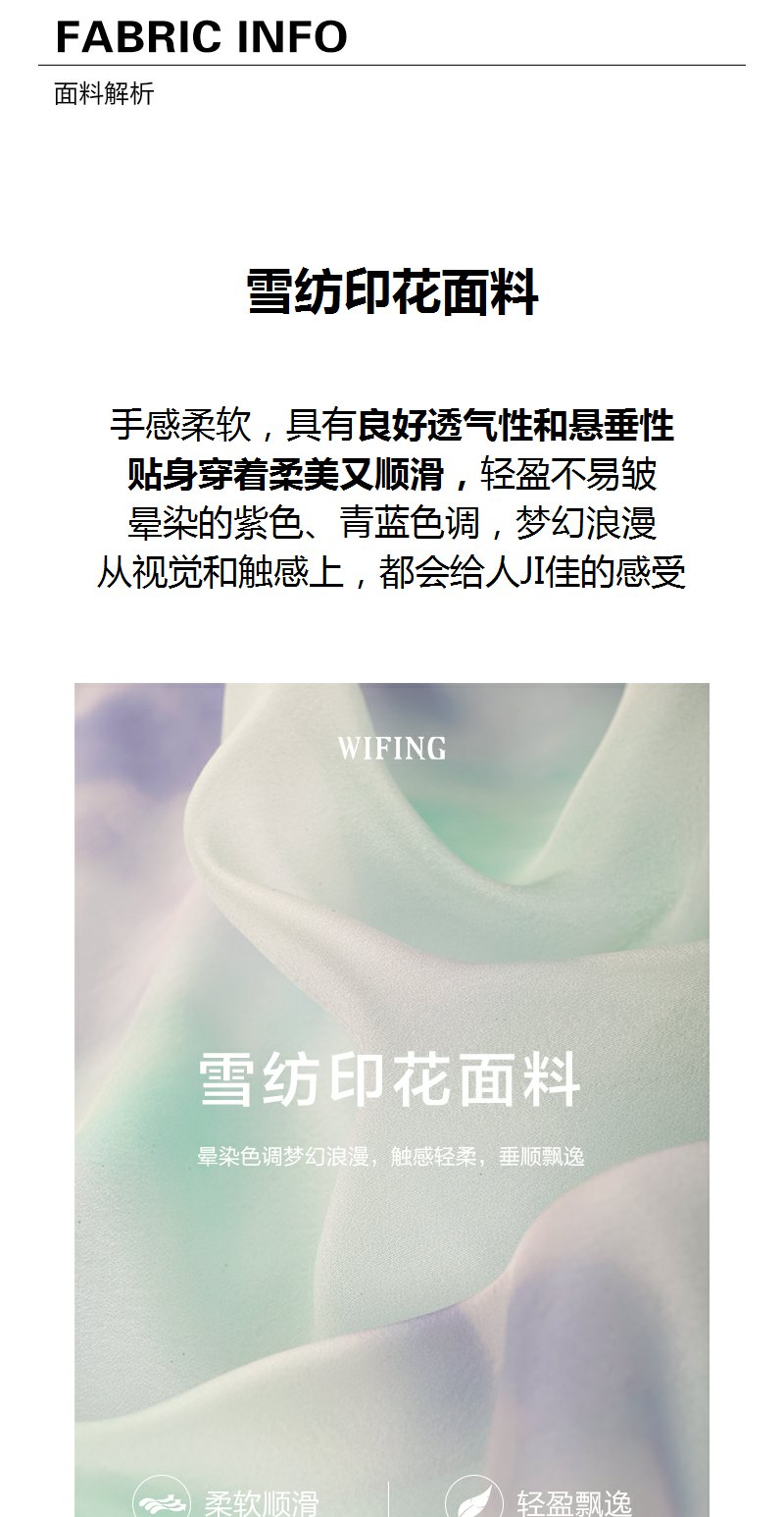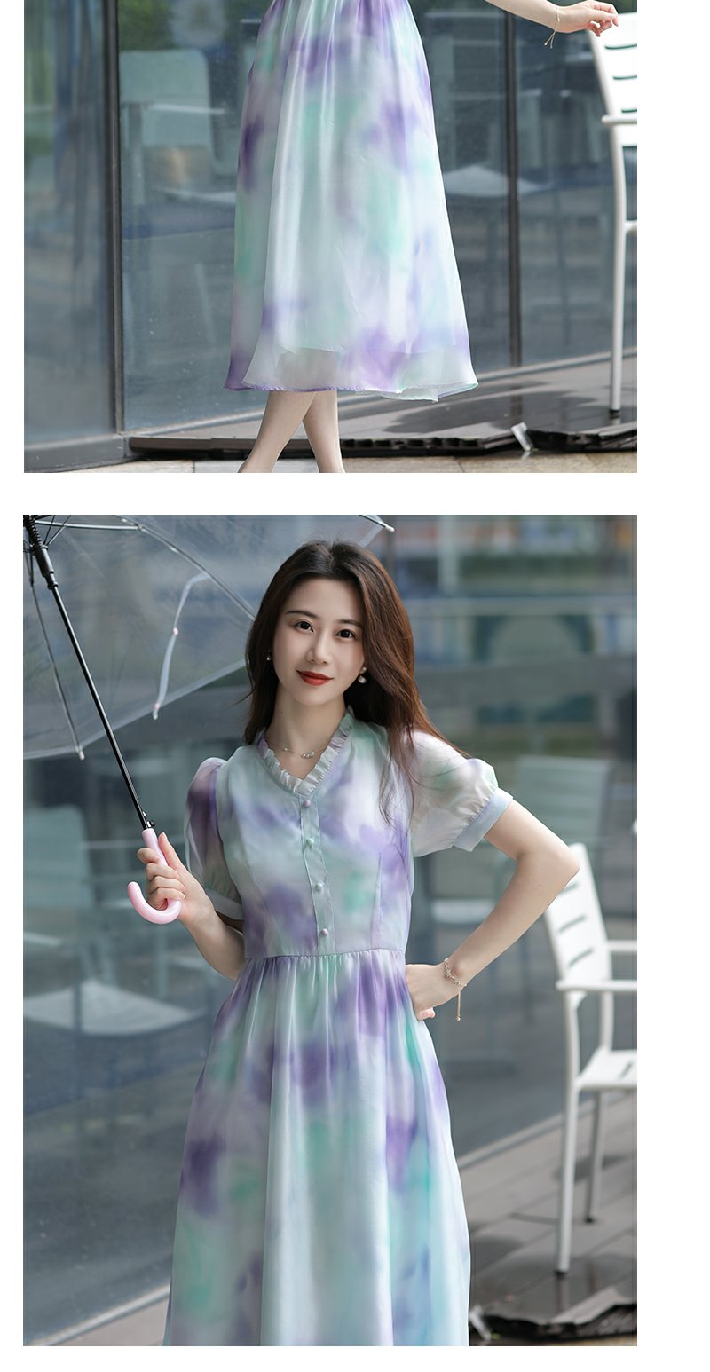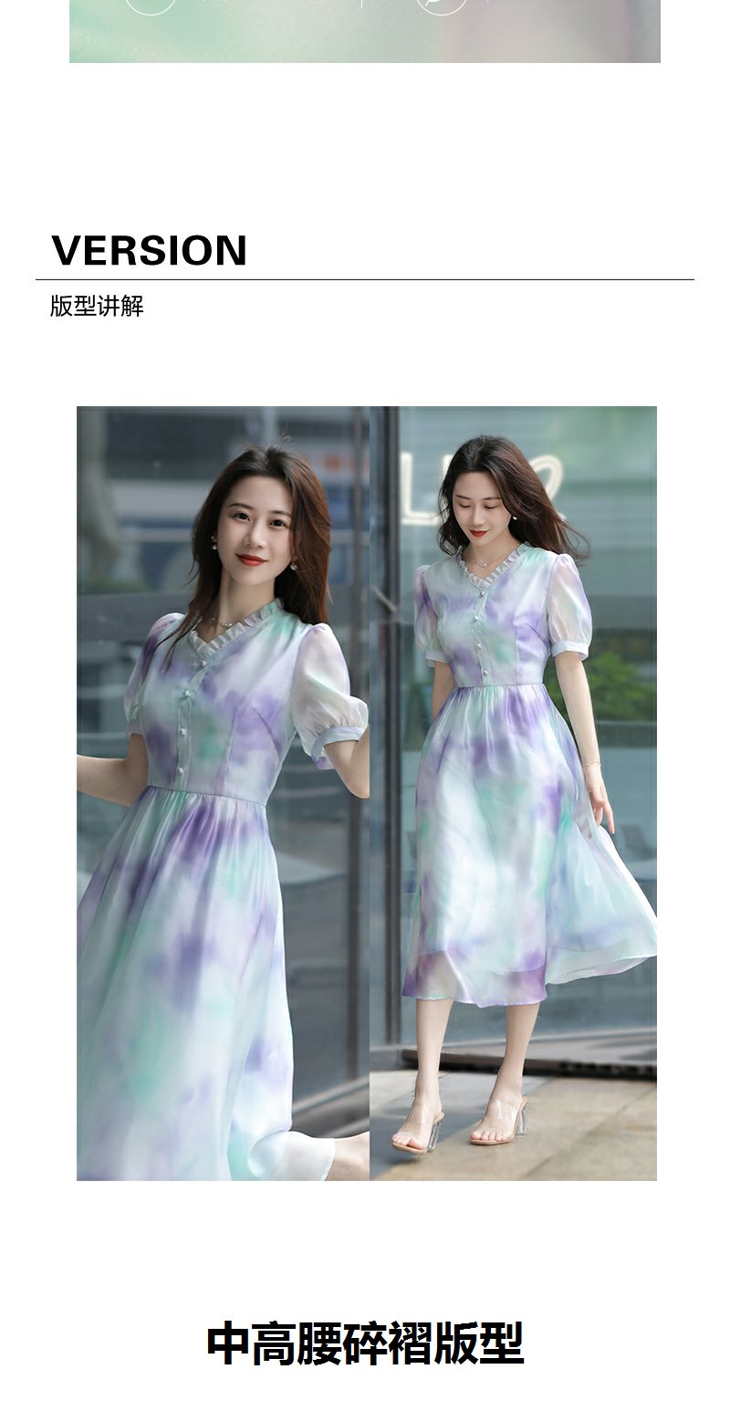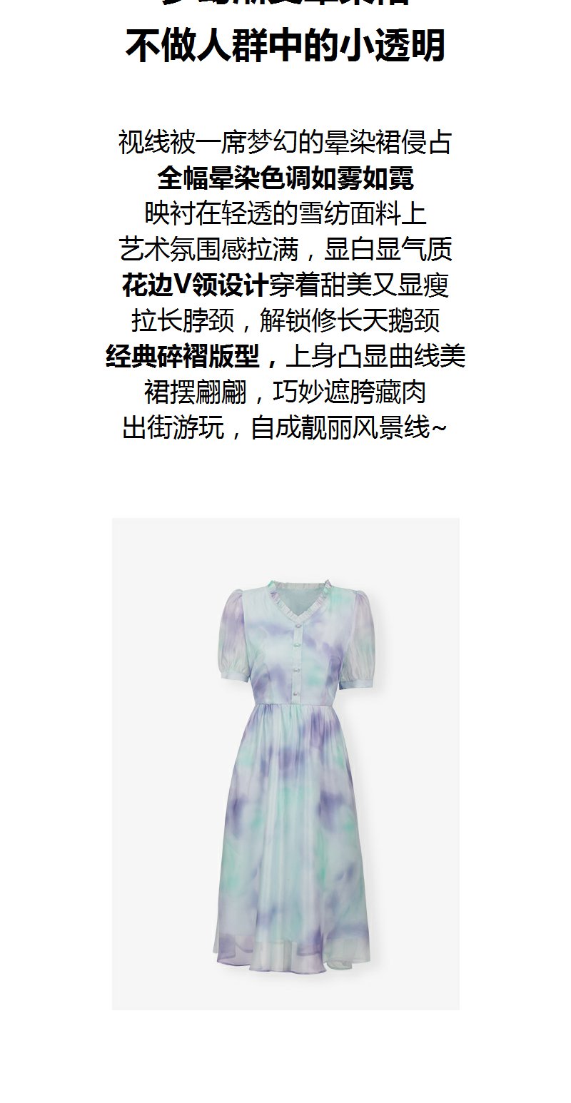 未风雪纺印花渐变连衣裙女夏2025夏季新款气质泡泡袖减龄显瘦裙子