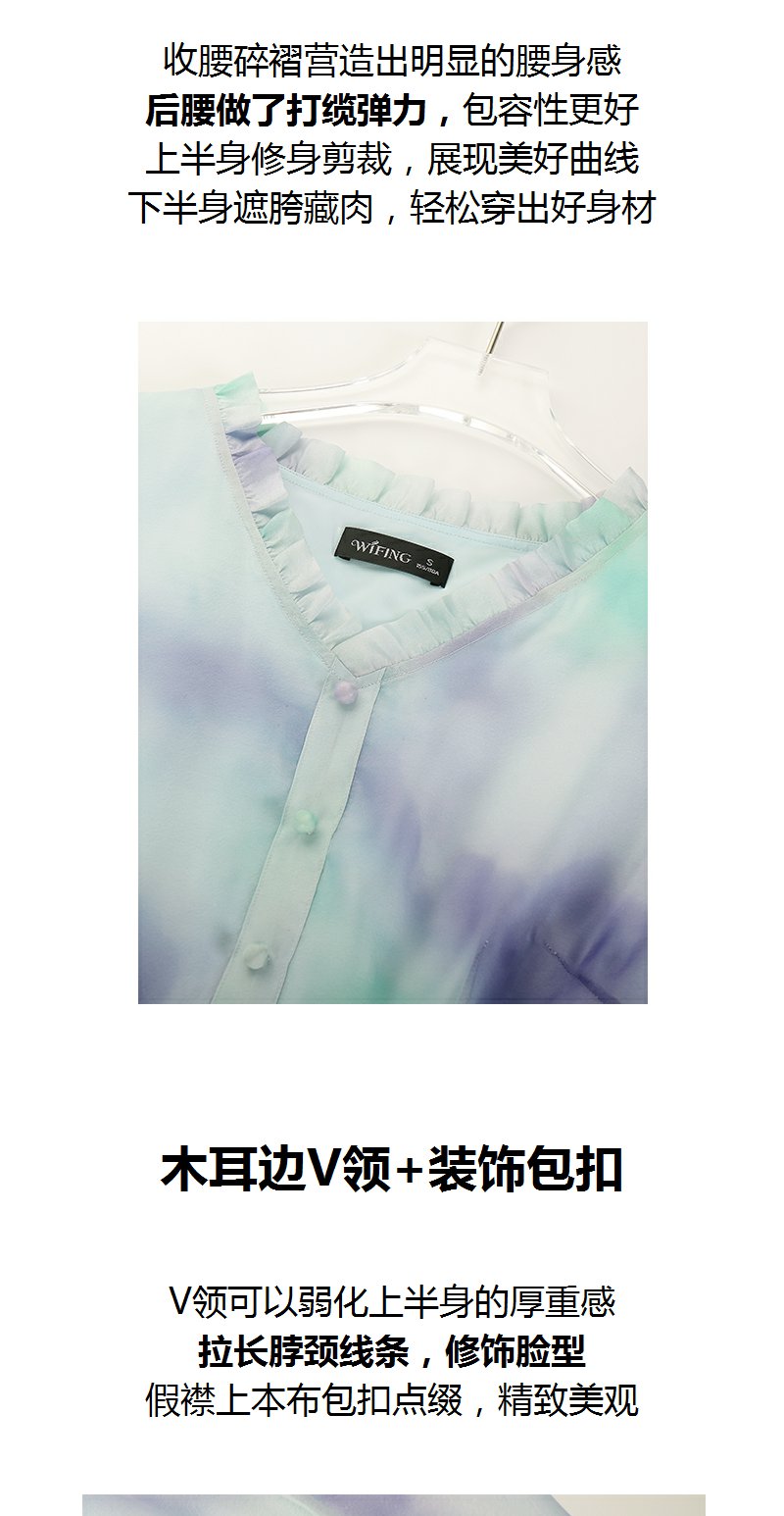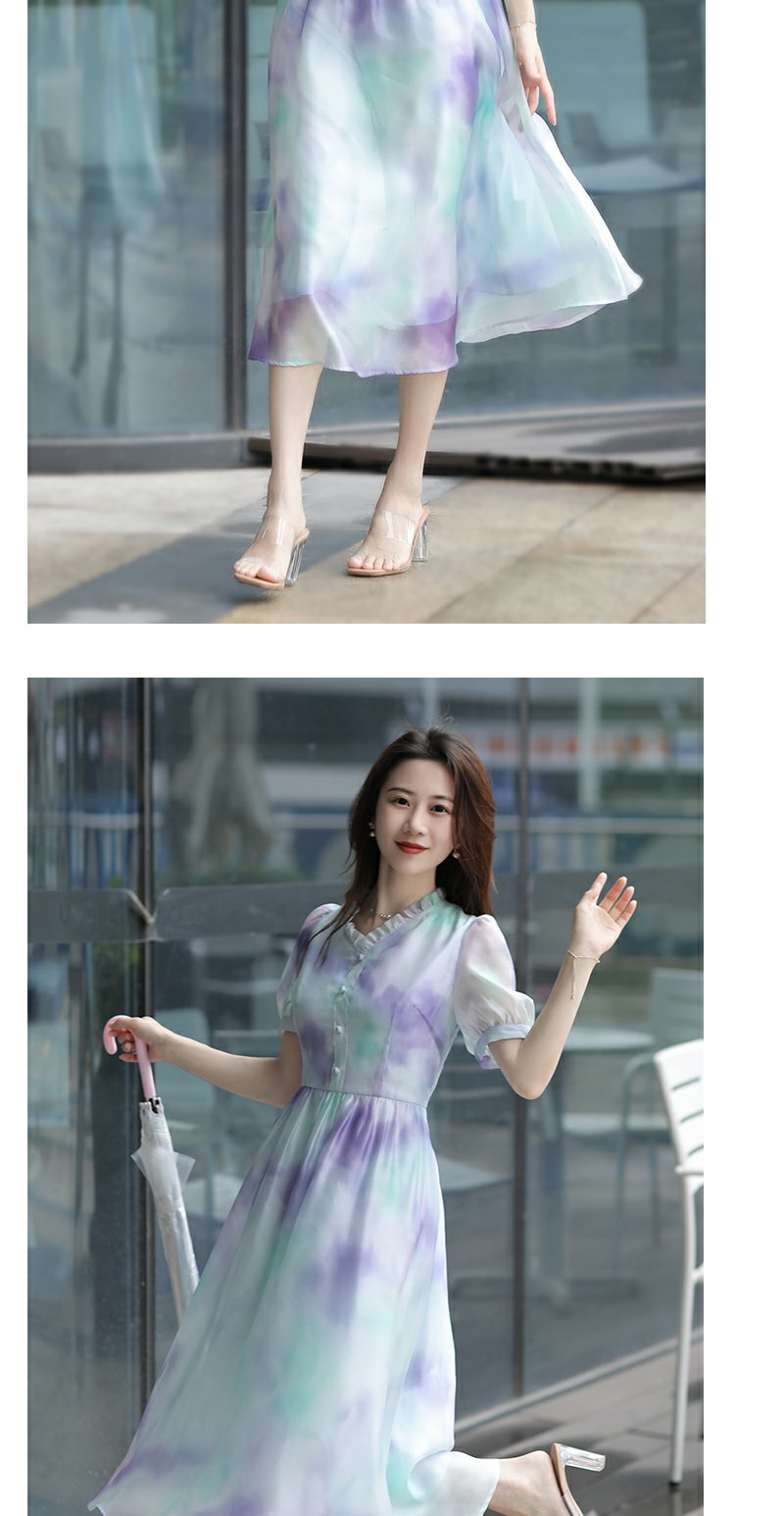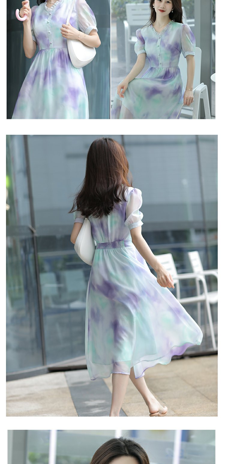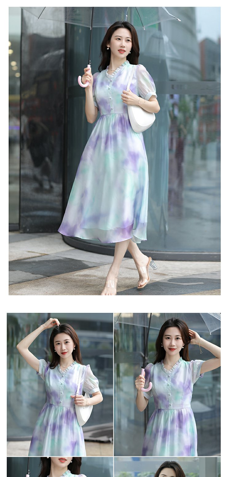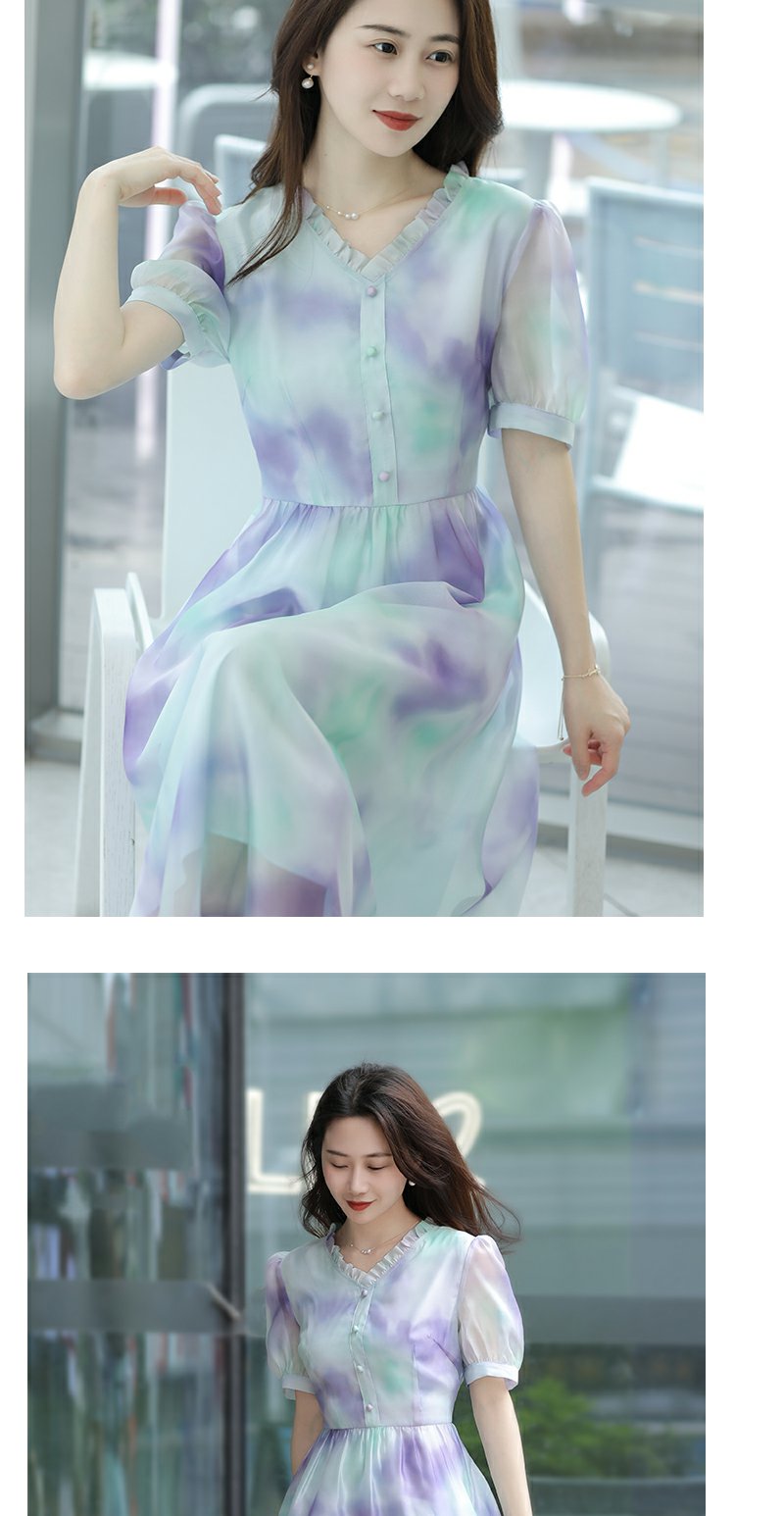 未风雪纺印花渐变连衣裙女夏2025夏季新款气质泡泡袖减龄显瘦裙子