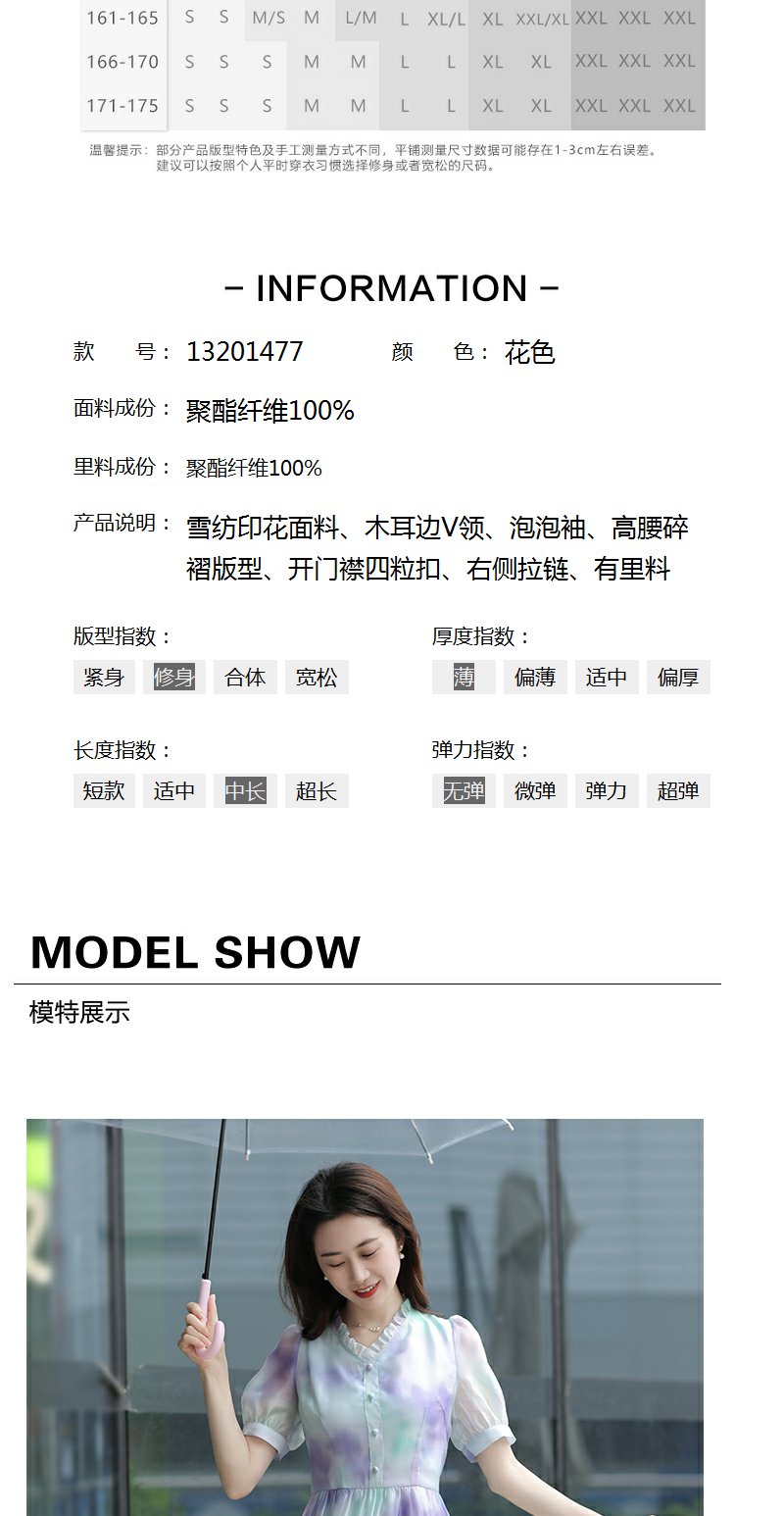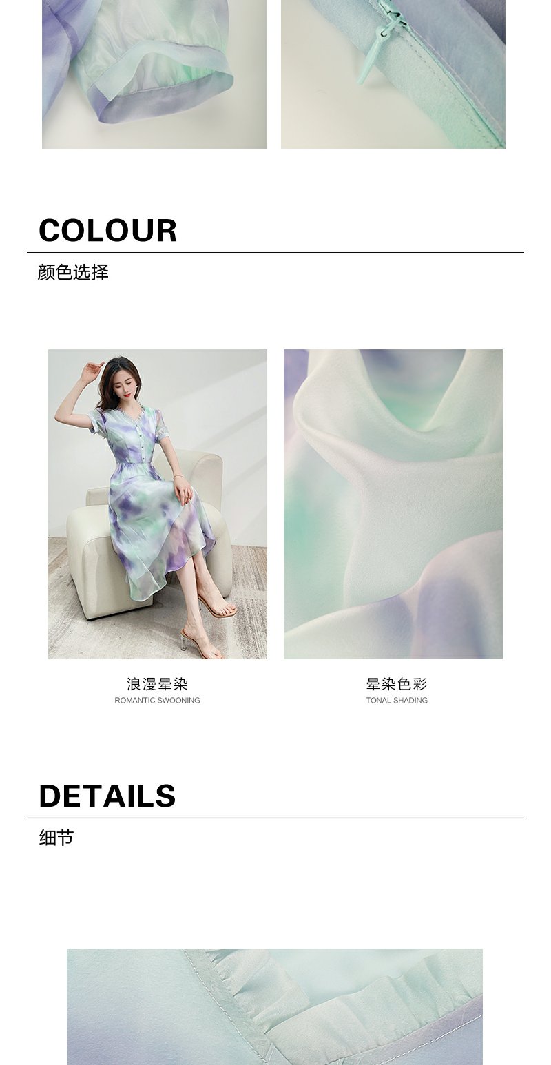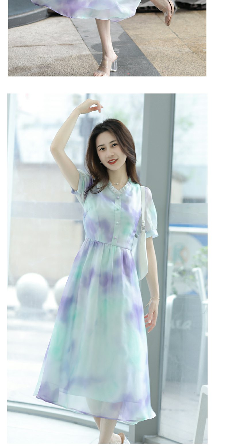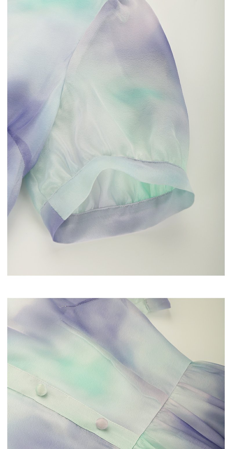 未风雪纺印花渐变连衣裙女夏2025夏季新款气质泡泡袖减龄显瘦裙子