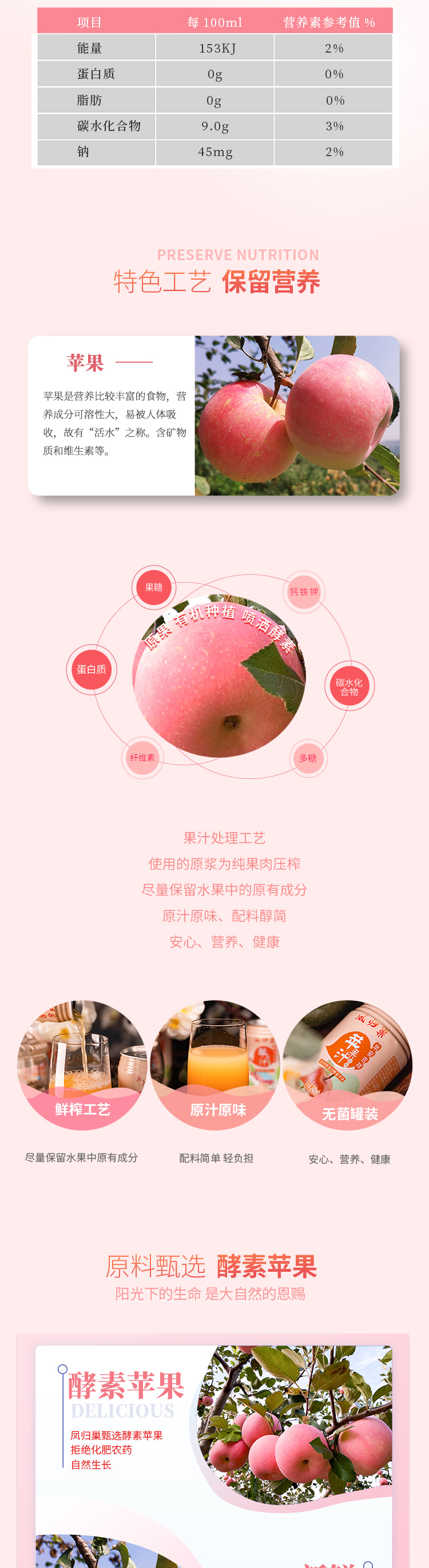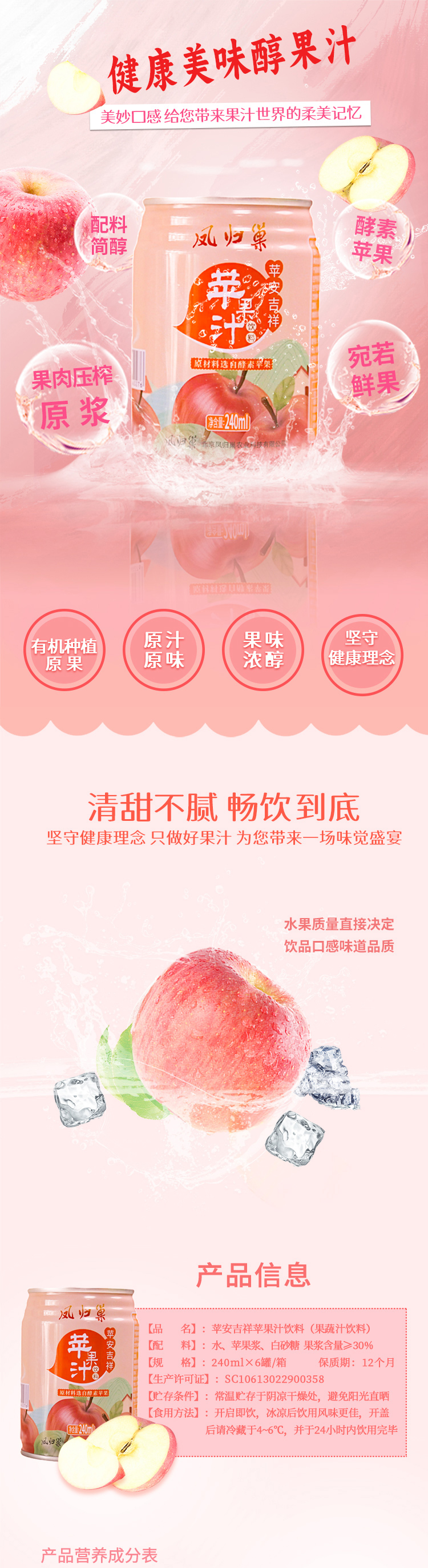 【包装升级】凤归巢 苹安吉祥 苹果汁饮料 果蔬汁饮料 240ml*6罐