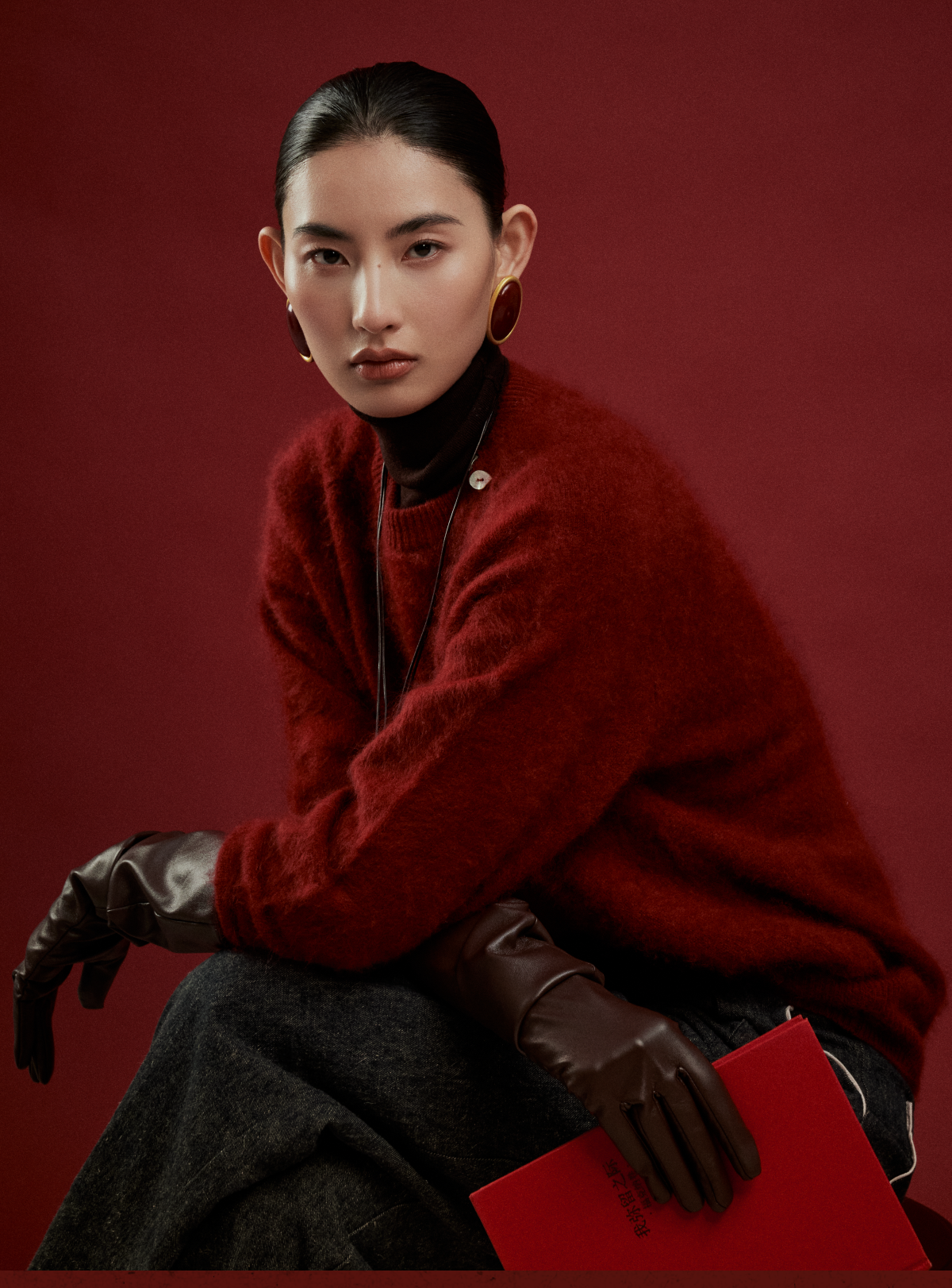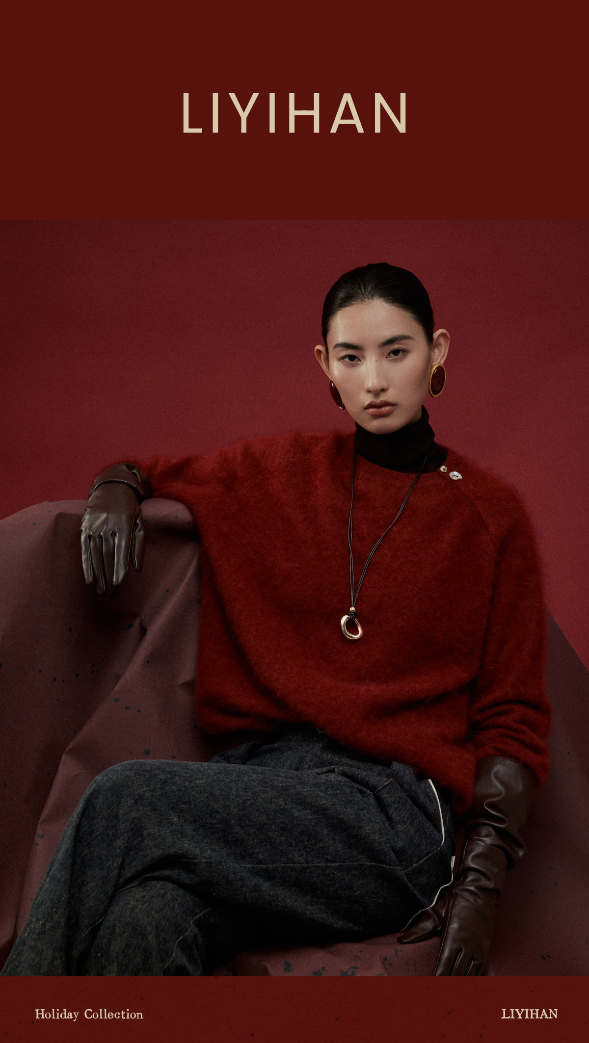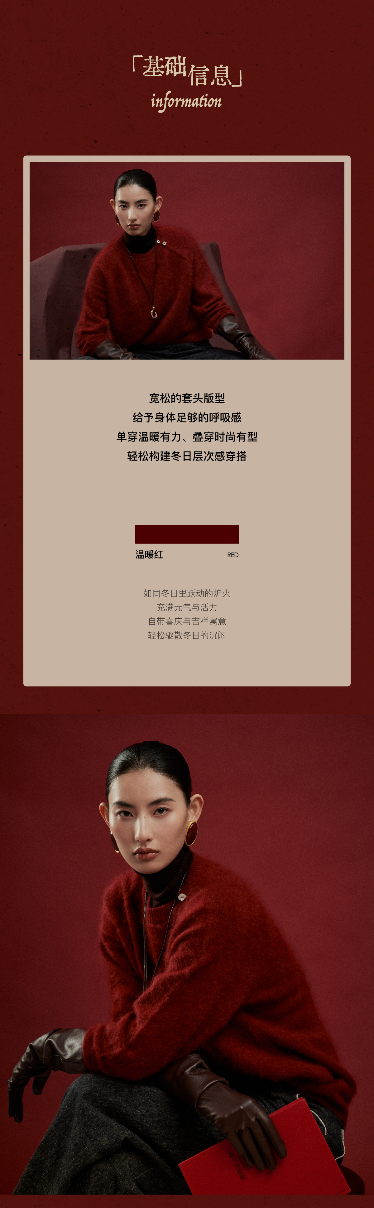 LIYIHAN岁暖红 2025冬季新款圆领毛衣红色女拉绒绵羊毛保暖针织衫