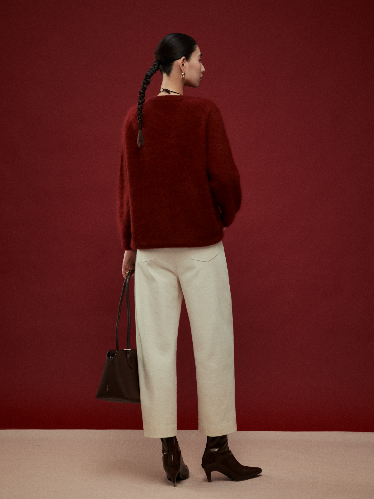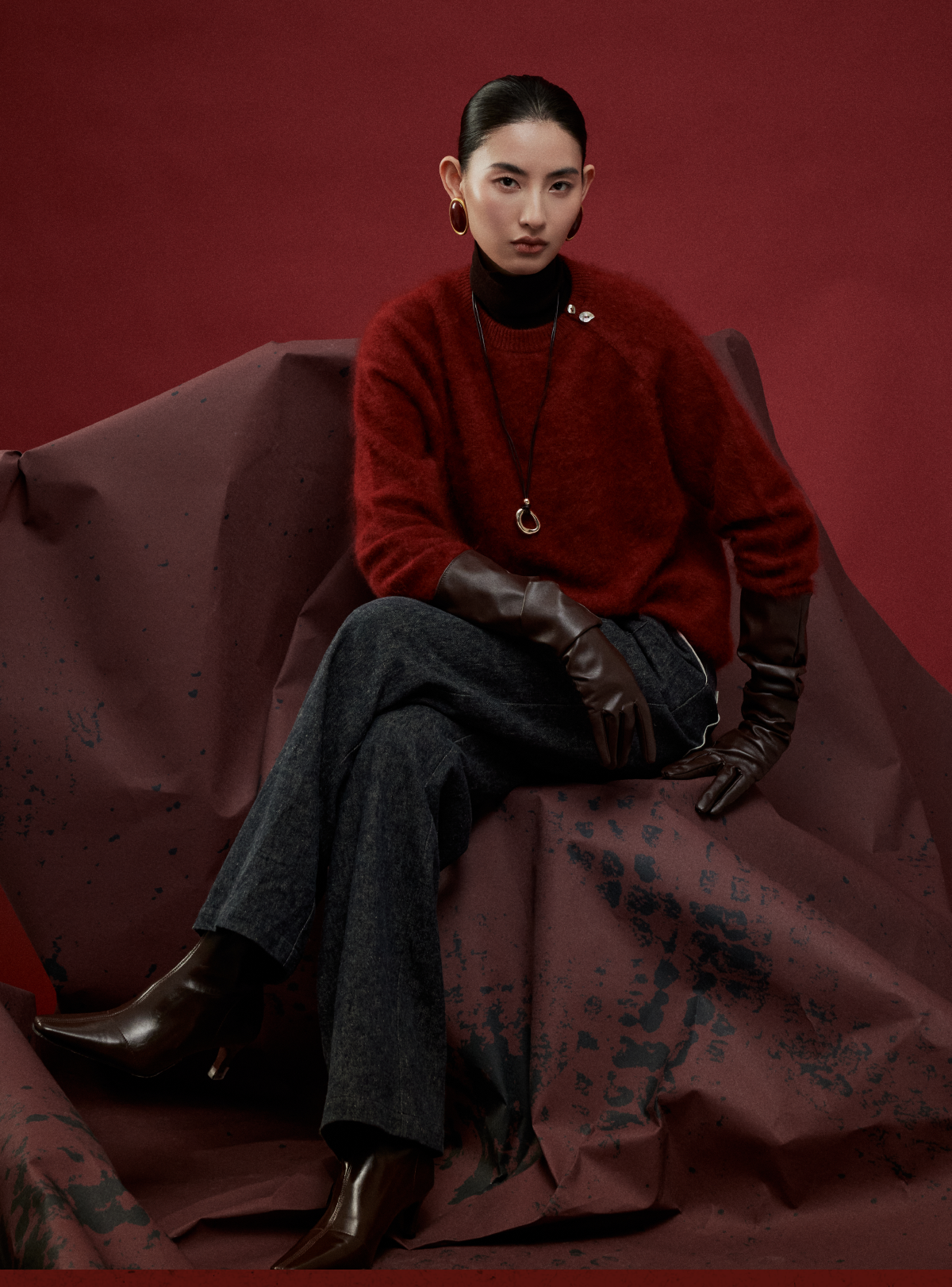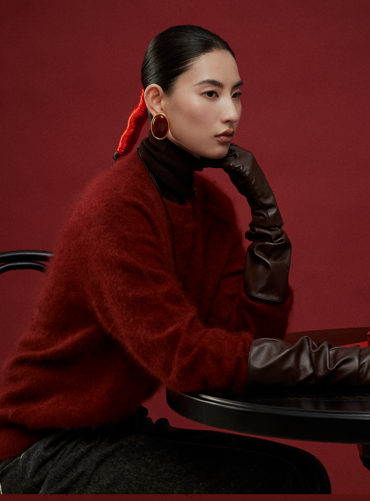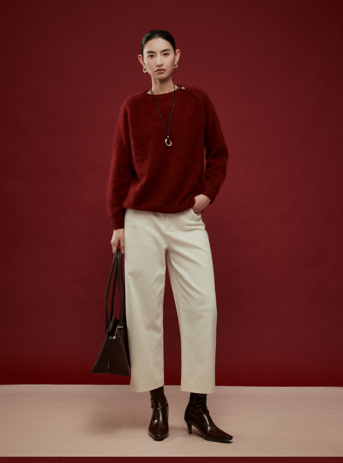 LIYIHAN岁暖红 2025冬季新款圆领毛衣红色女拉绒绵羊毛保暖针织衫