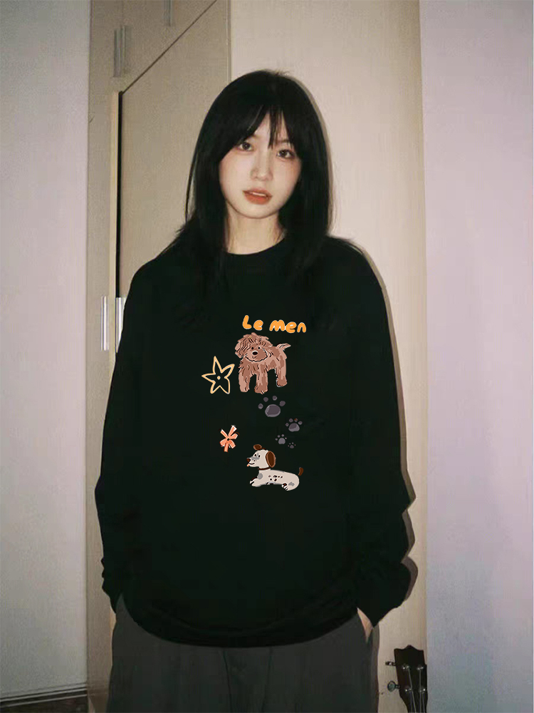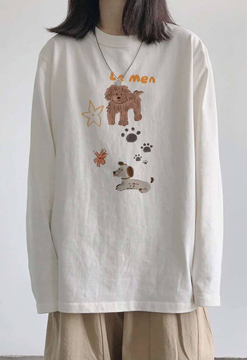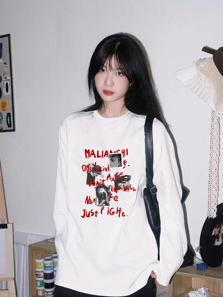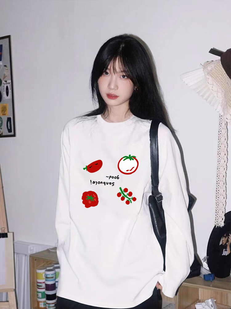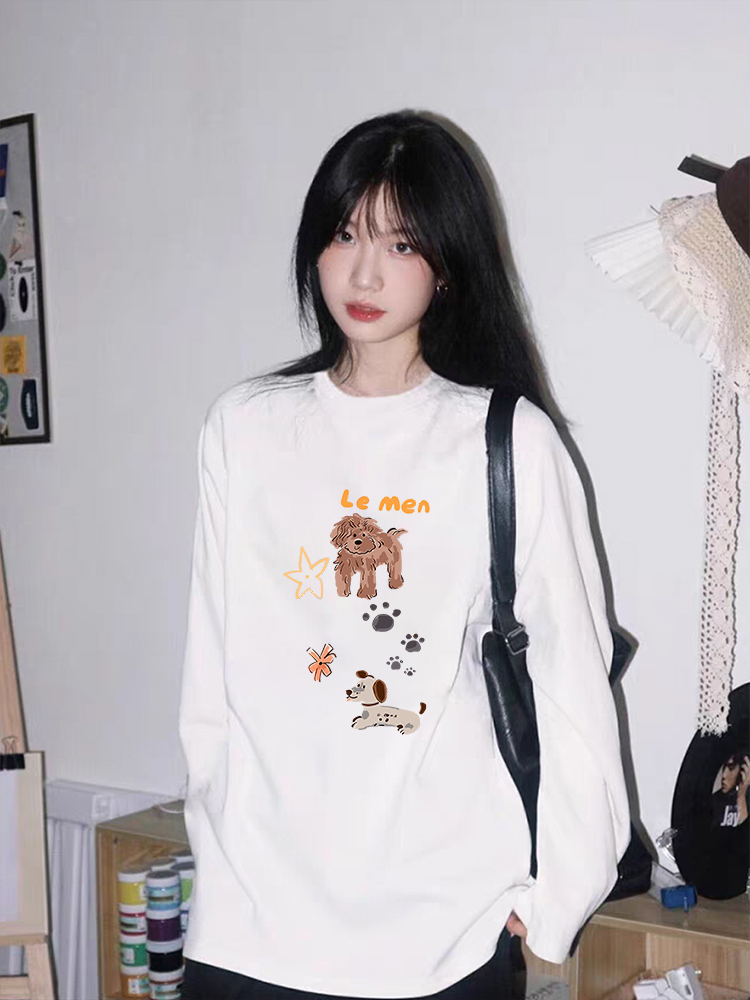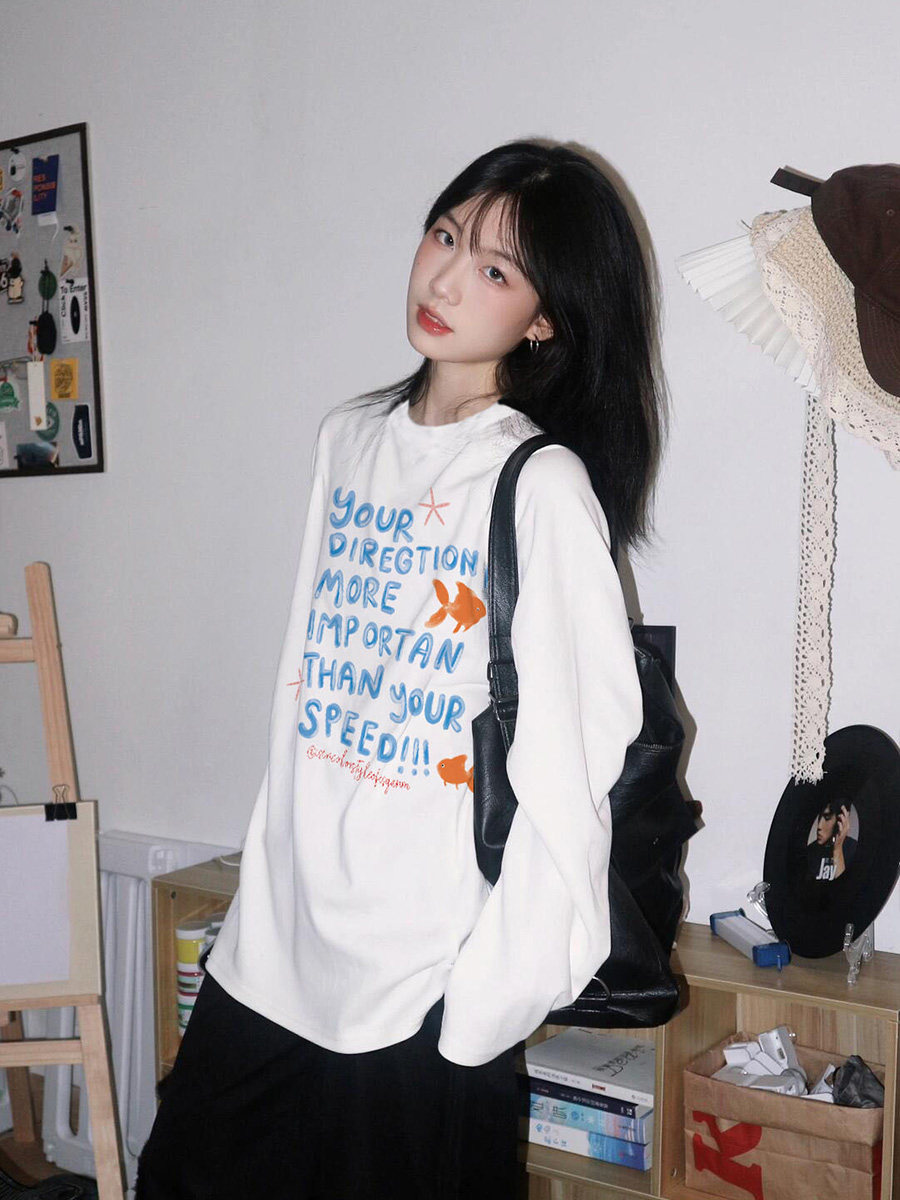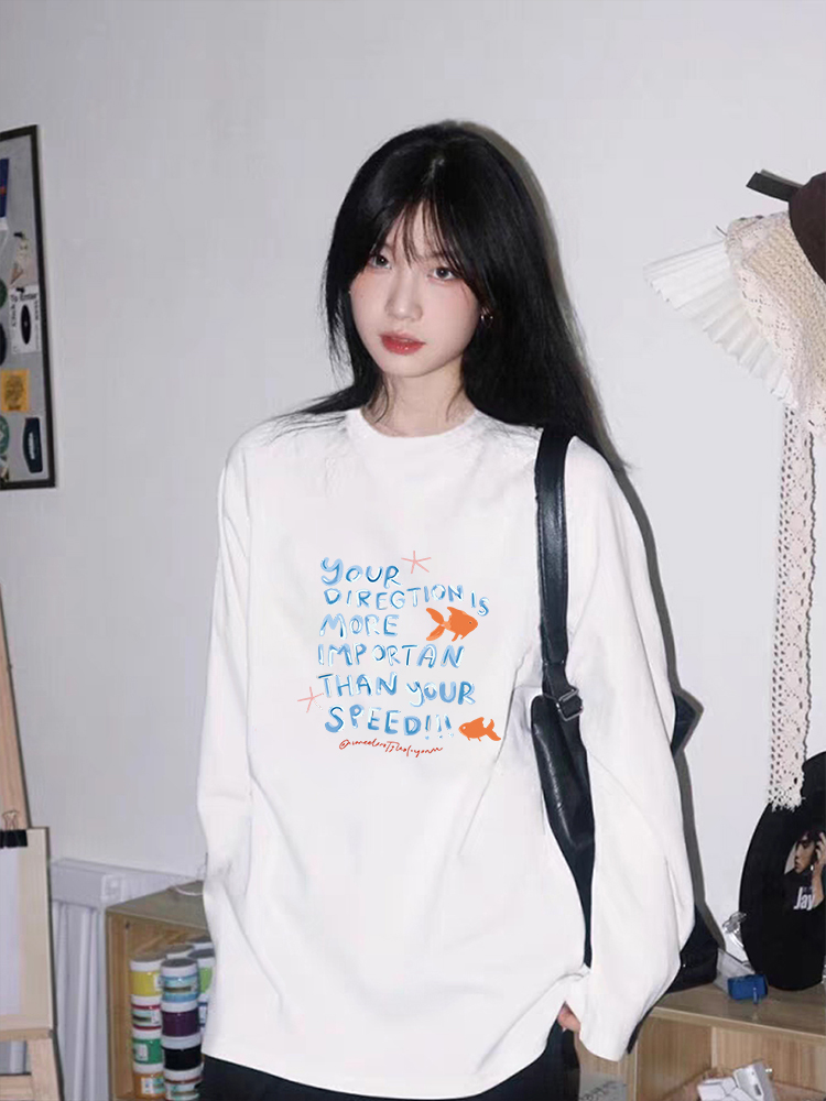 【YW】无忧购韩系Ins风女款可爱百搭卡通字母印花长袖t恤(截单后7天发货)