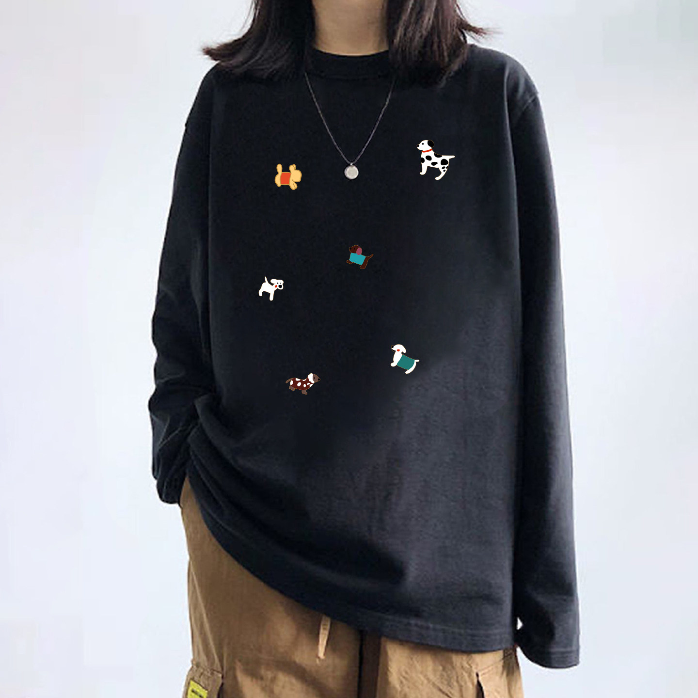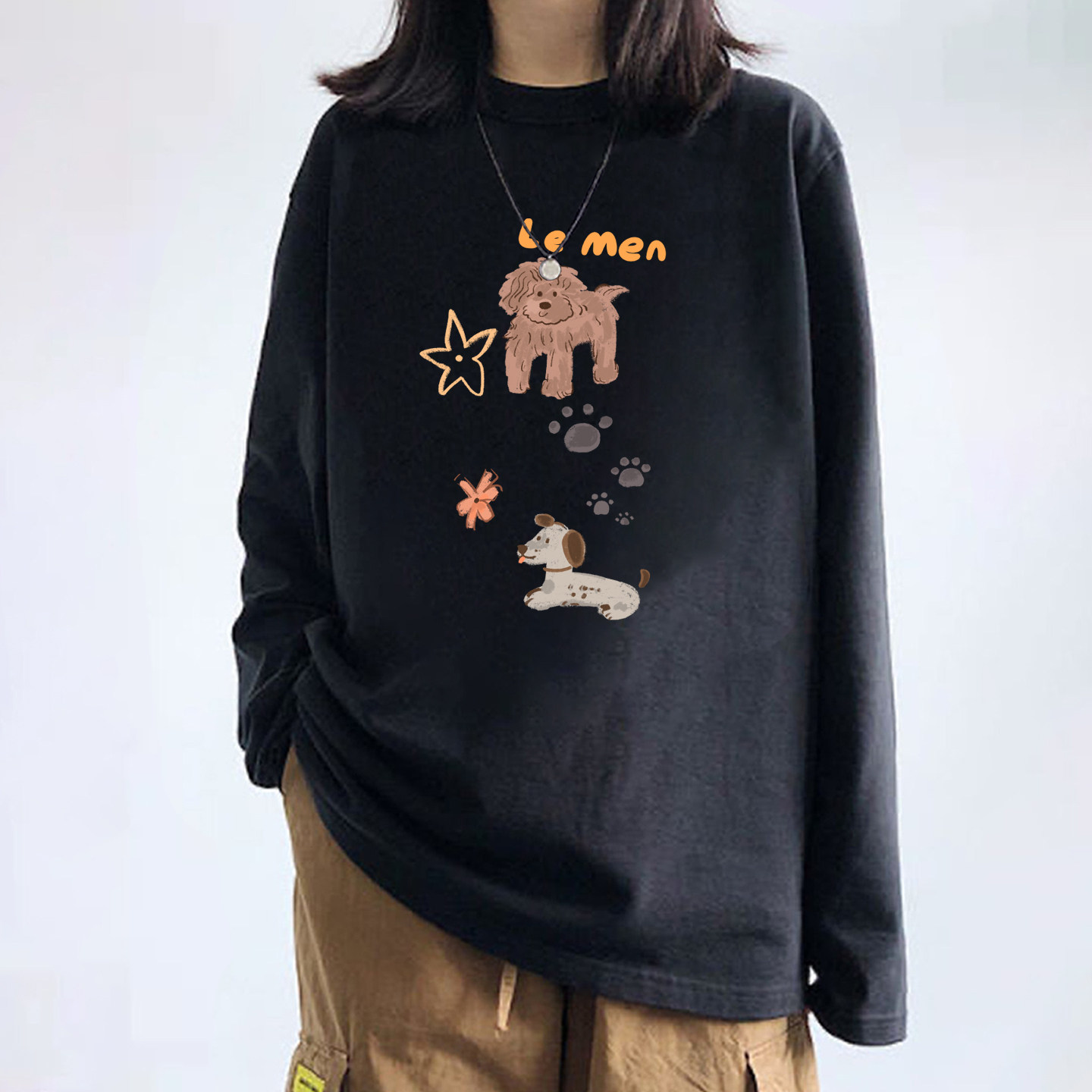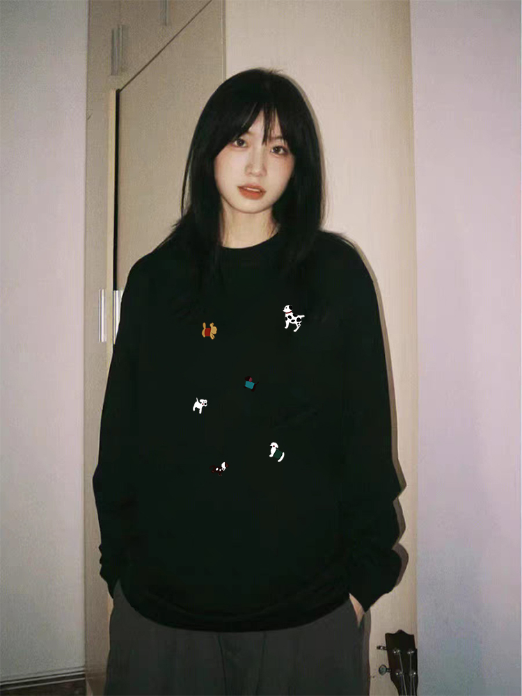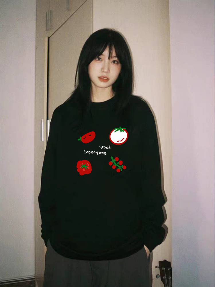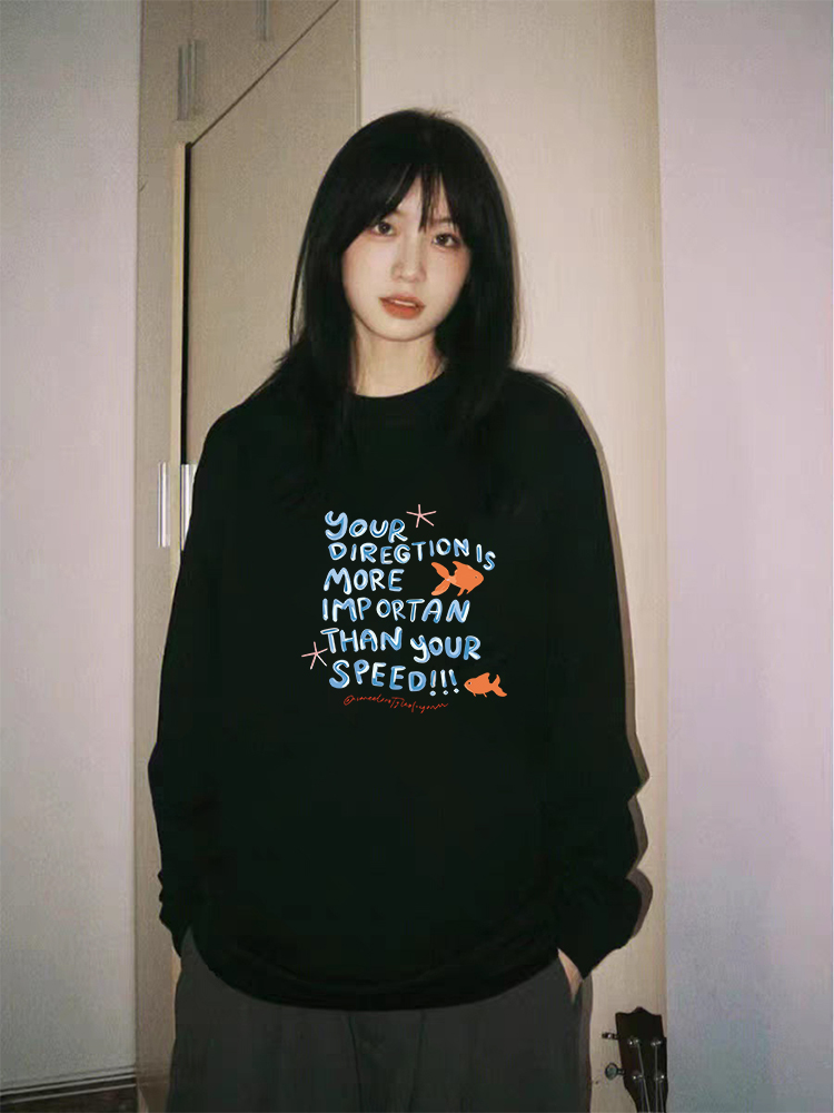 【YW】无忧购韩系Ins风女款可爱百搭卡通字母印花长袖t恤(截单后7天发货)