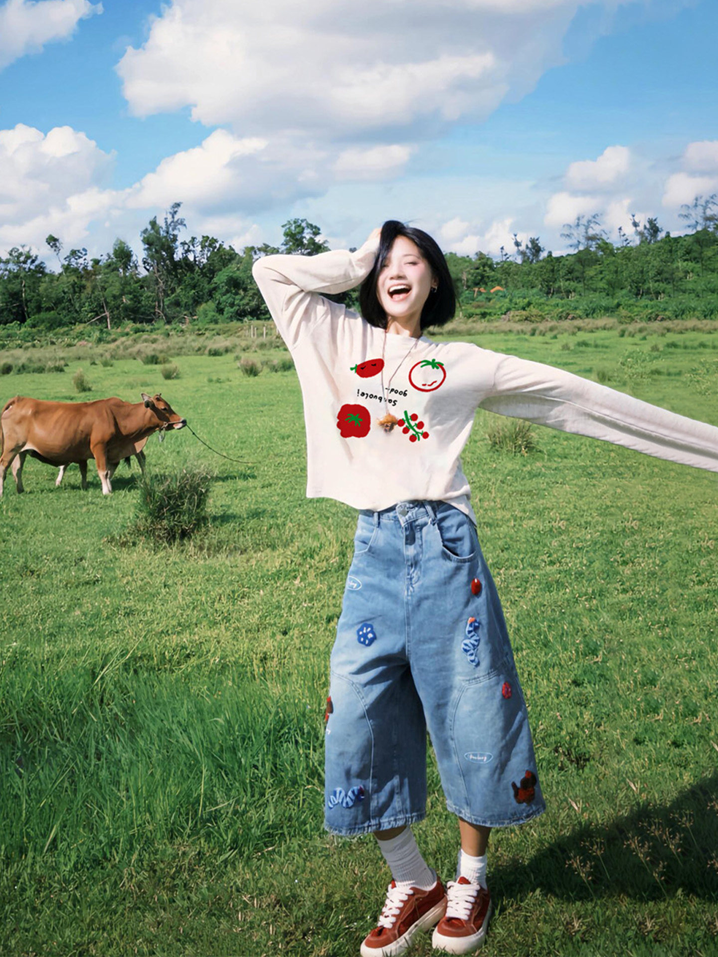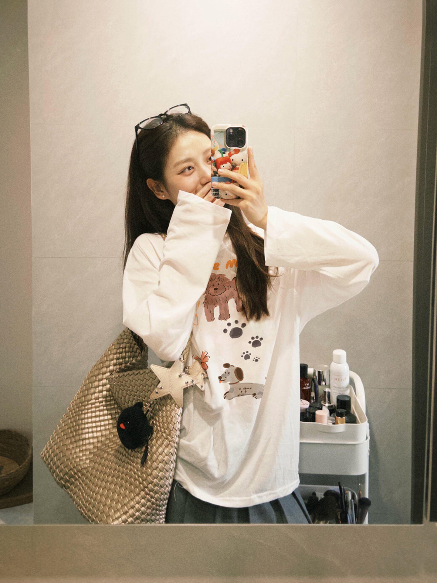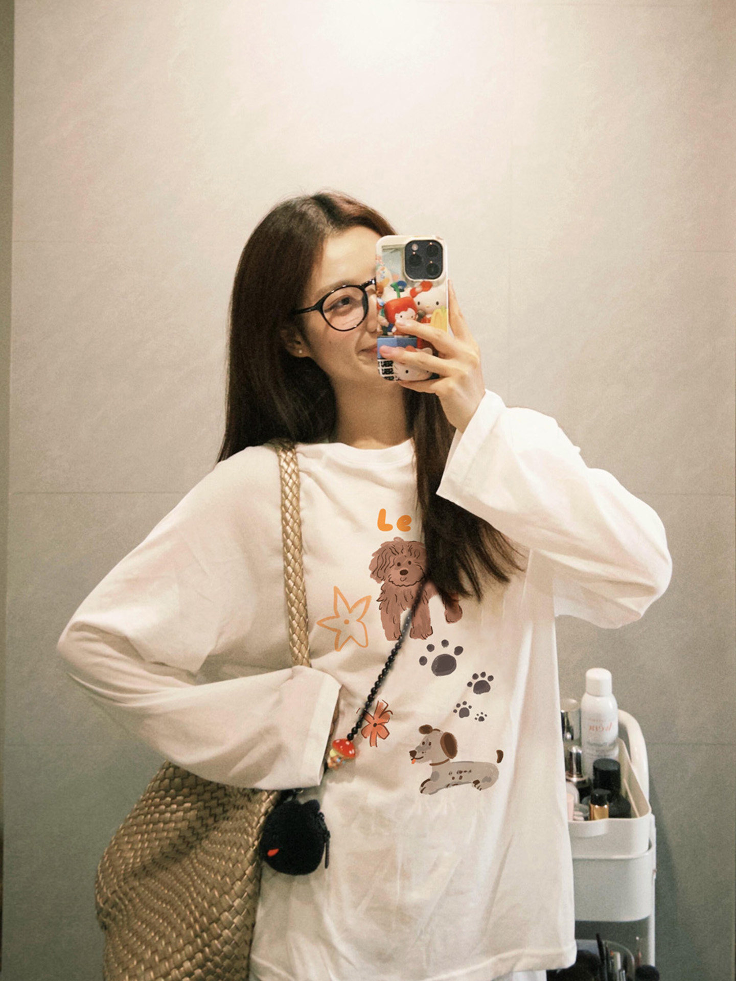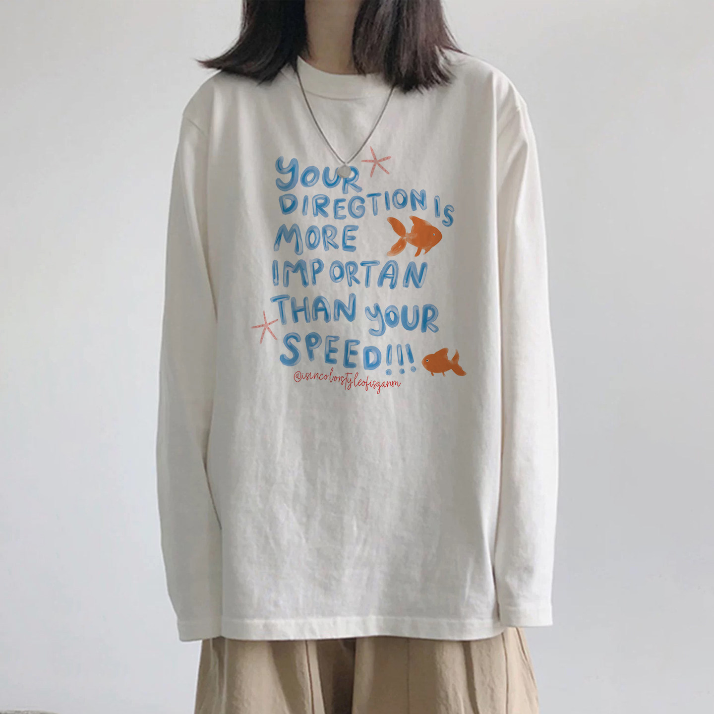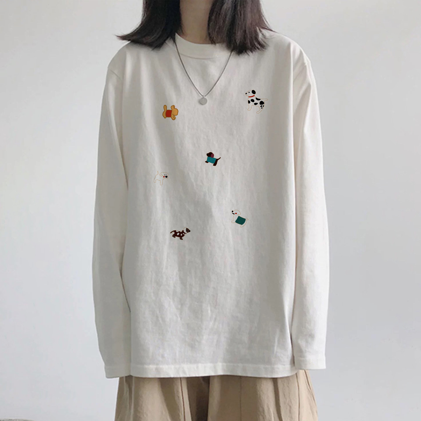 【YW】无忧购韩系Ins风女款可爱百搭卡通字母印花长袖t恤(截单后7天发货)