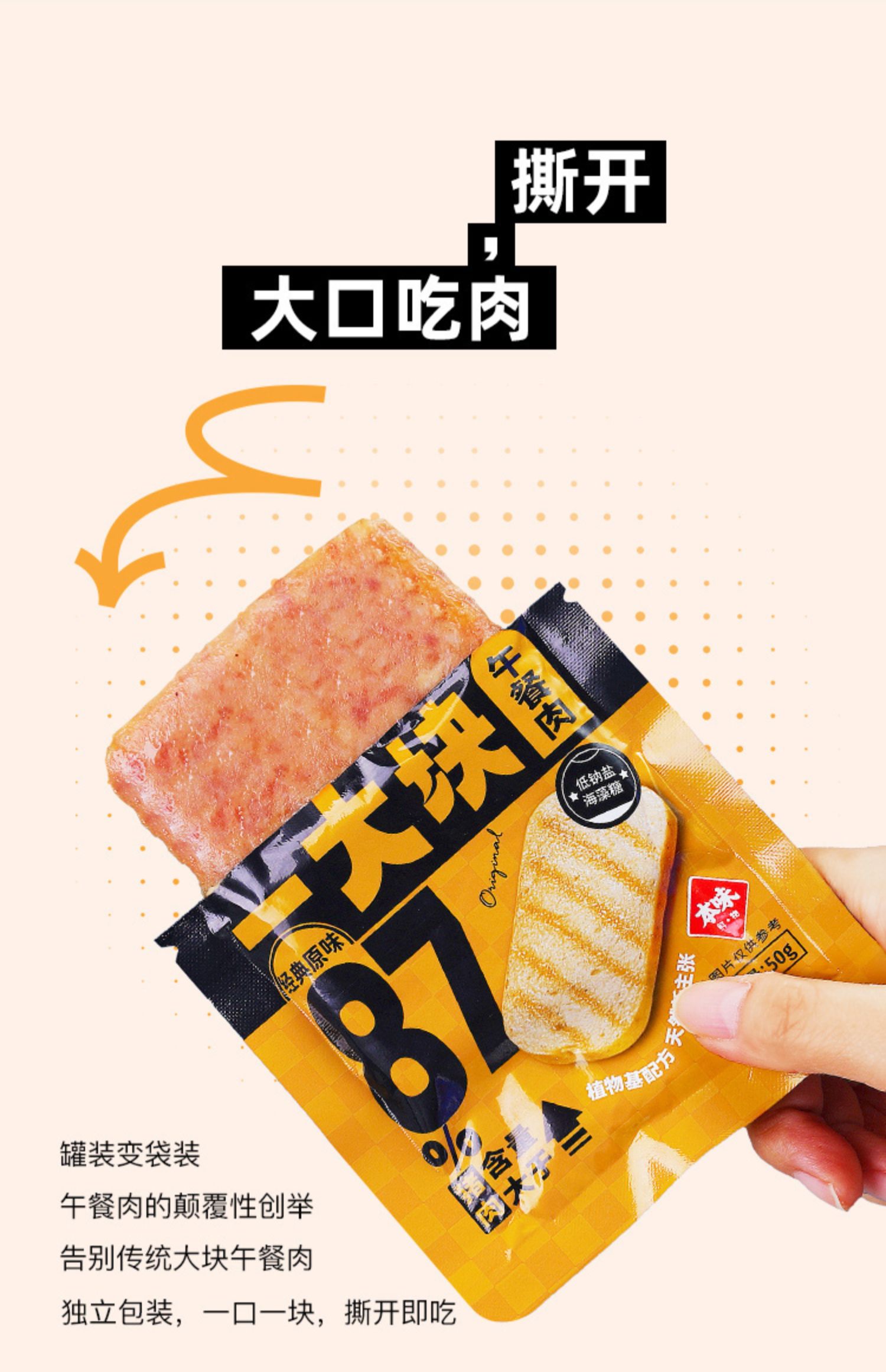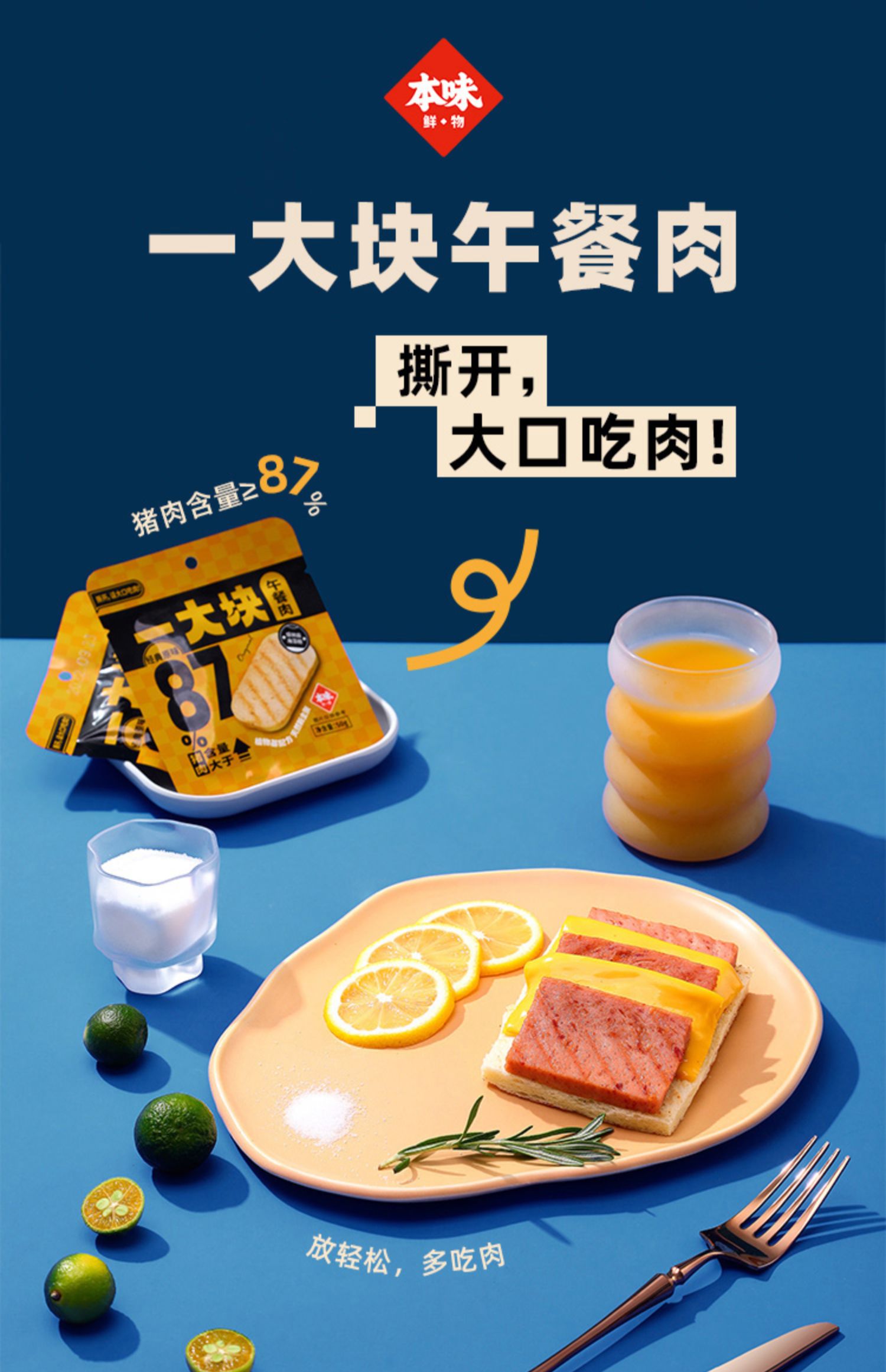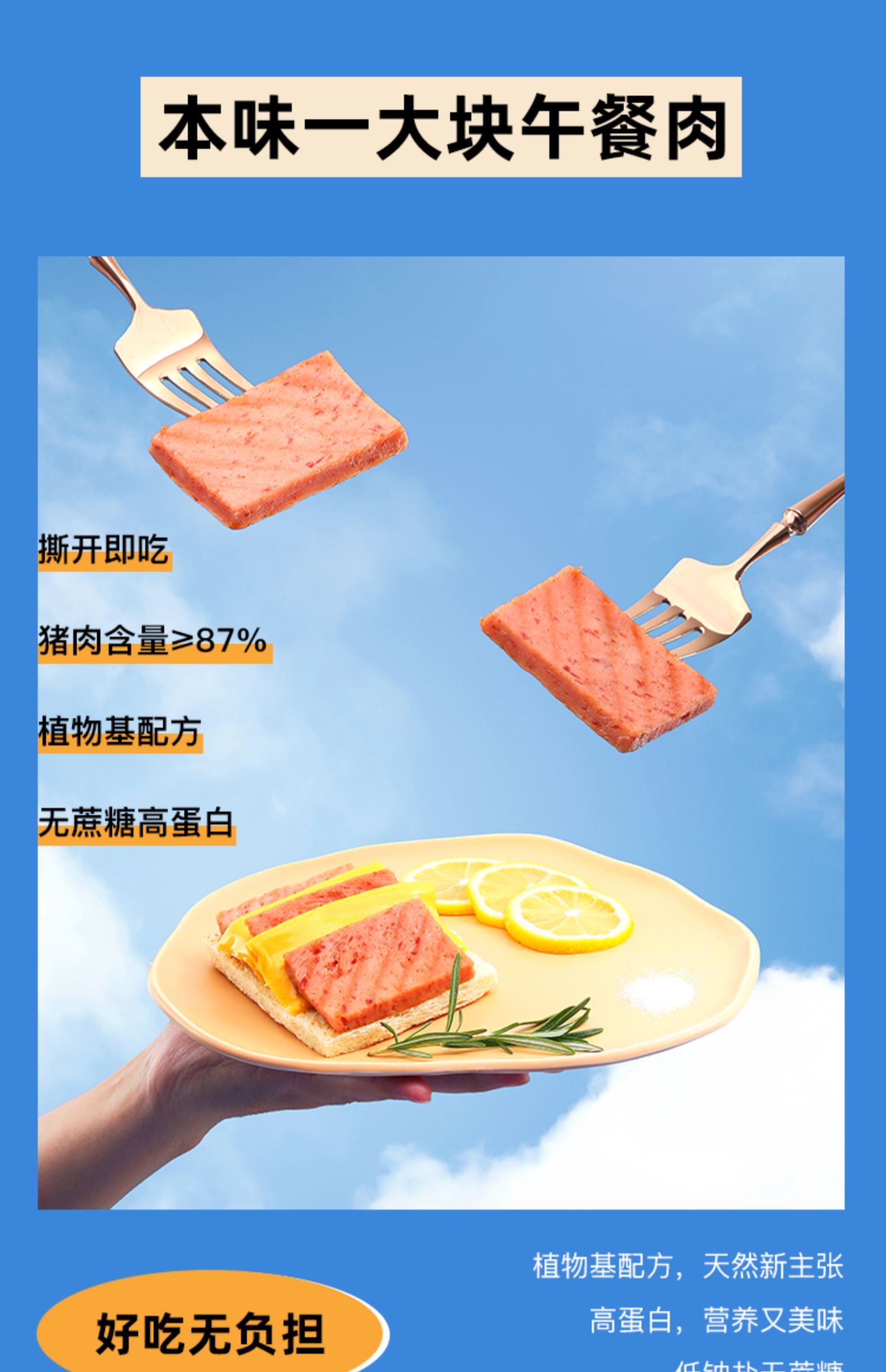本味鲜物一大块午餐肉单独包装即食火腿儿童早餐三明治专用300g