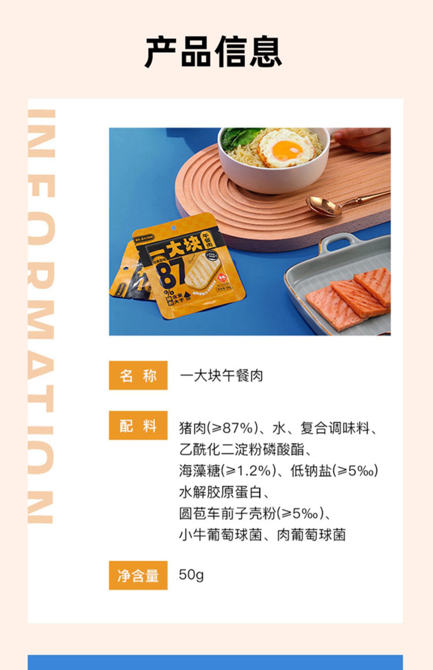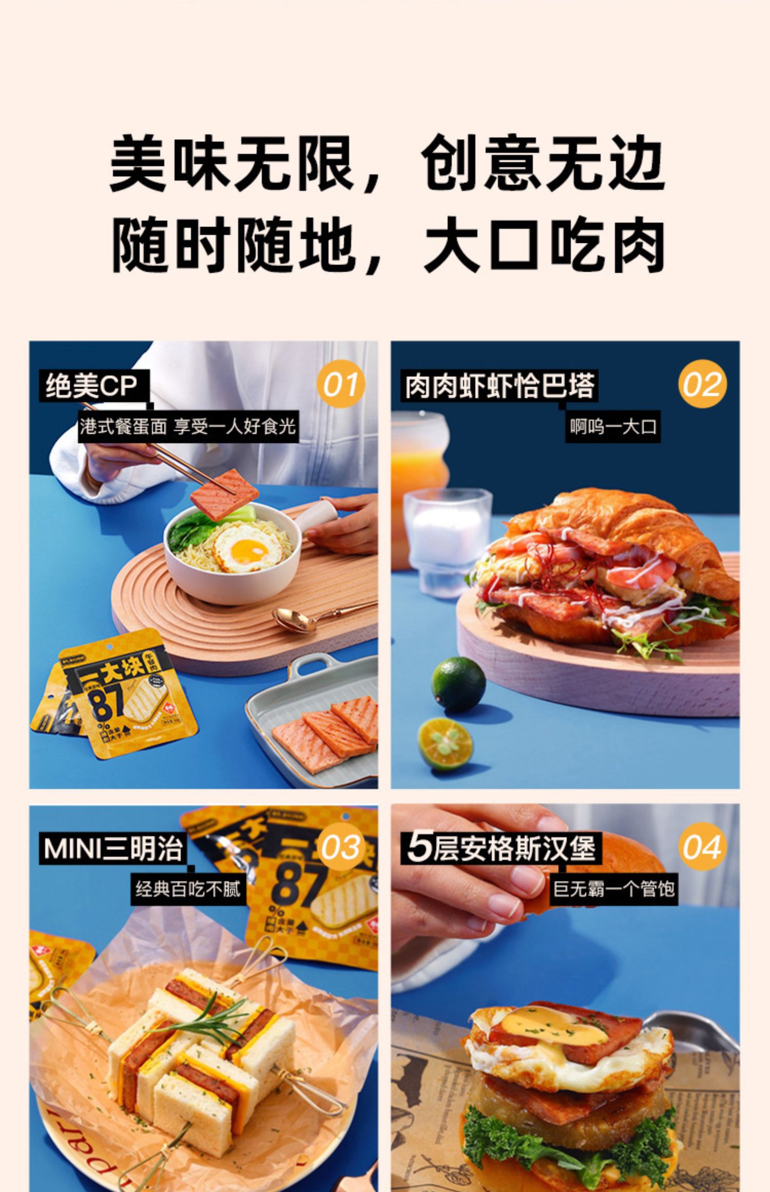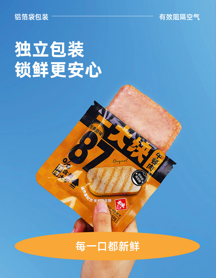 本味鲜物一大块午餐肉单独包装即食火腿儿童早餐三明治专用300g
