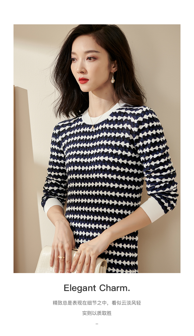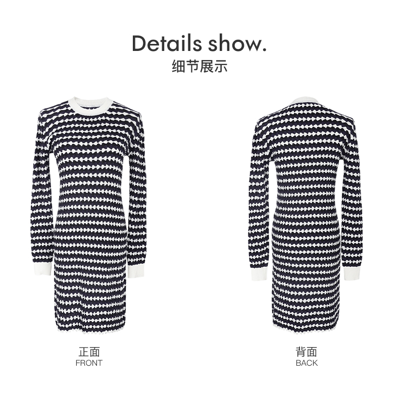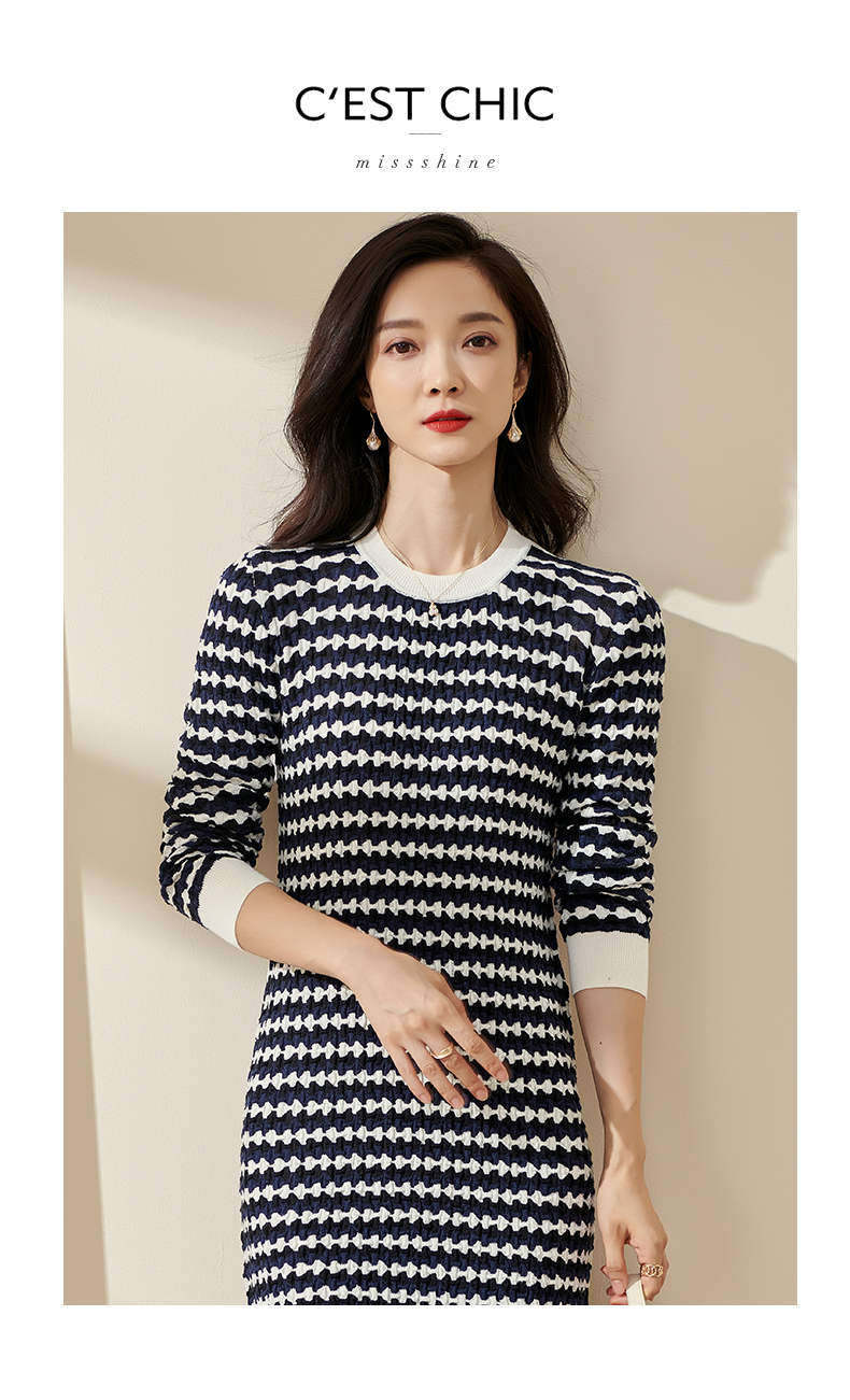 米思阳气质淑女针织连衣裙2025新款ins潮流撞色条纹中长裙子2589
