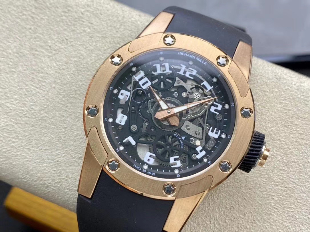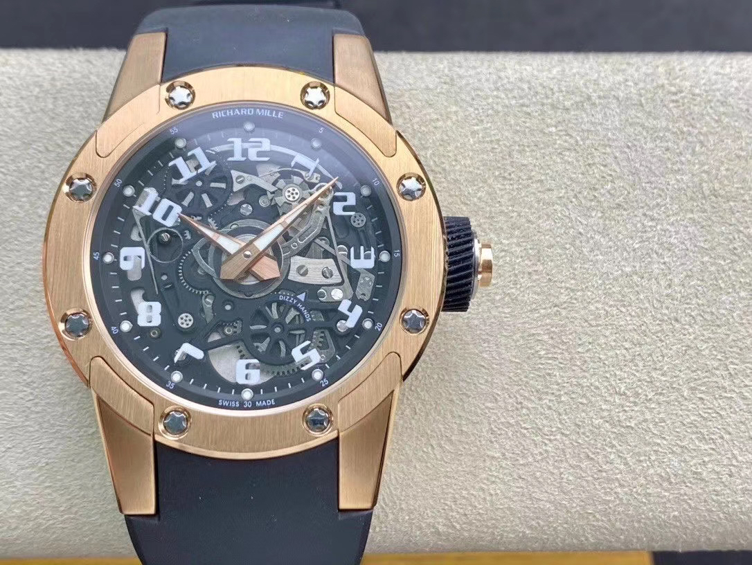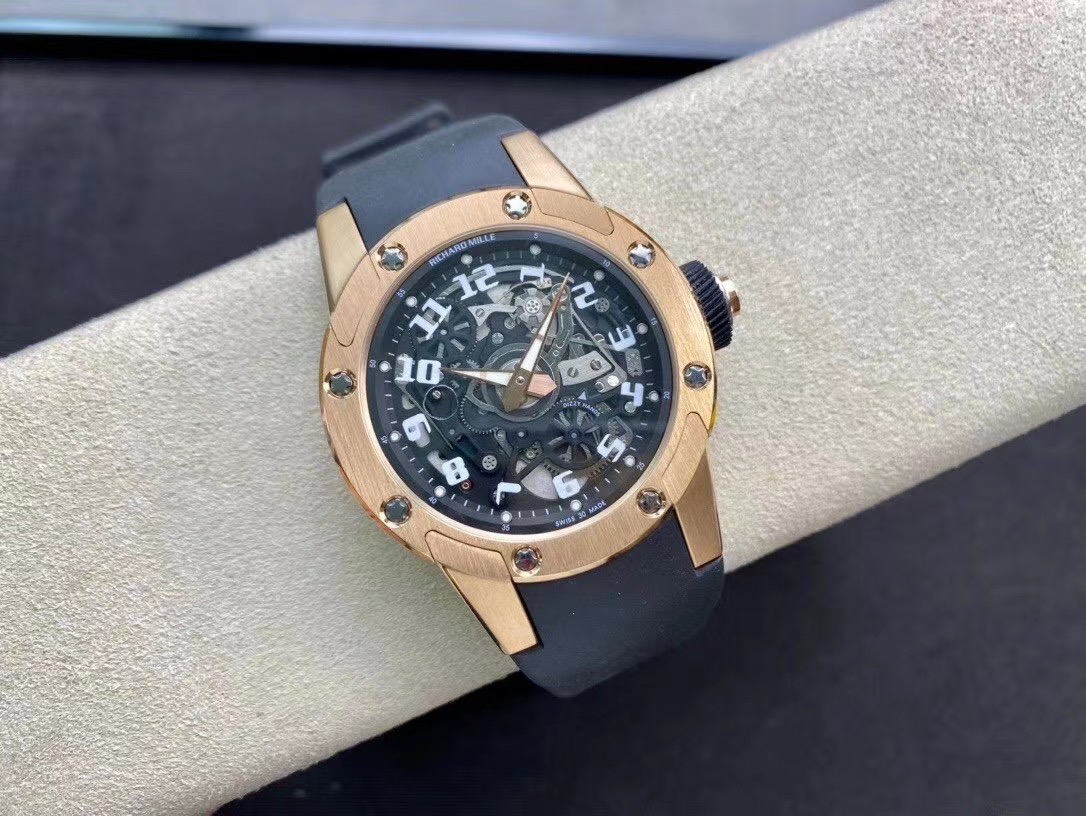 【入门乱真】一比一的开放式机械字面,定制机芯和原装结构也一样,厚度直径壳型结构都一样。加上圆形是理查德米勒的小众款式,一般也没有见到原装的机会。带上它出街或者自拍,可以给足你满满的自信和底气,比起动则上百万的热门款式,再也不用担心翻车了。