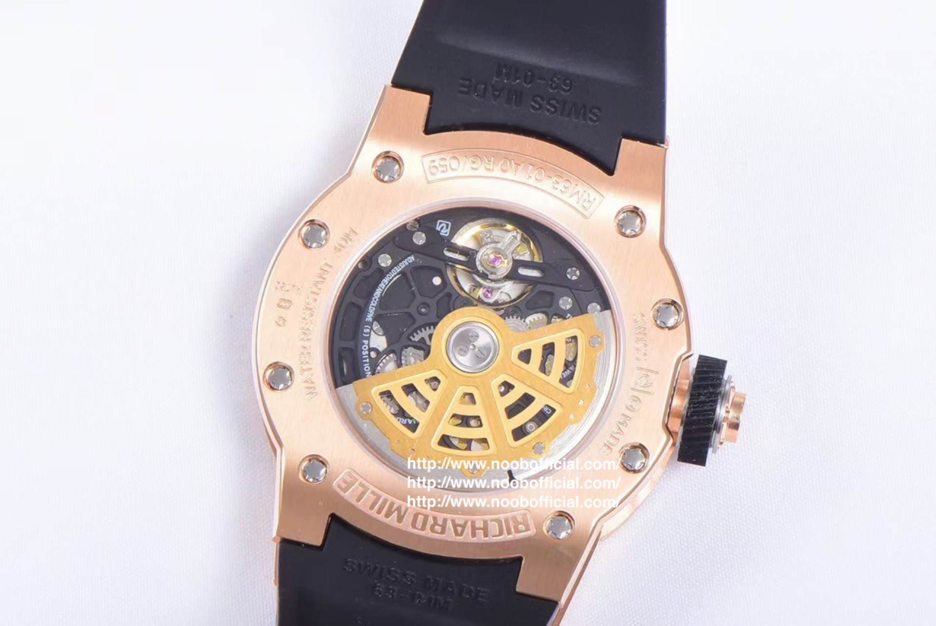 V9理查德米尔圆盘RM 63-01 Dizzy Hands男装自动机械腕表,同步尺寸直径42.7mm,厚度11.7mm,开放式字面,定制自动机械机芯,透底,硅胶表带,男士腕表