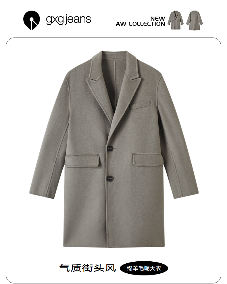 gxg.jeans男装秋冬毛呢大衣男潮流气质长款外套毛呢大衣