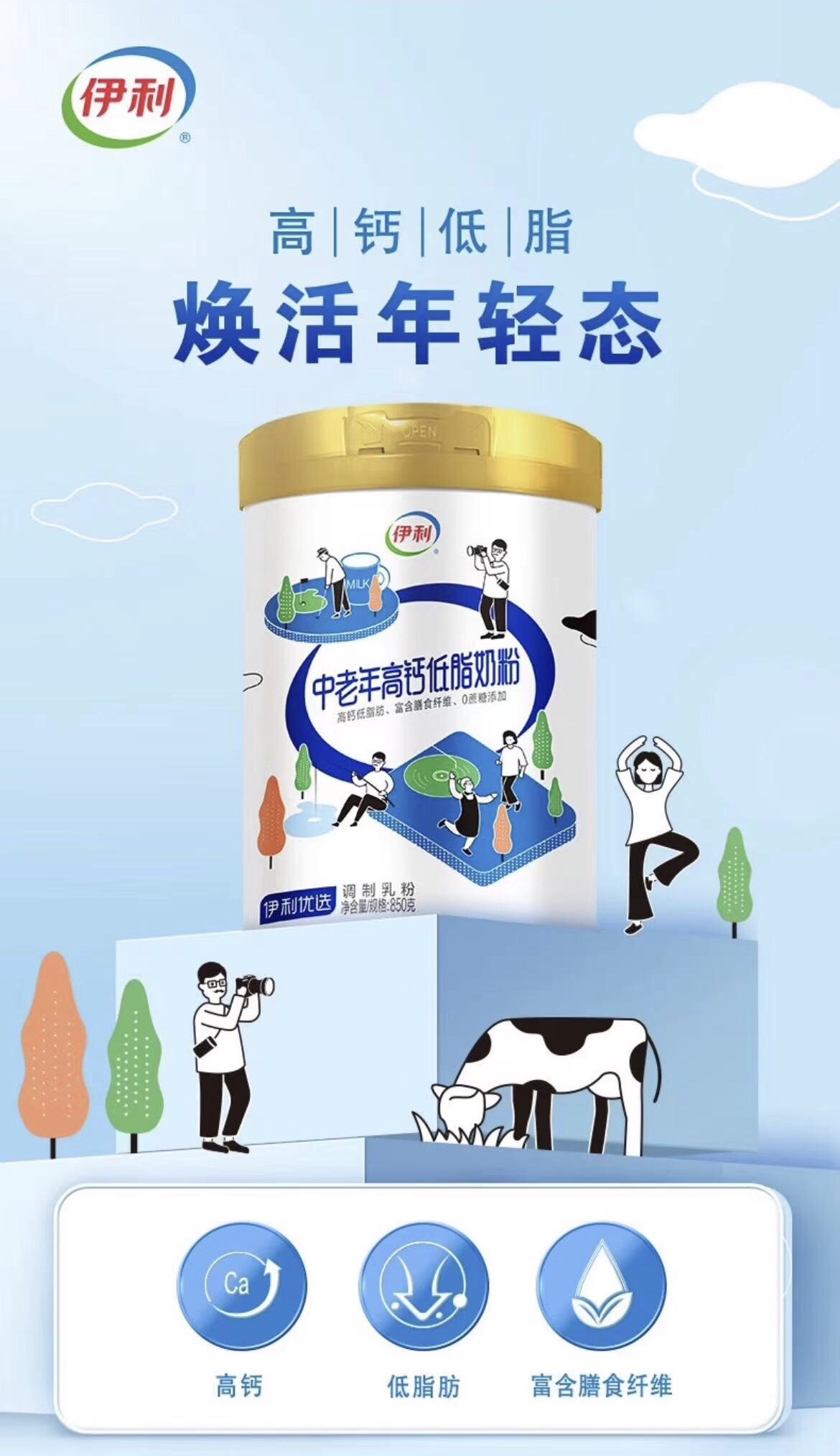 伊利中老年高钙低脂双听礼盒装1700克 850g*2 礼盒装
