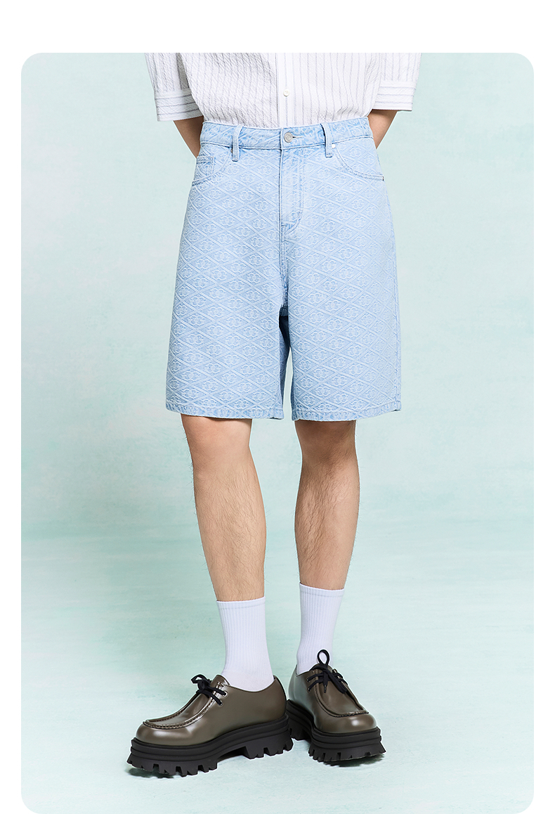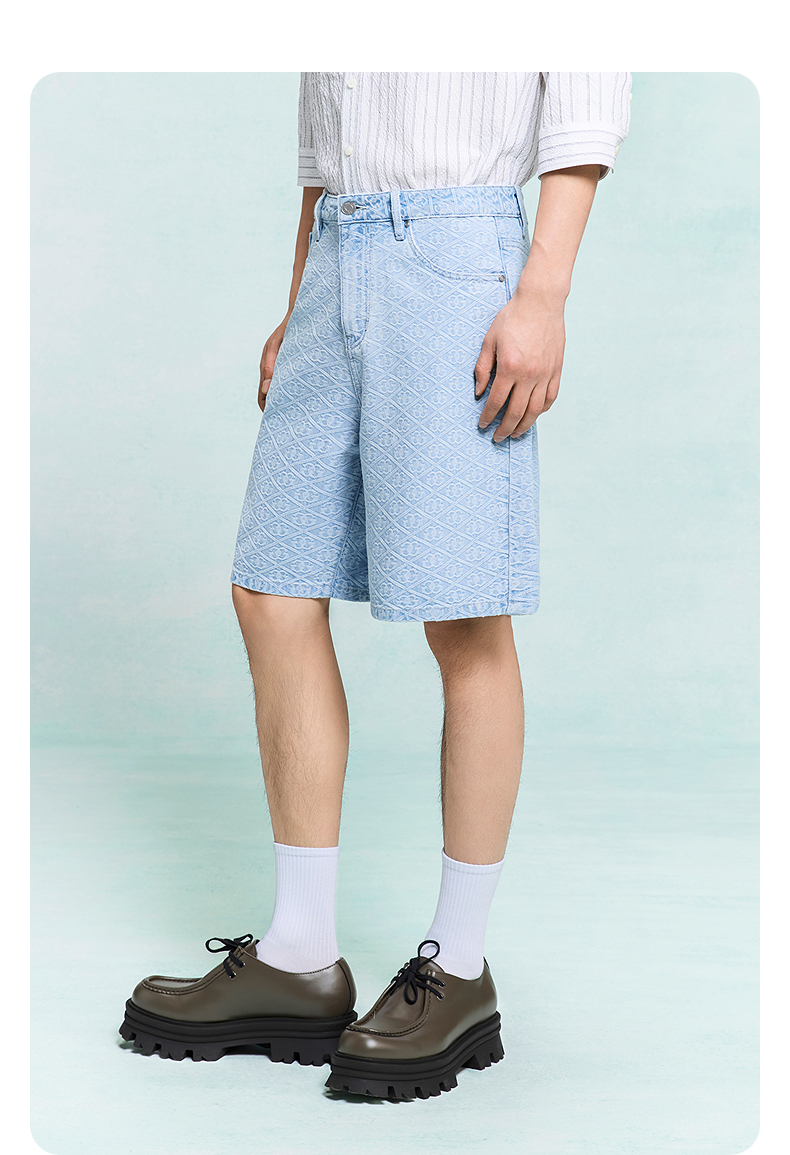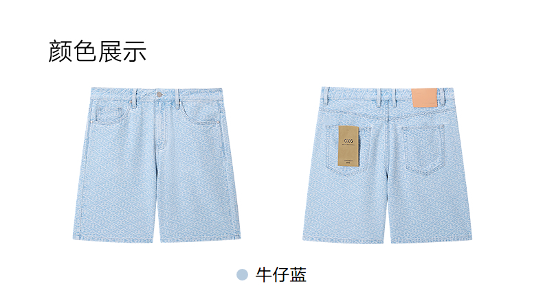 GXG男装 满印设计牛仔短裤通勤柔软挺阔休闲五分裤 25年夏季热卖