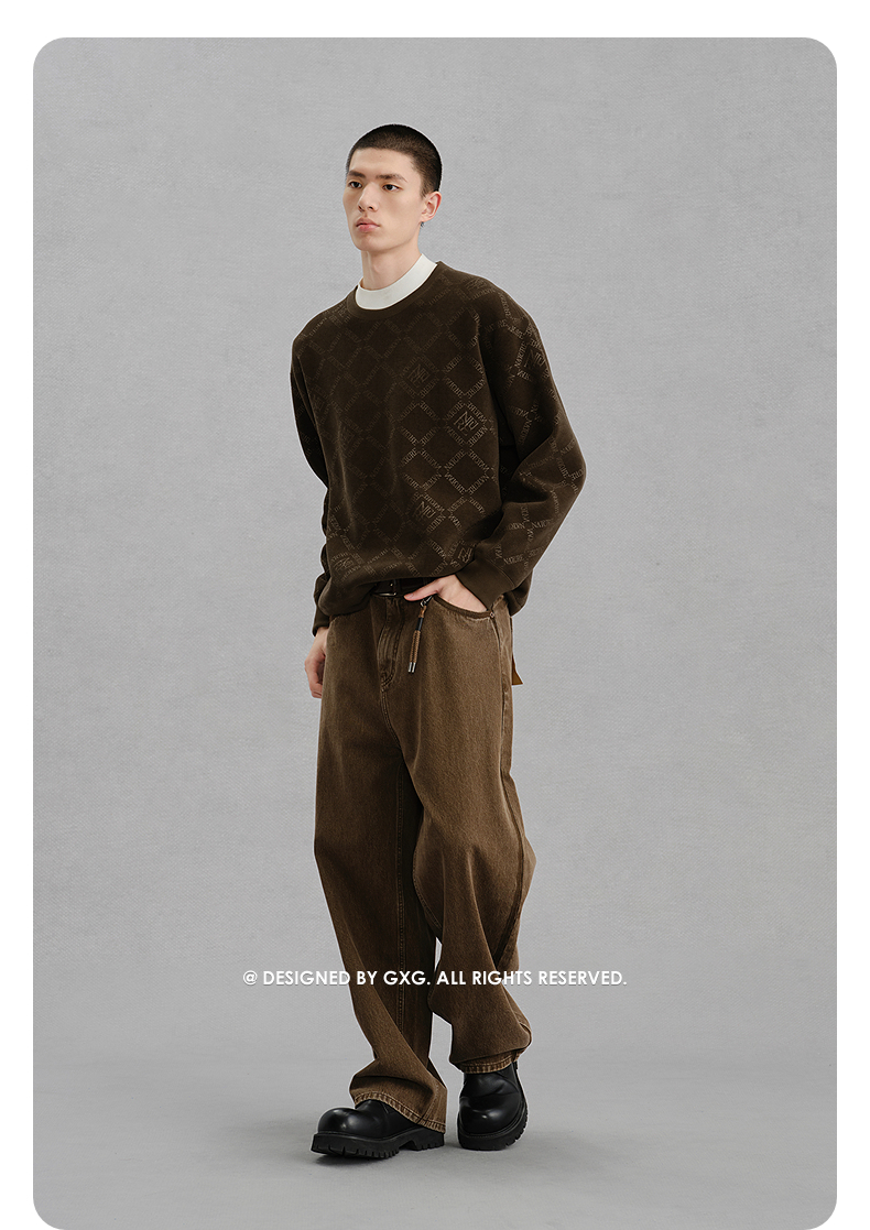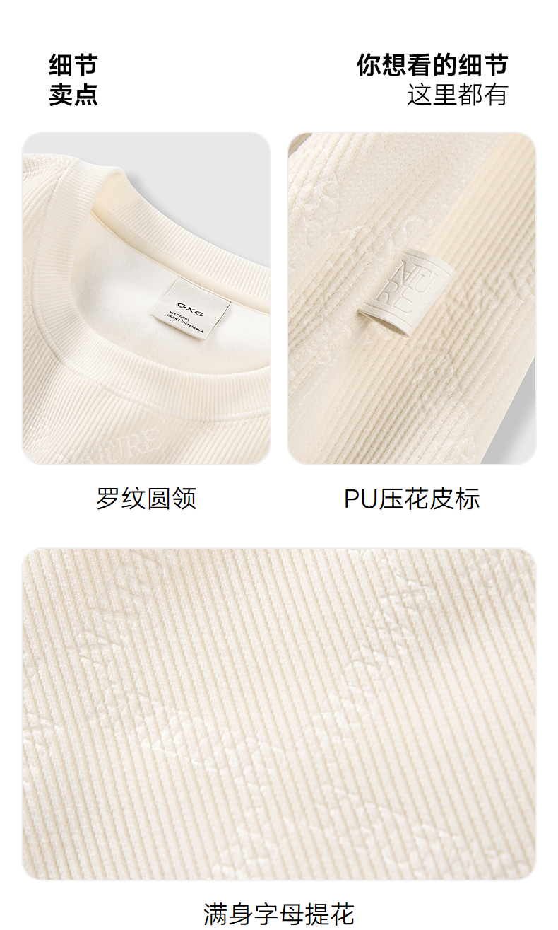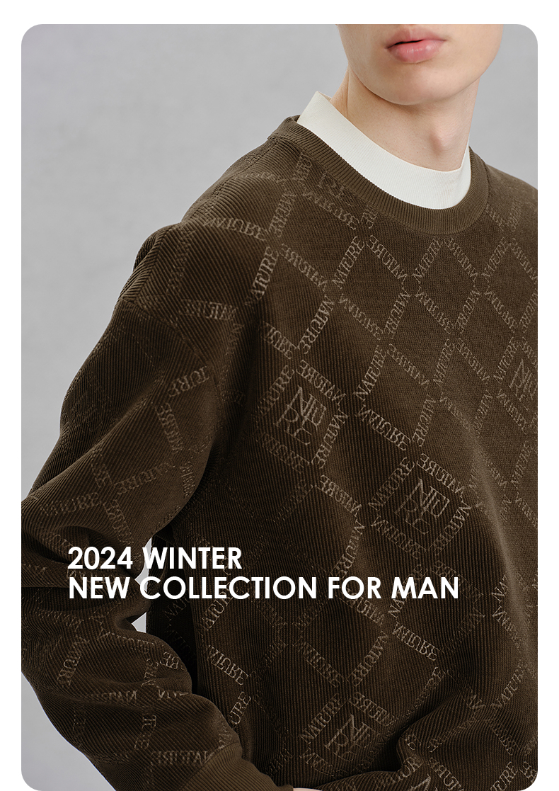 GXG男装 双色灯芯绒休闲通勤圆领卫衣24冬热卖G24X314024