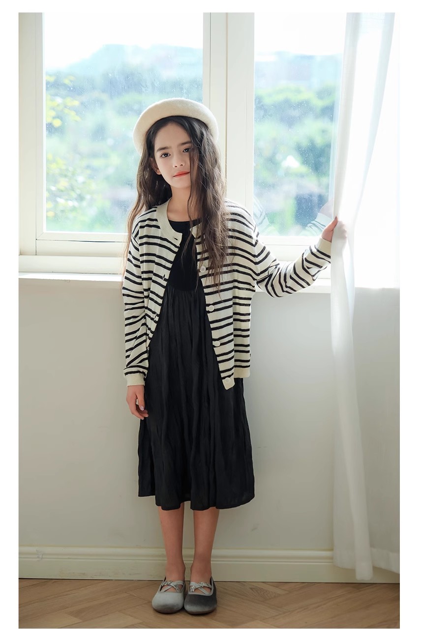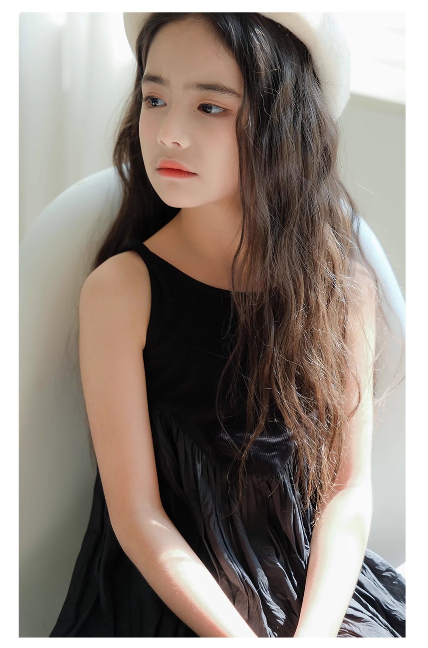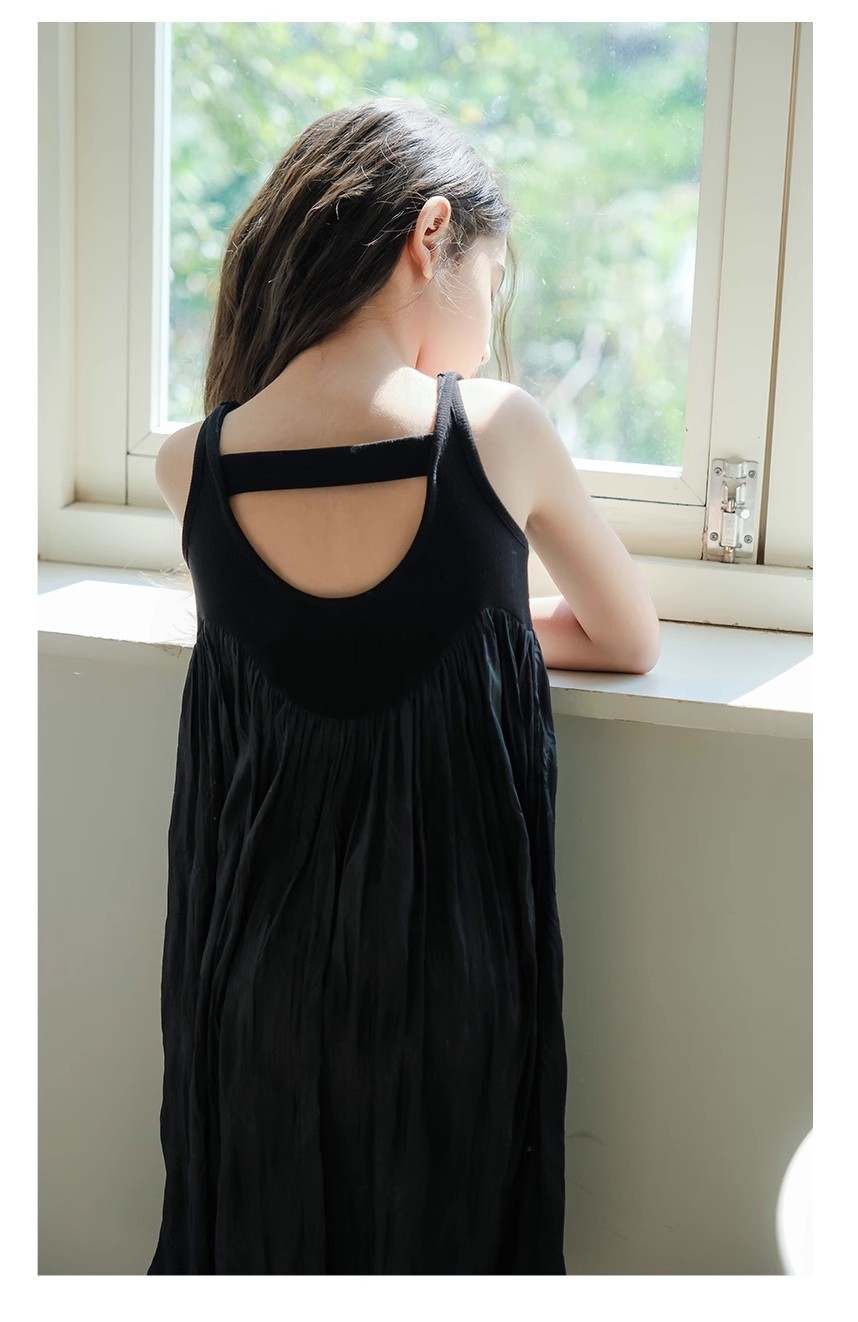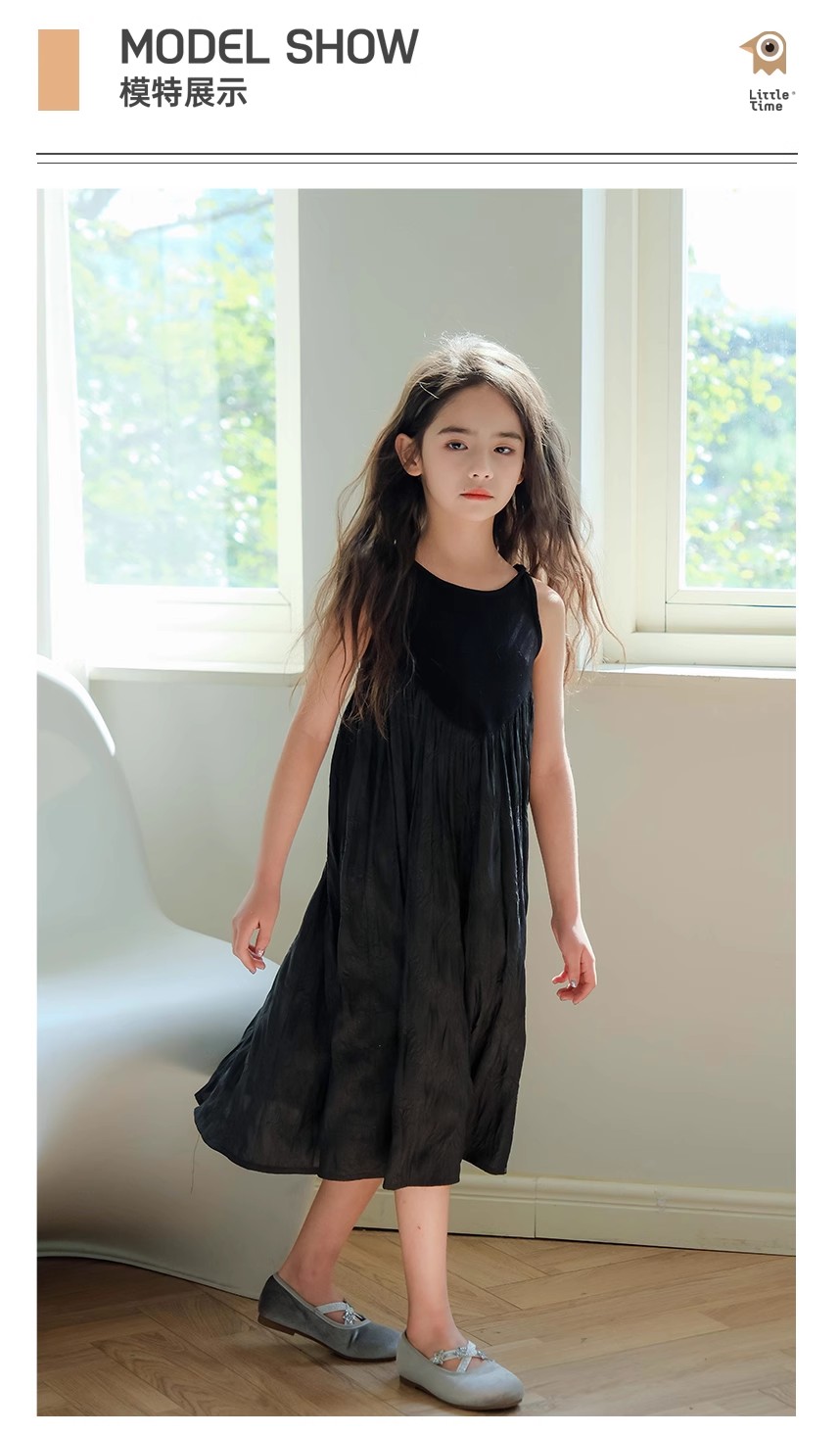 littletime女童黑色连衣裙2024春秋新款复古肌理裙春夏无袖吊带裙
