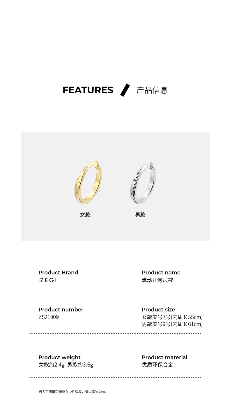 ZEGL设计师1314几何尺子戒指男女情侣款对戒指环情人节礼物送女友