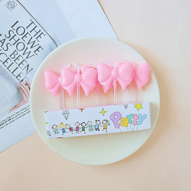 粉色 蝴蝶结蜡烛 5支装 蛋糕蜡烛 粉色系装饰蜡烛