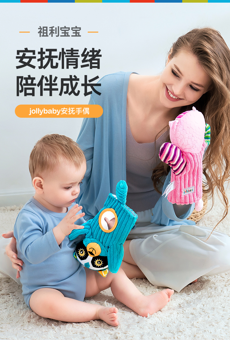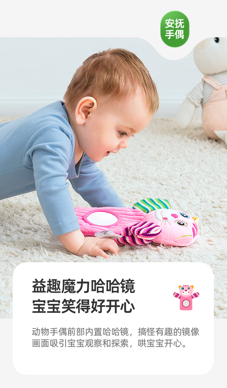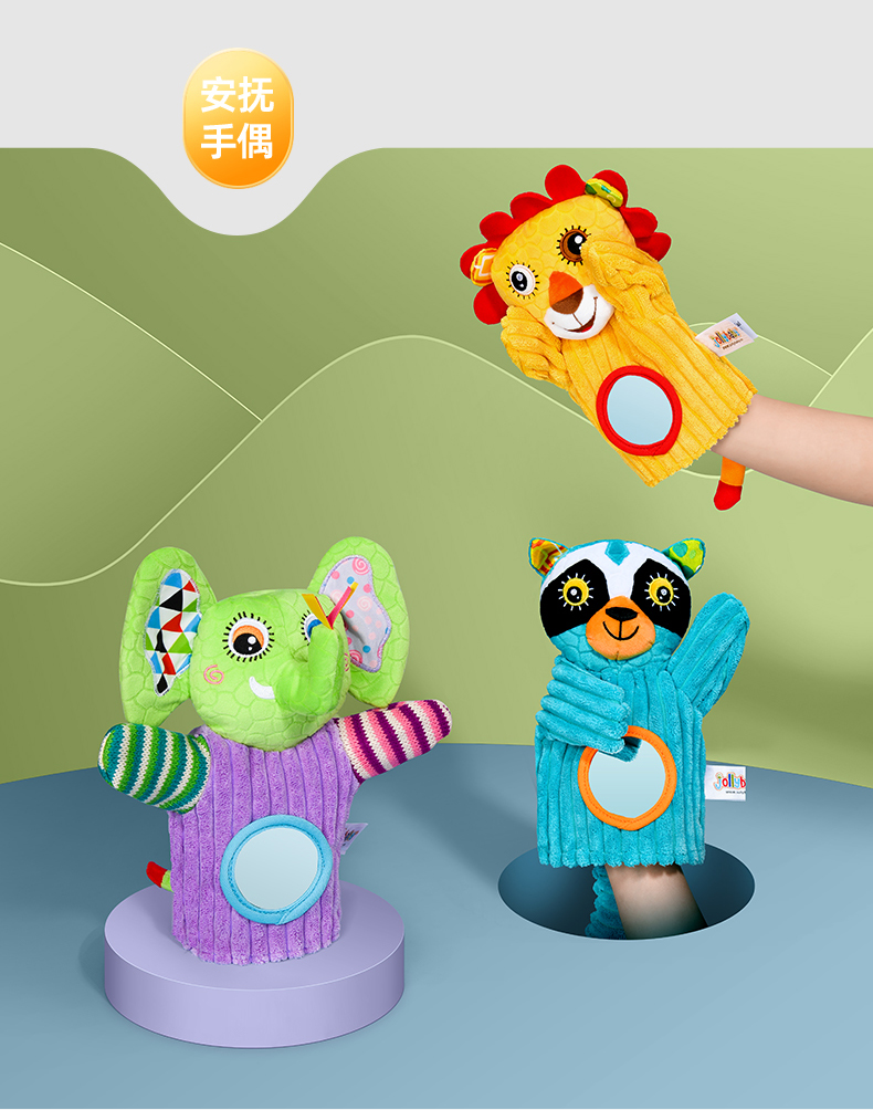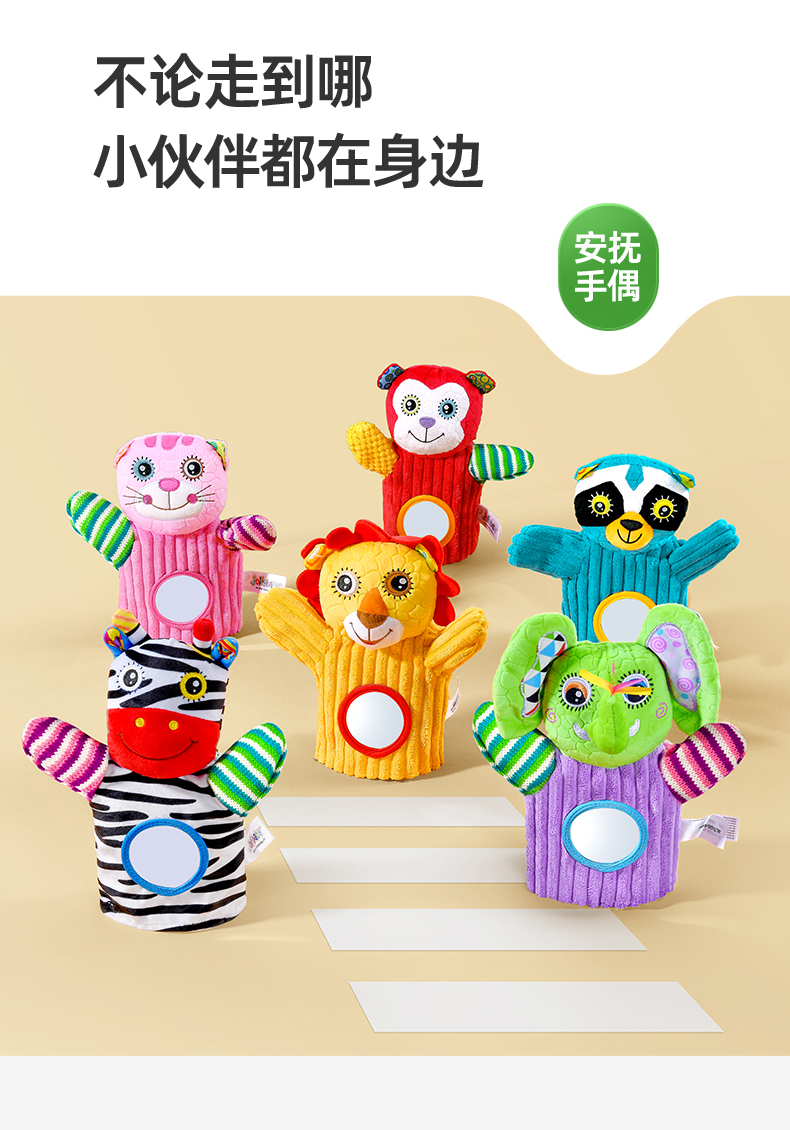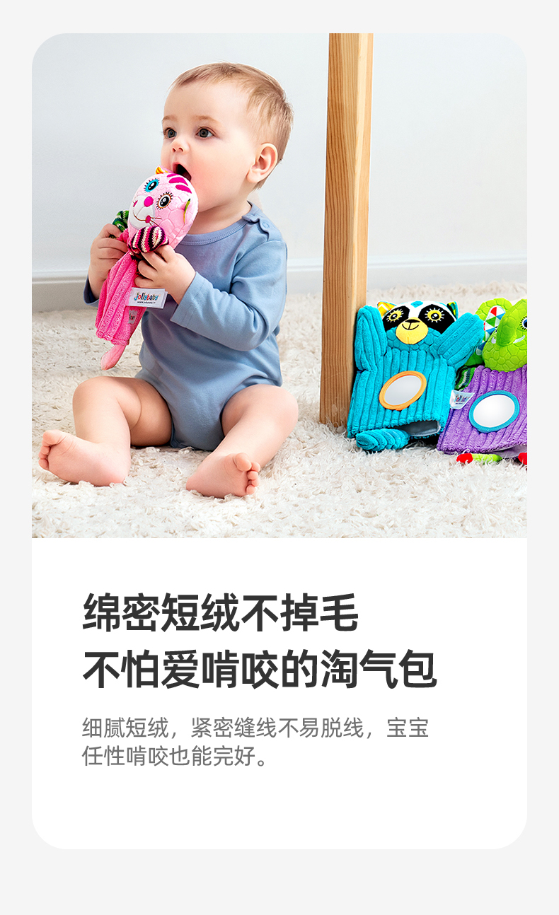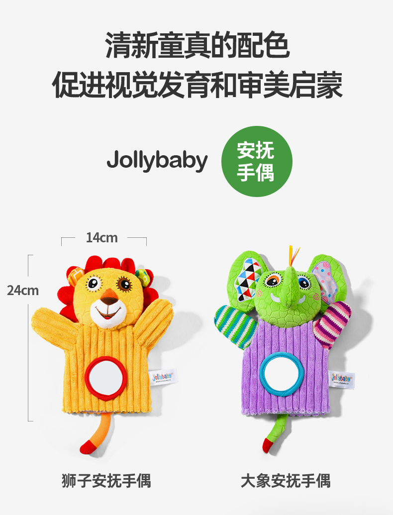 【品牌授权】jollybaby动物安抚手偶互动指偶可入口啃咬玩偶婴儿玩具6-12个月 带响铃哈哈镜 安全可啃咬 水洗不掉色儿童礼物