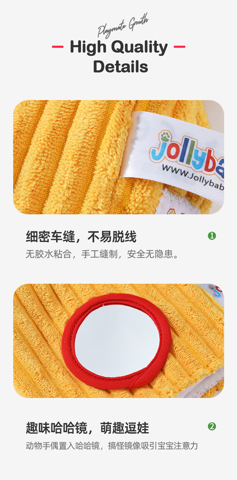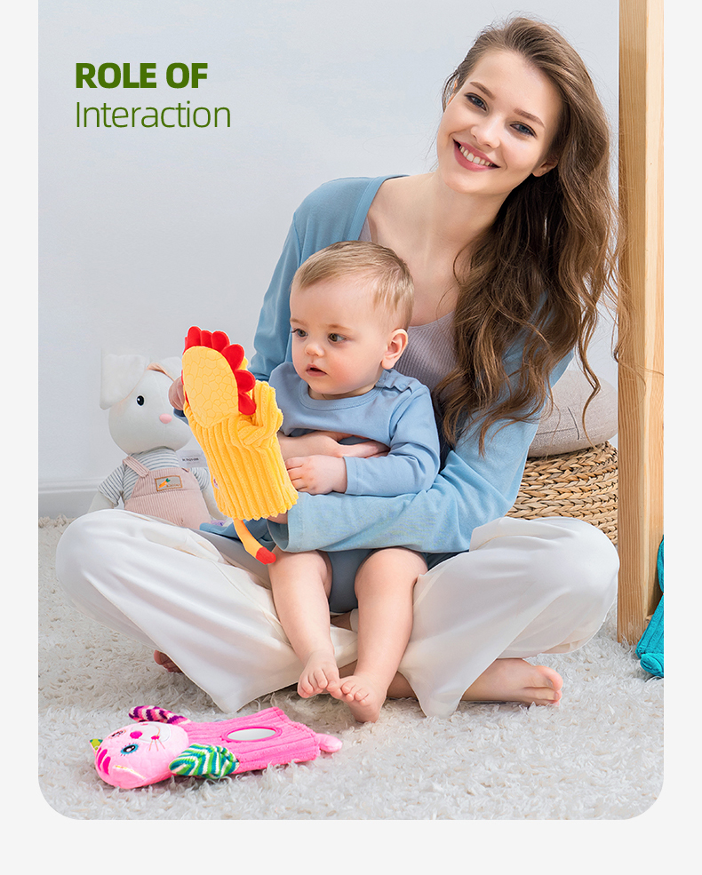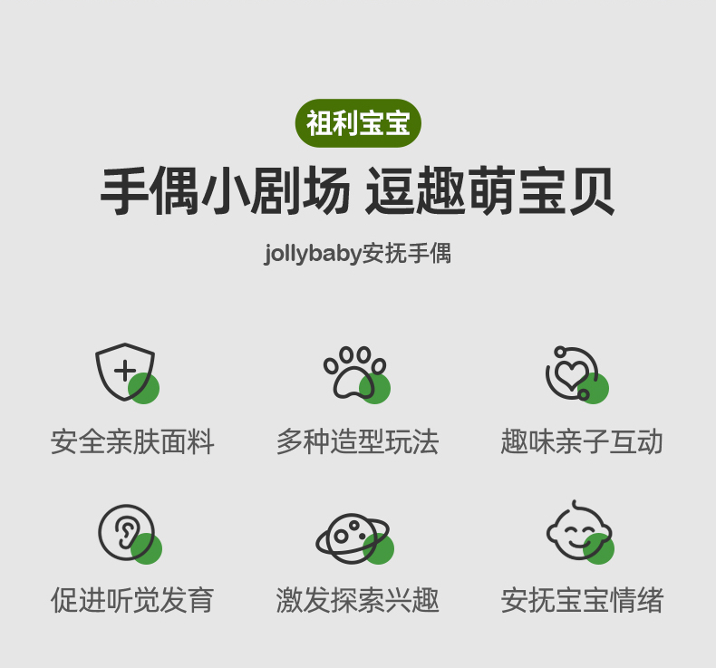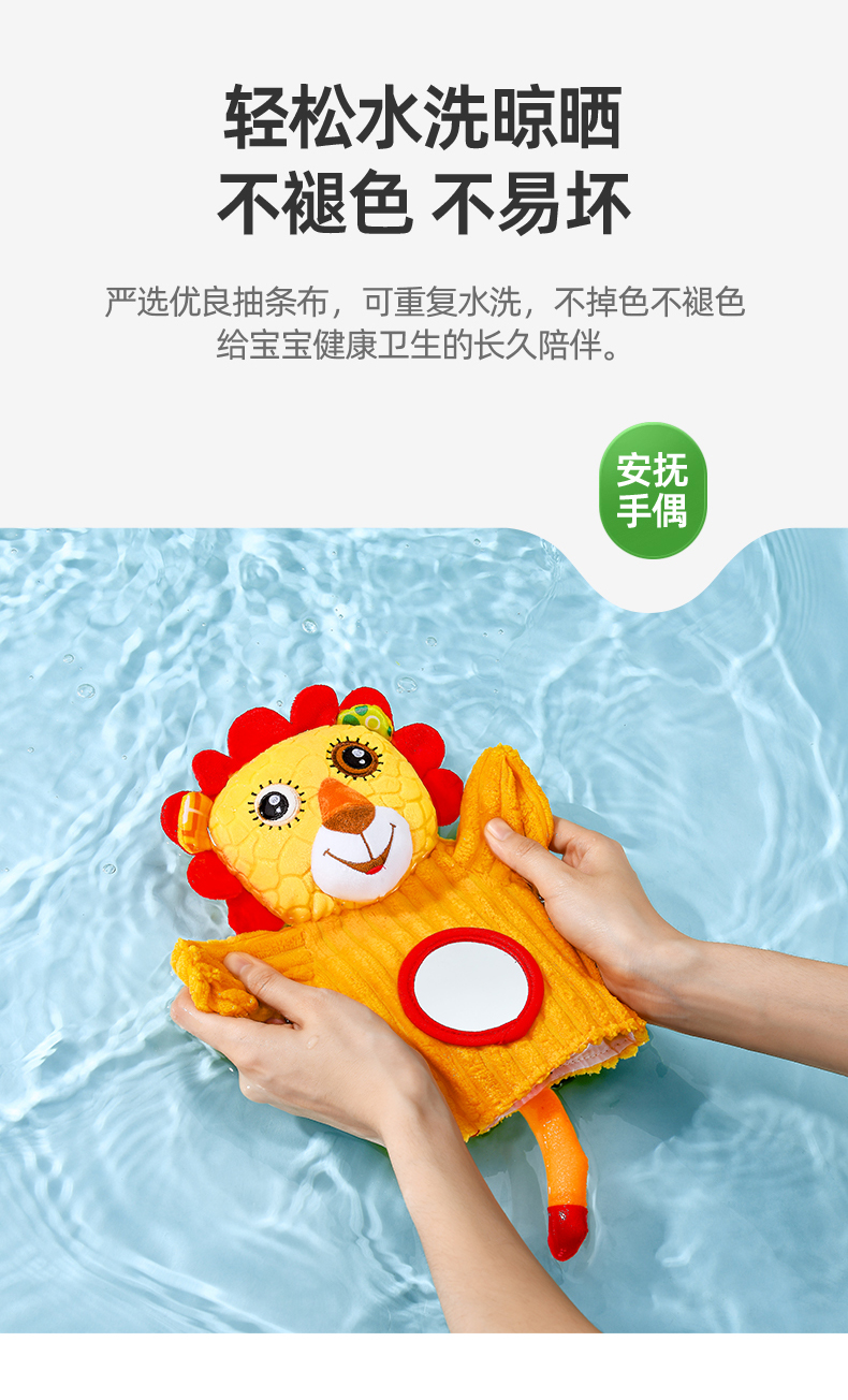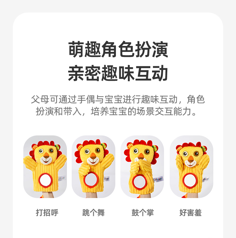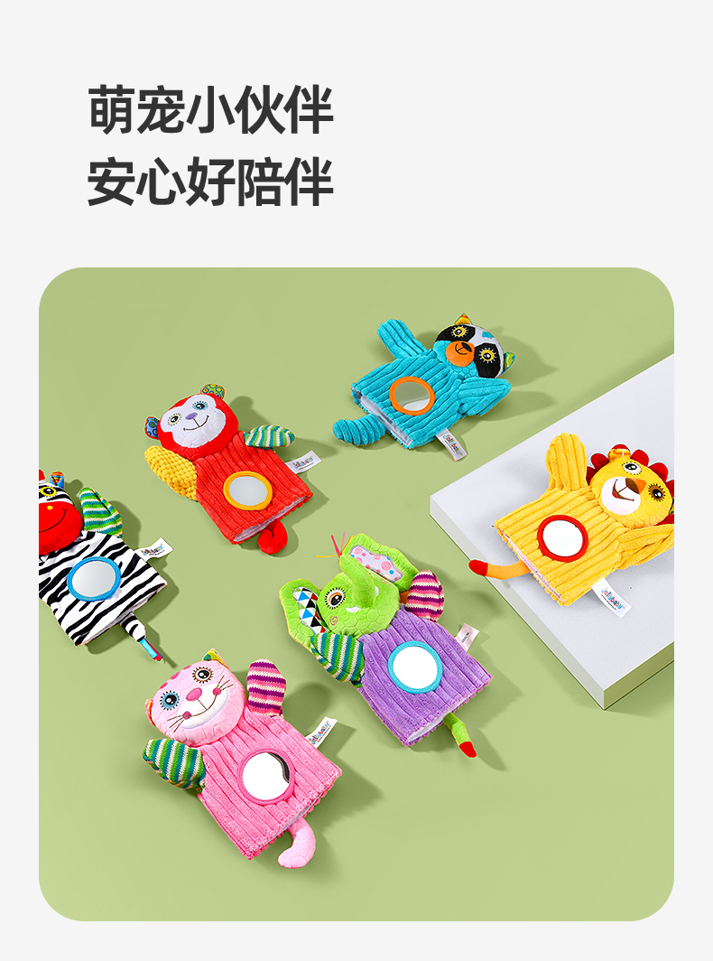 【品牌授权】jollybaby动物安抚手偶互动指偶可入口啃咬玩偶婴儿玩具6-12个月 带响铃哈哈镜 安全可啃咬 水洗不掉色儿童礼物