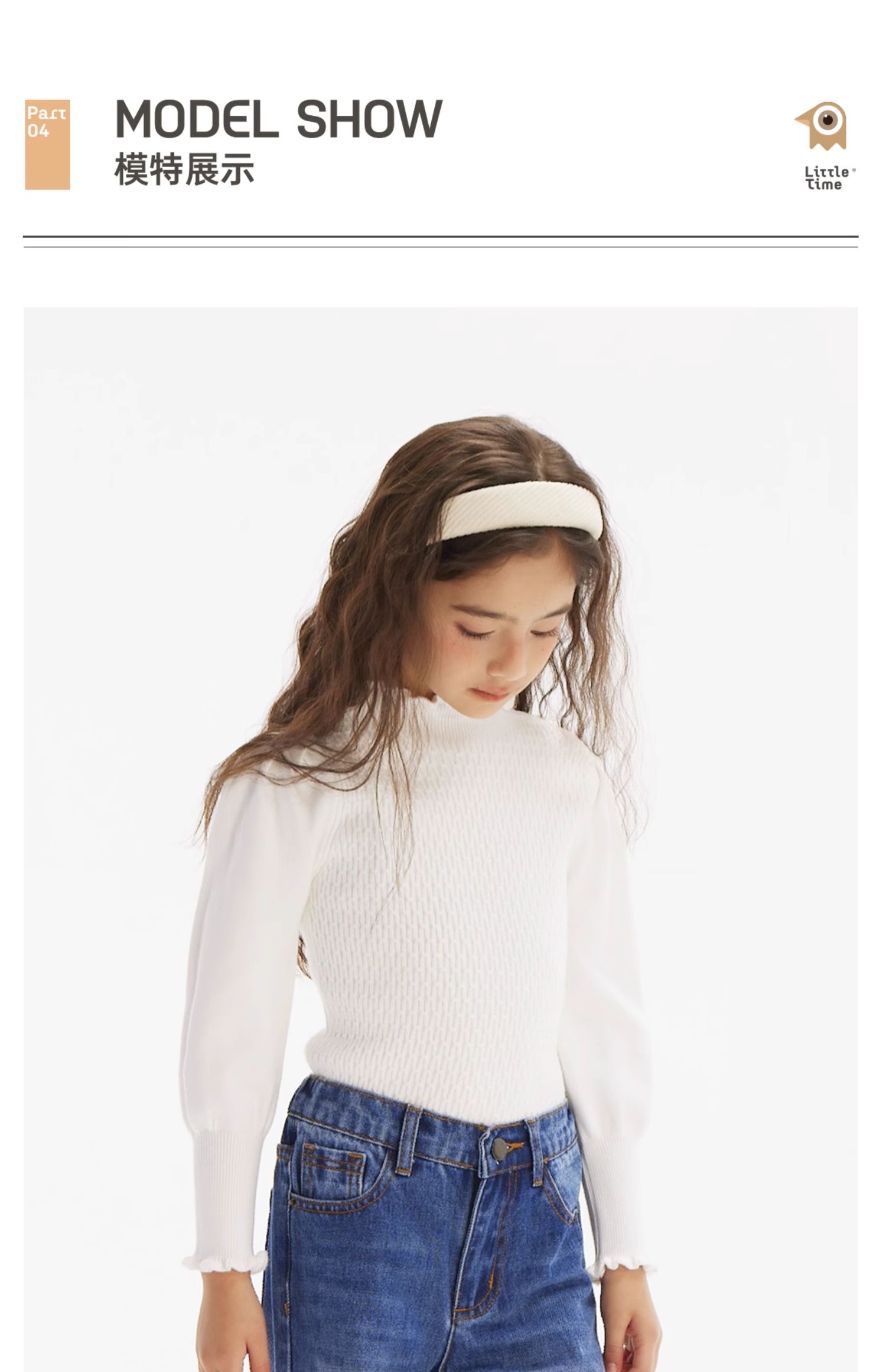 littletime女童打底衫毛衣半高领2024秋冬新款儿童套头长袖针织衫