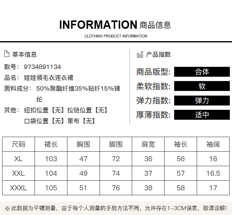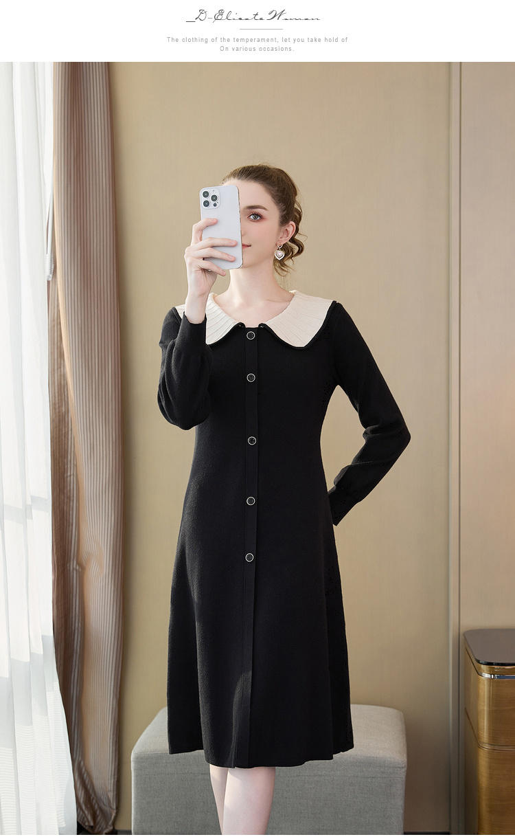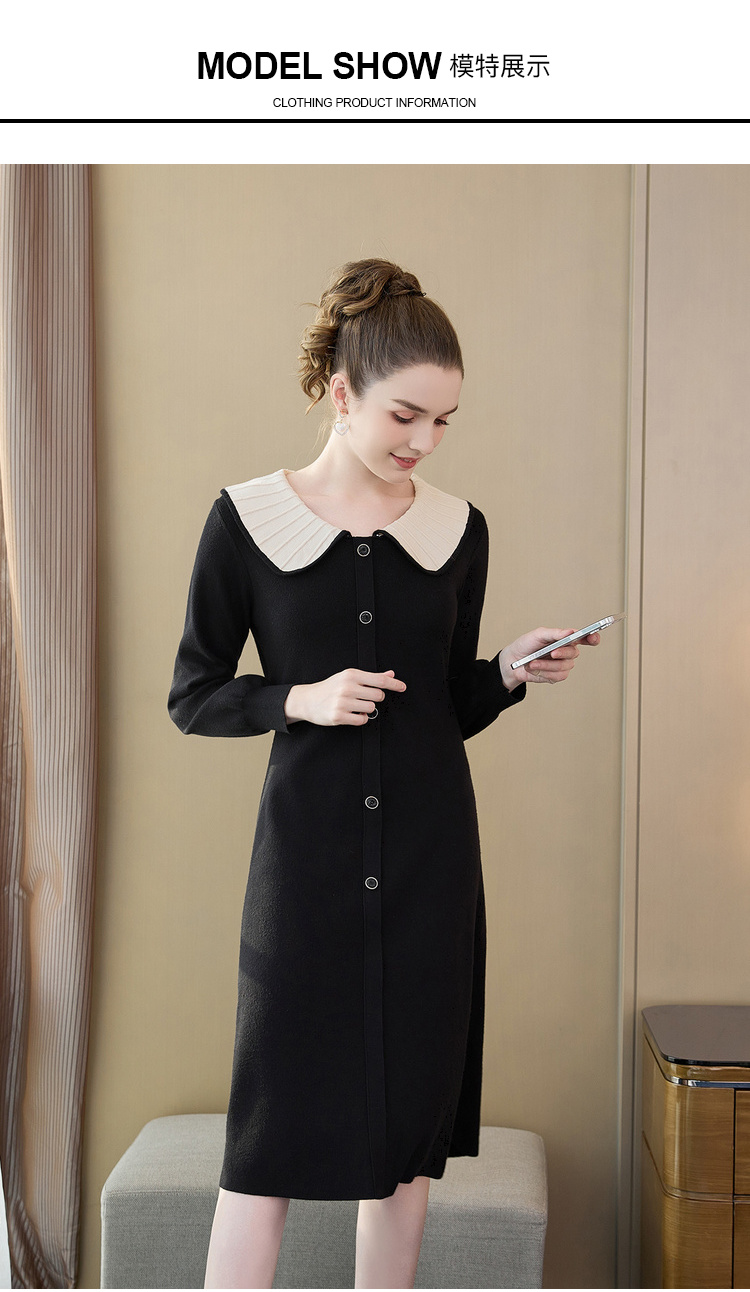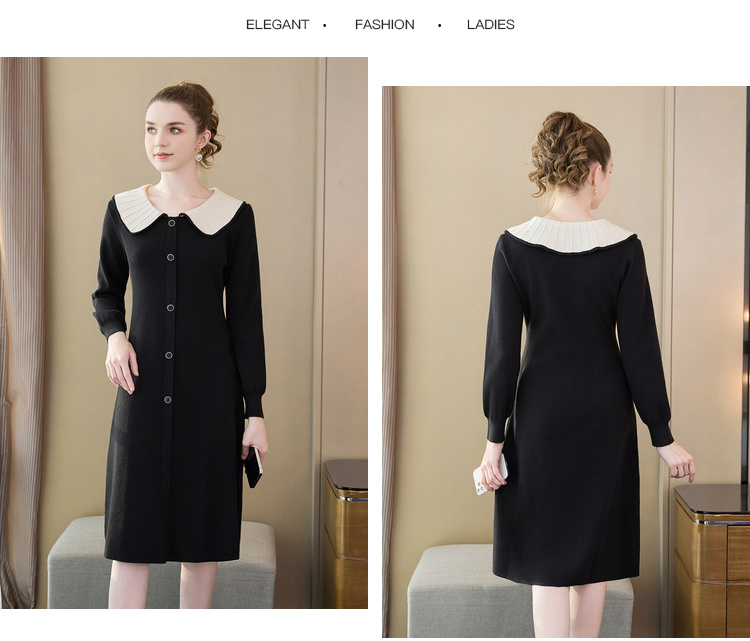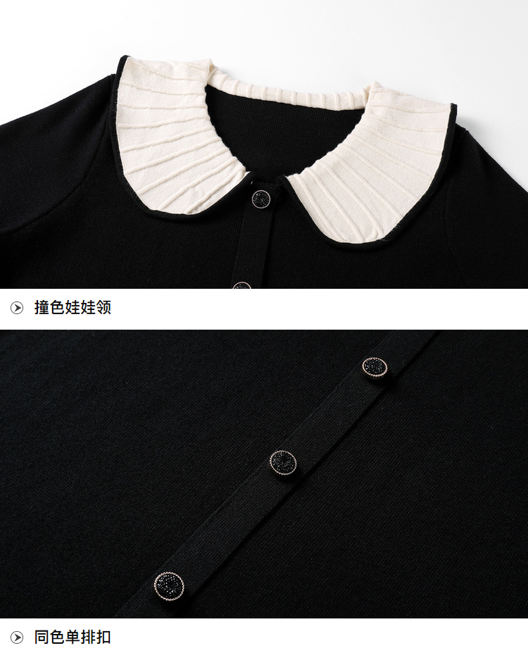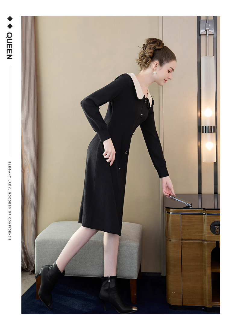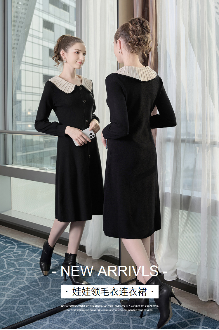 奢姿2025大码女装法式复古名媛针织连衣裙女秋冬内搭娃娃领毛衣裙9734891134