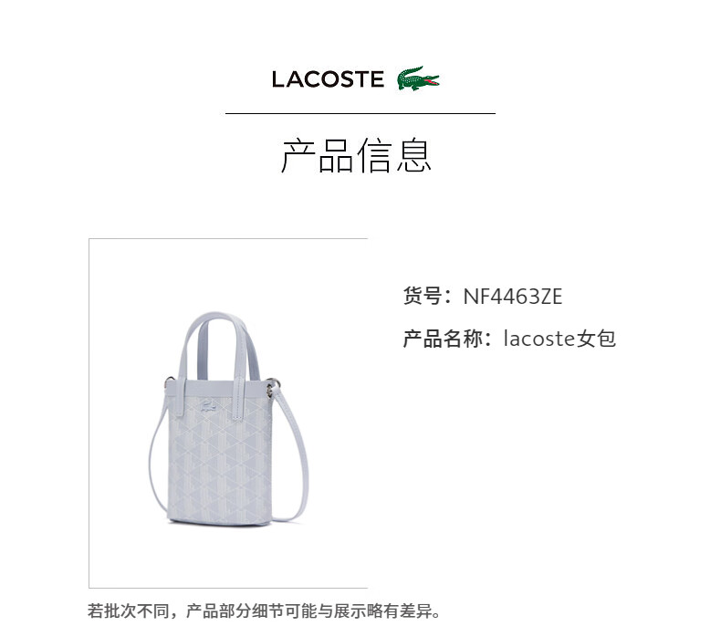 【海南专供价】Lacoste法国鳄鱼女包 新款时尚老花斜挎包单肩包斜挎包NF4463ZE