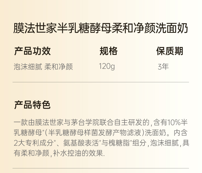 【清洁控油】膜法世家半乳糖酵母柔和净颜清洁控油保湿洗面奶120g