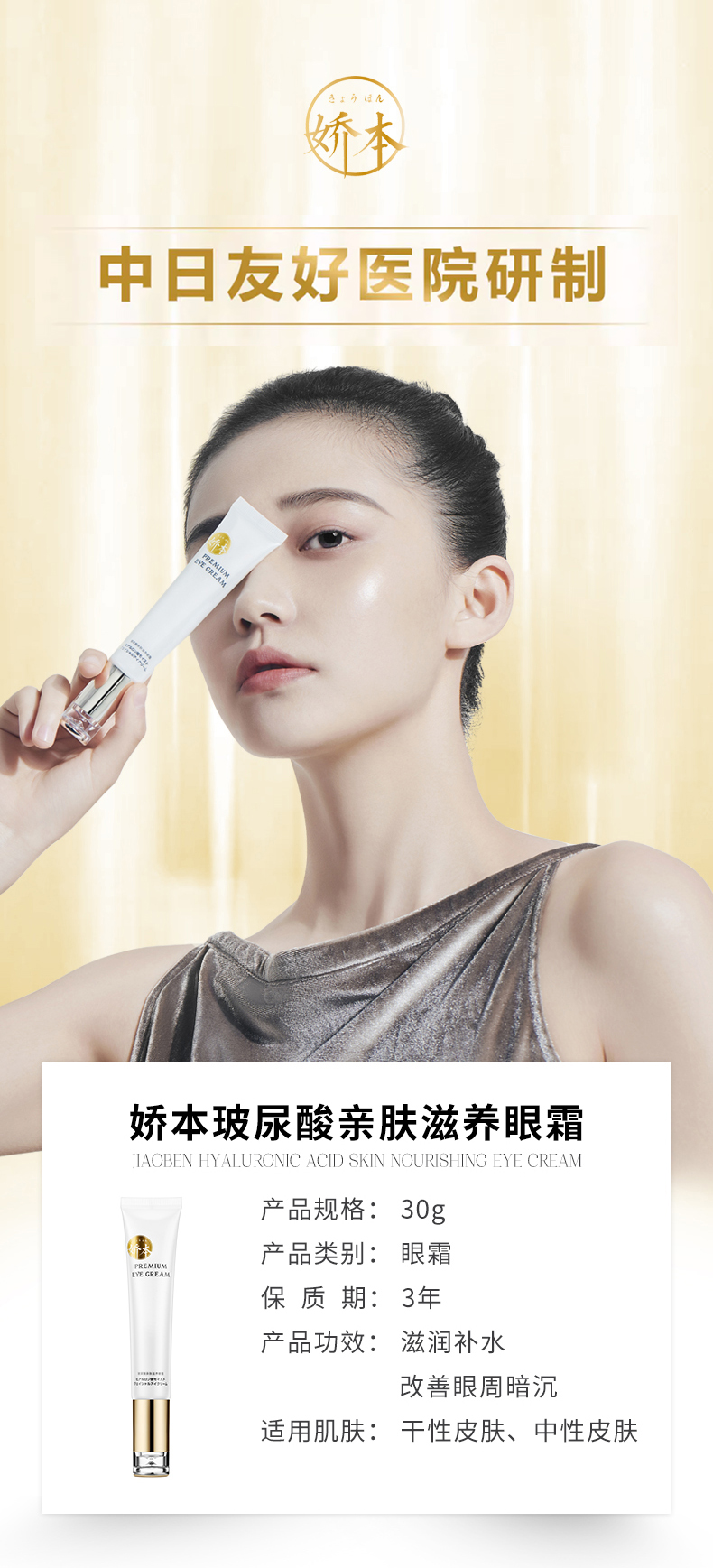 【中日友好医院研制 紧至攵焕亮眼周】娇本玻尿酸亲肤滋养眼霜 30g 水润保shi 熬夜眼霜
