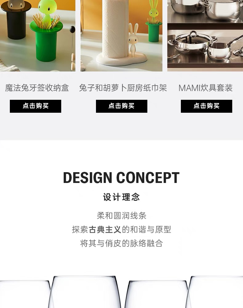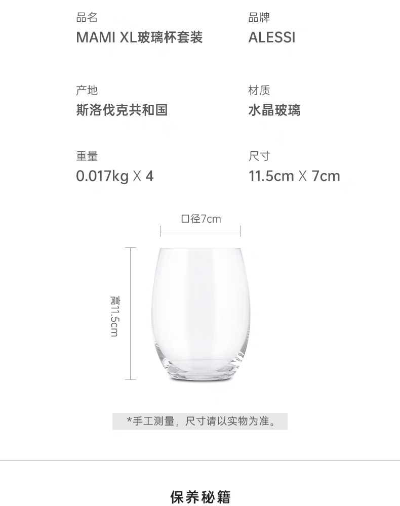 ALESSI/MAMI玻璃杯4件套鸡尾酒威士忌牛奶水杯男女家用送礼
