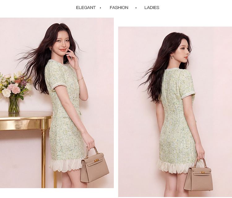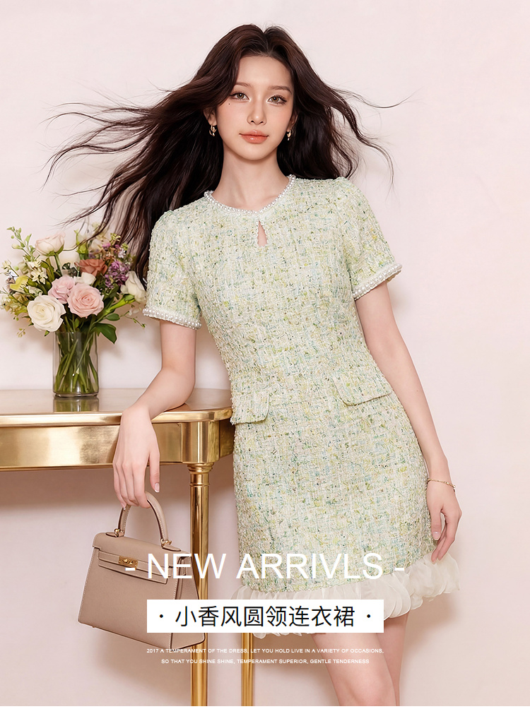 奢姿大码女装2026夏季胖妹妹时尚粗花呢圆领连衣裙气质小香风长裙9962894555