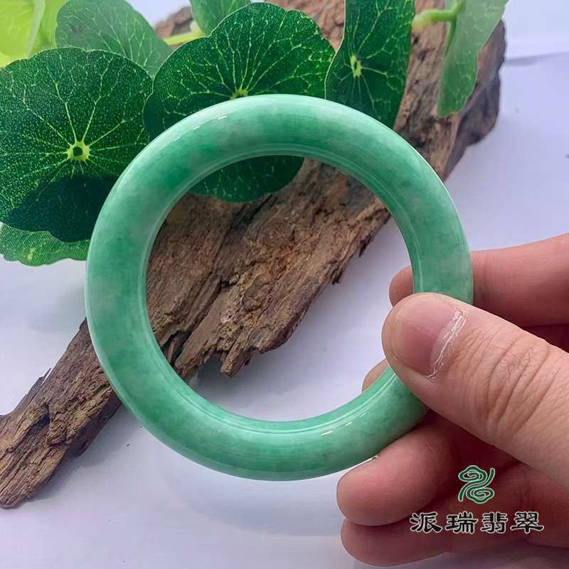 派瑞翡翠 翡翠手镯 糯种 绿色 飘花