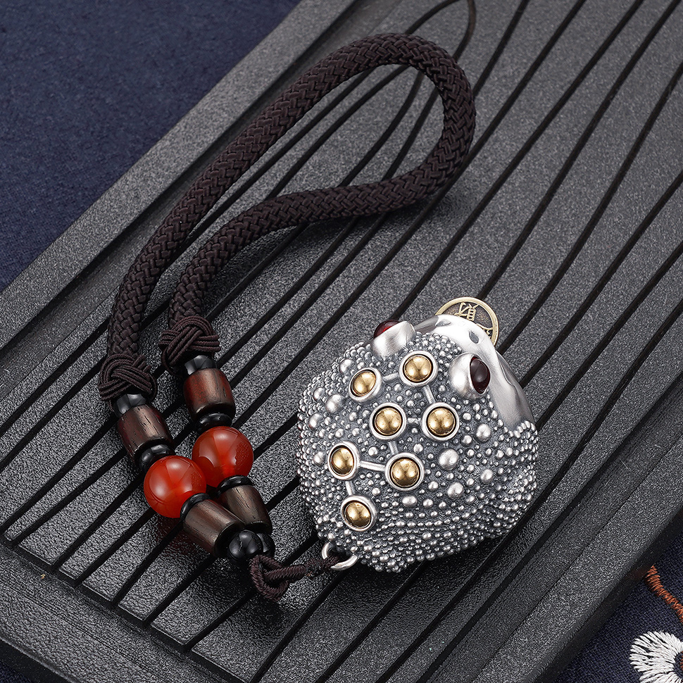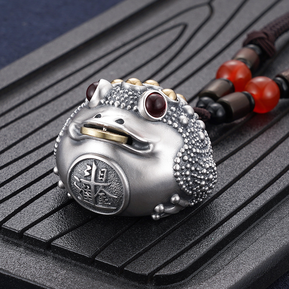 【寓意】:纯银金蟾手把件,口含钱币这一设计,象征招财进宝。背部可转动设计,寓意时来运转,财富生生不息。