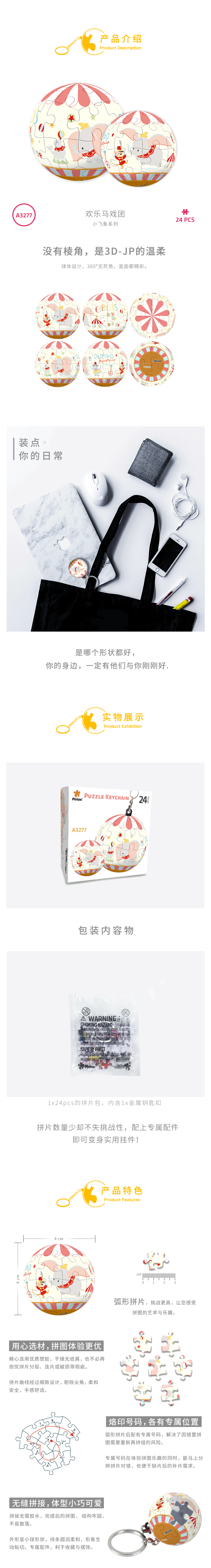 【折扣商品 不退不换】24片 钥匙扣拼图 塑料拼图A3277 小飞象系列-欢乐马戏团