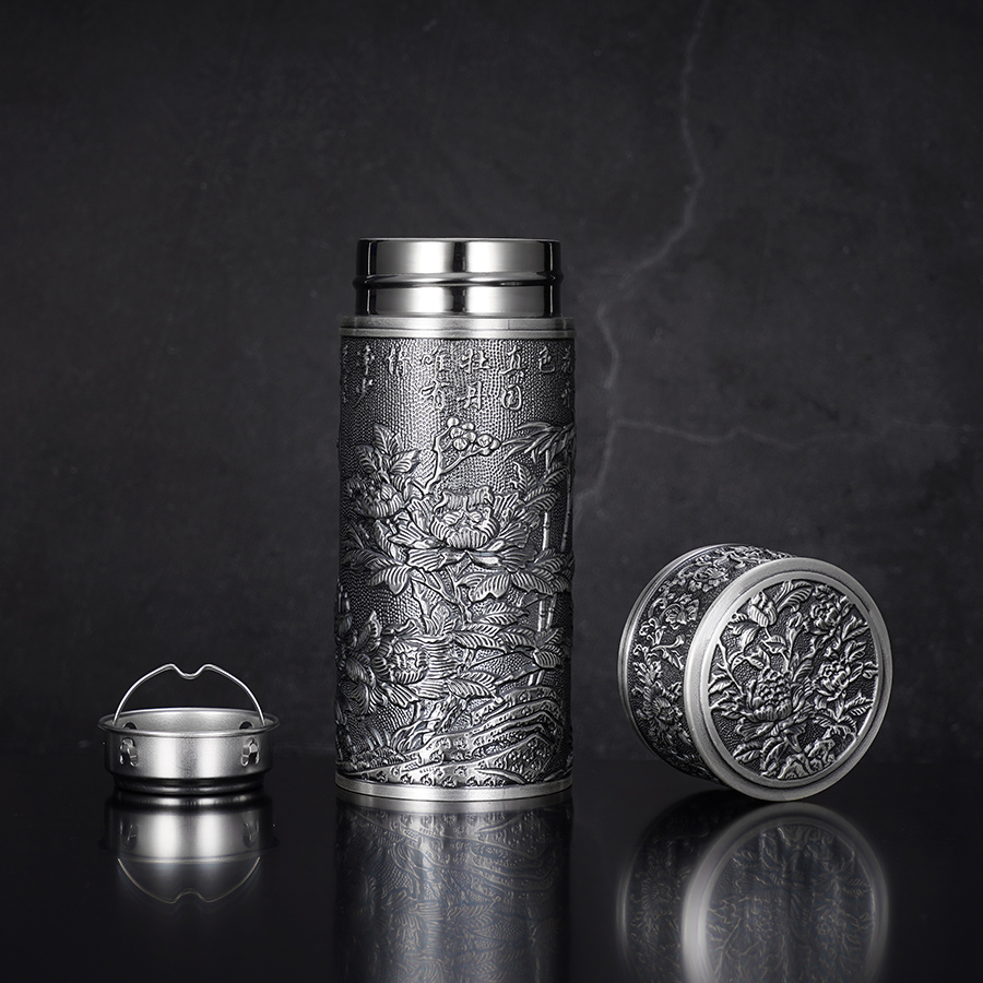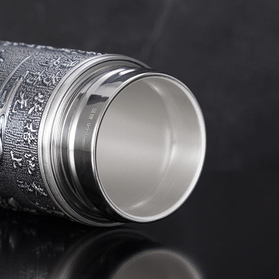 【寓意】:足银内胆杯,表面浮雕龙图案,立体深邃,神韵生动。独居东方力量感的佳作,寓意吉祥守护,招财纳福。