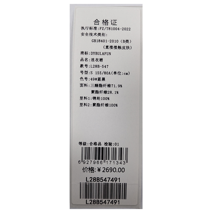 戴布拉芬连衣裙L28B547