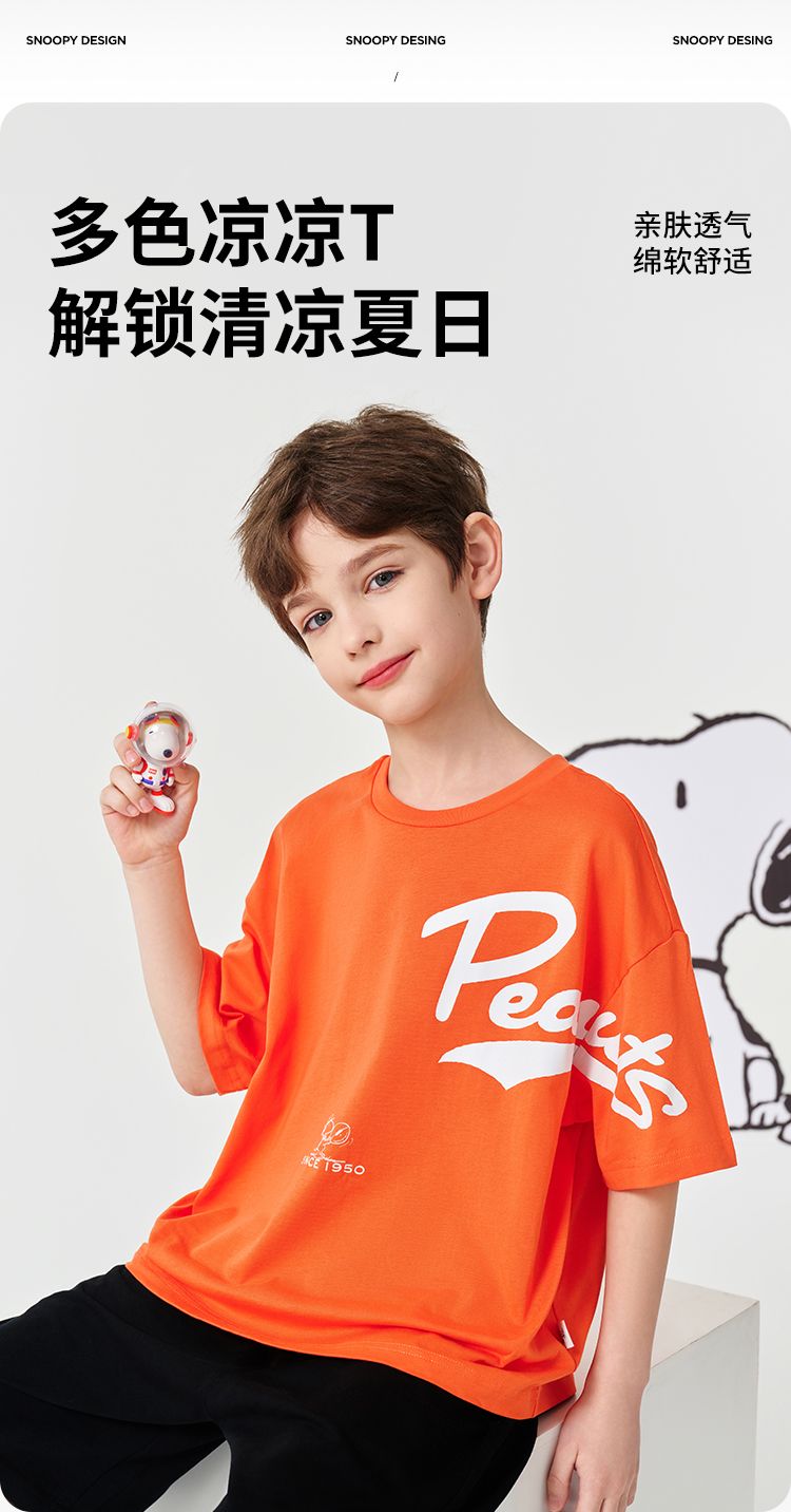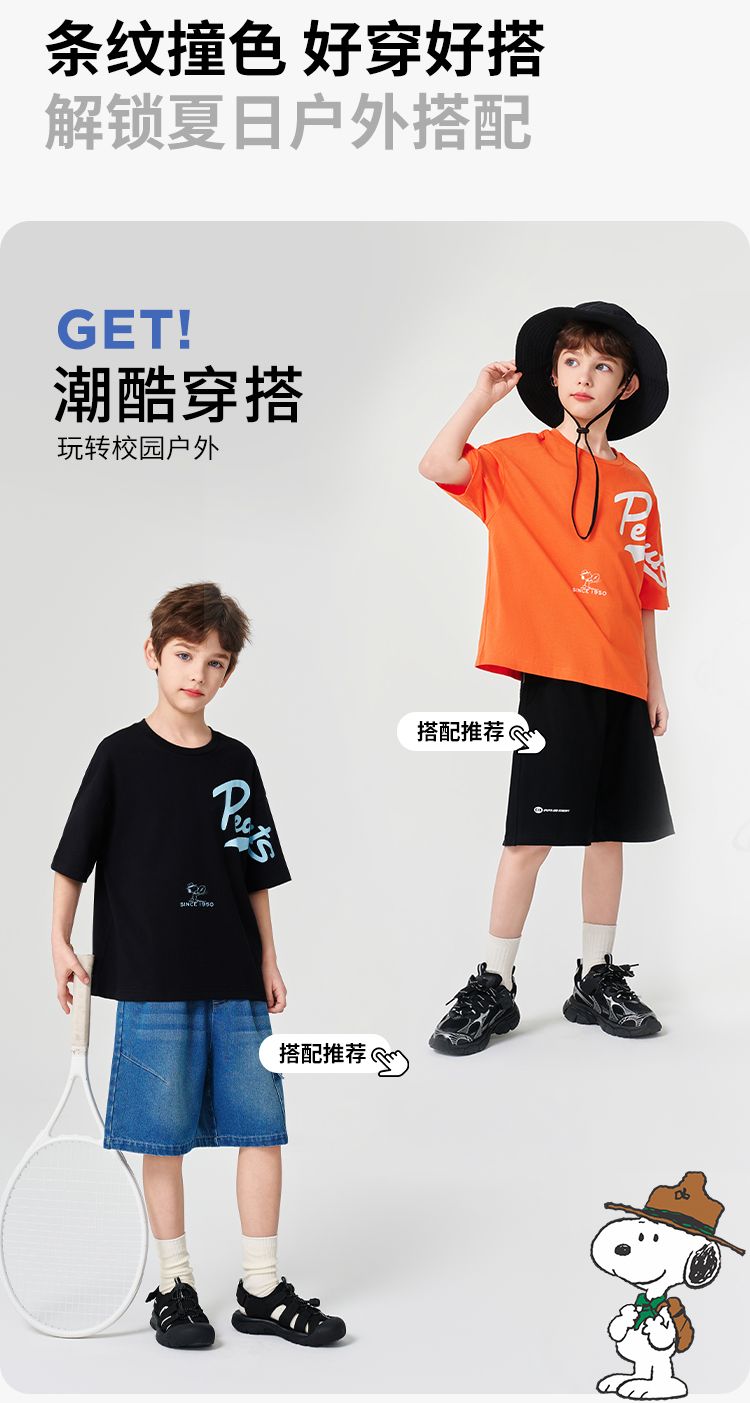 【130-170】【史努比】男童夏款撞色简约短袖t恤