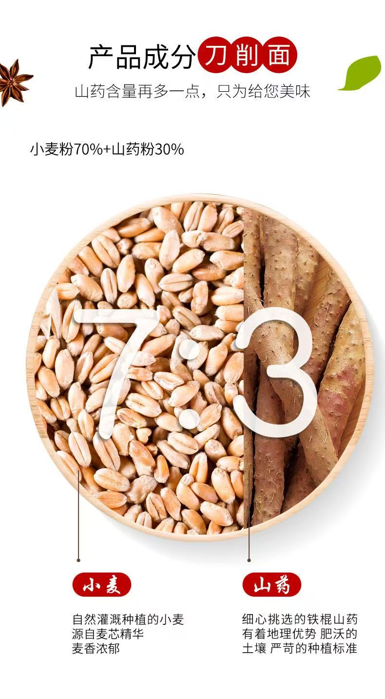 铁棍山药刀削面3斤山药刀削面 手工宽面 原味无添加 煮拌炒三用快手面