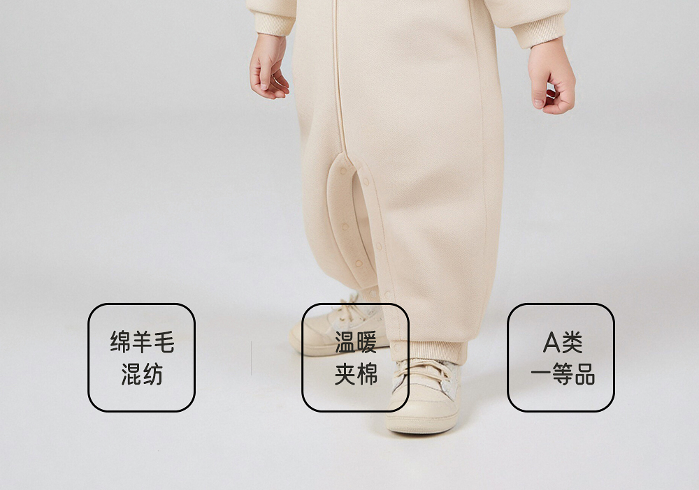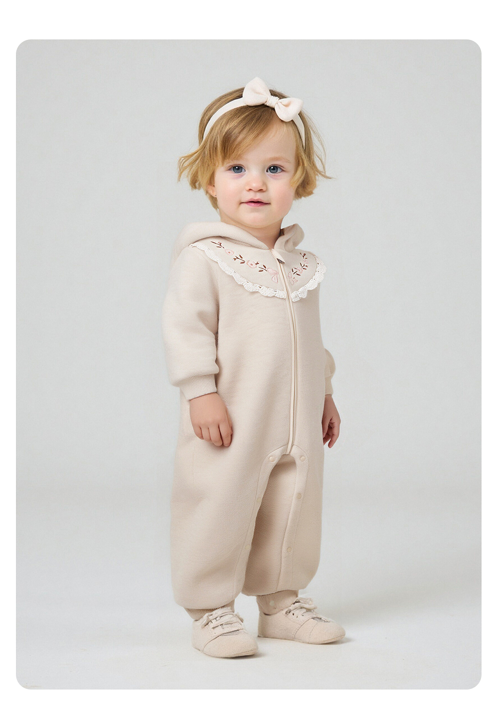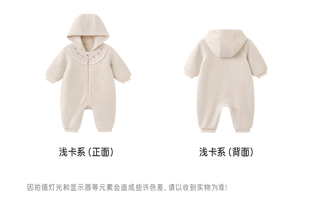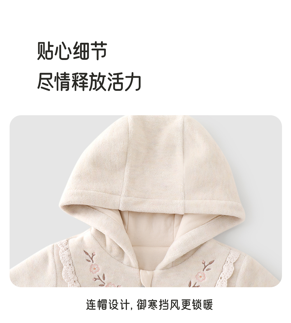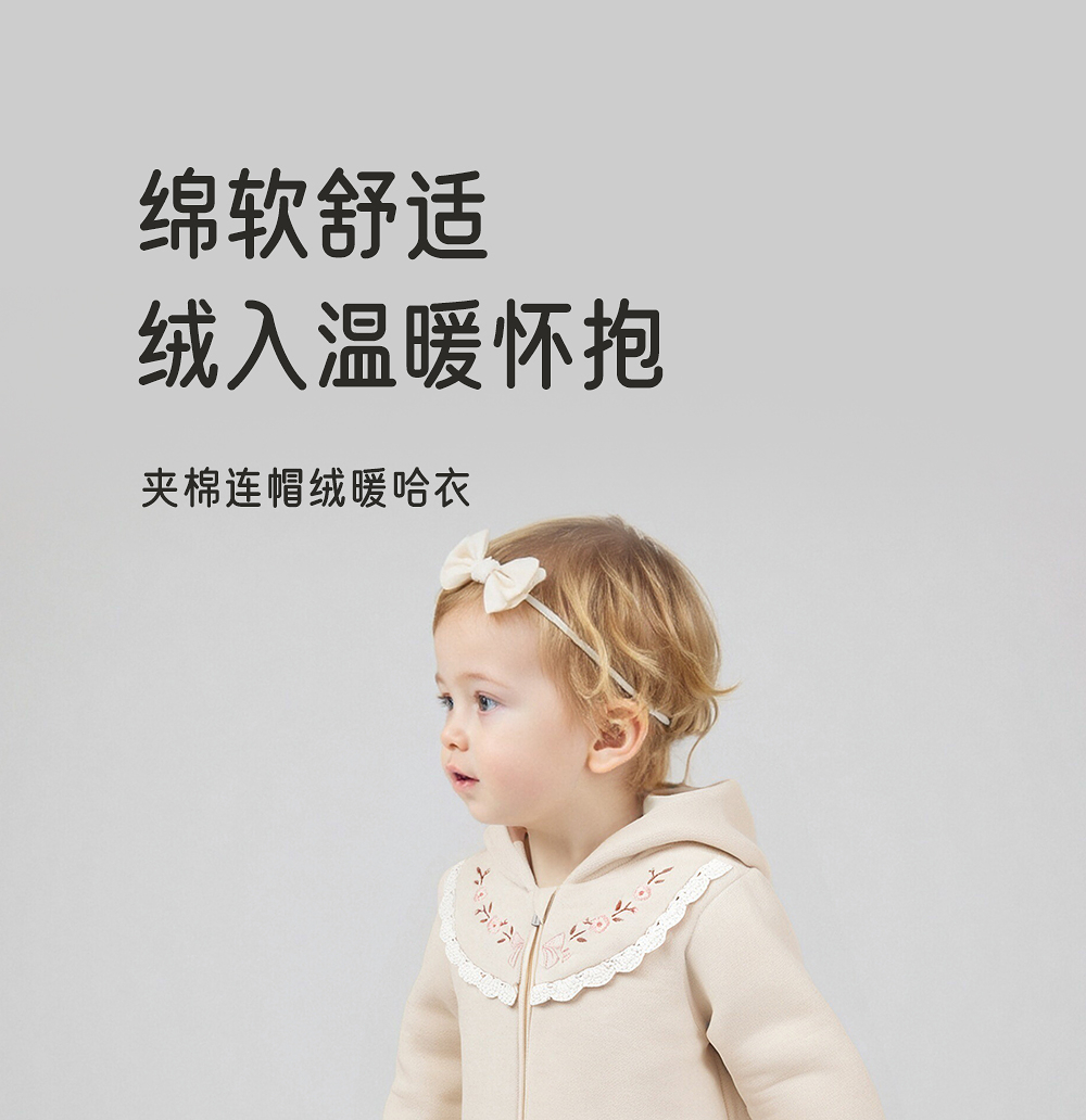 英氏婴儿连体衣冬季保暖加绒连帽棉爬服YRHFJ4R036A