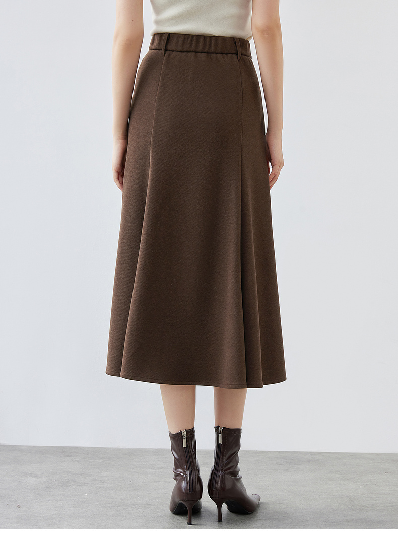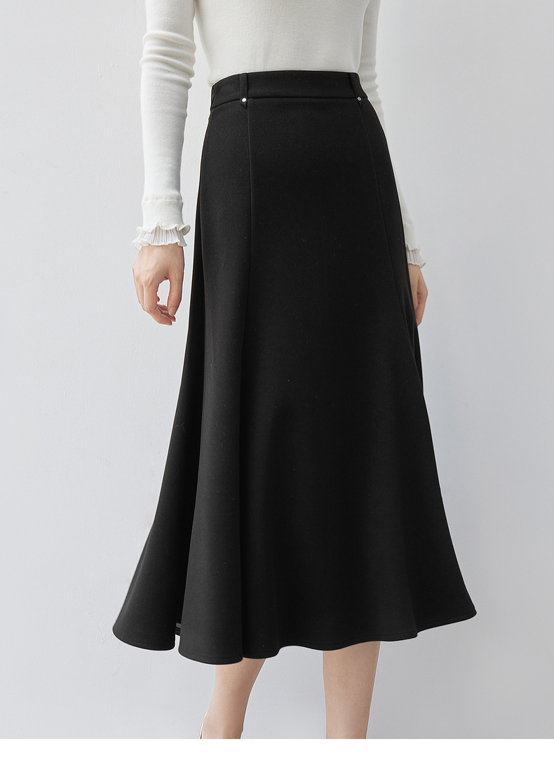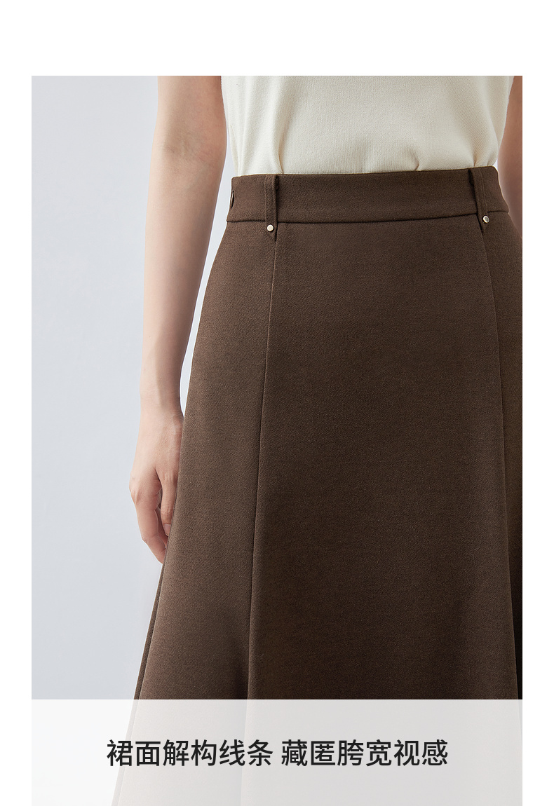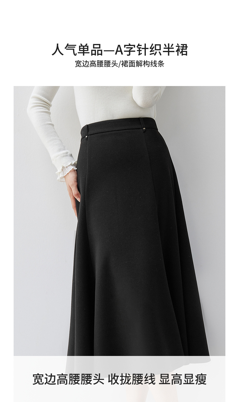 【内购】简约通勤高腰A字裙橡筋后腰撞钉装饰垂感大摆弹力针织半身裙-154QA3634X