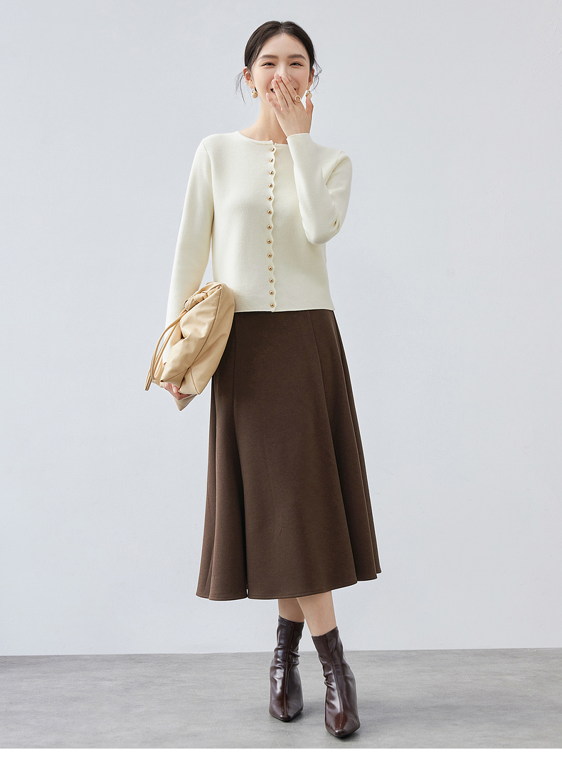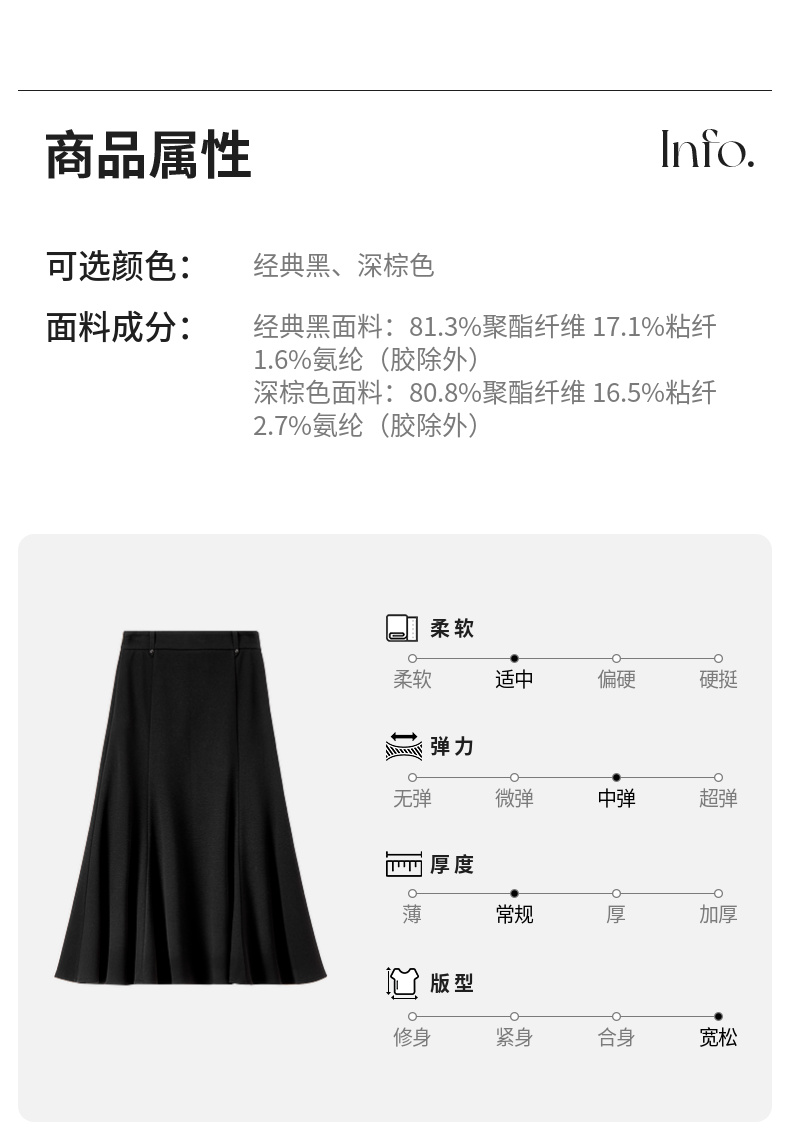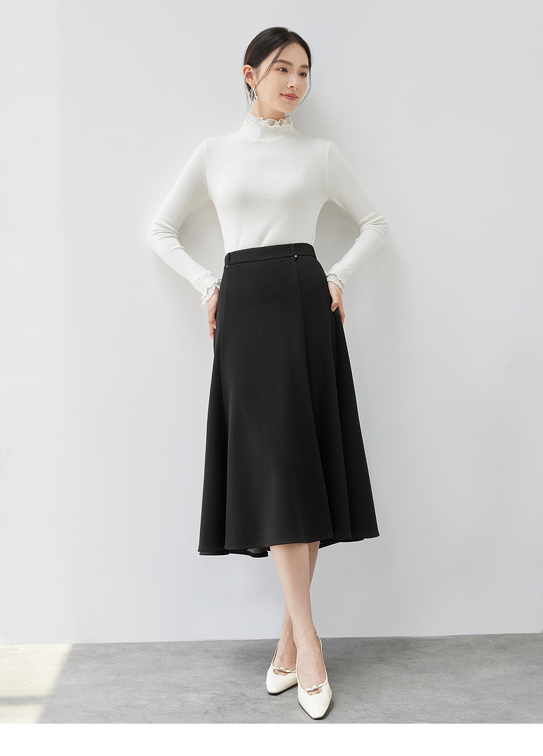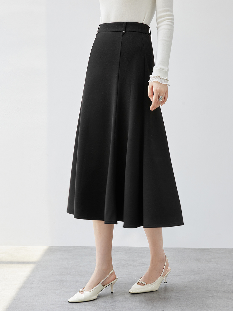 【内购】简约通勤高腰A字裙橡筋后腰撞钉装饰垂感大摆弹力针织半身裙-154QA3634X