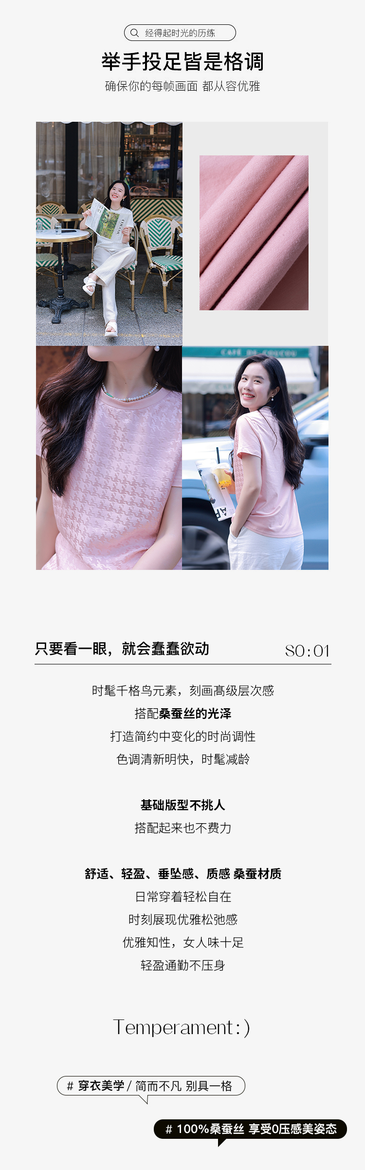 【回馈粉丝】千鸟格桑蚕丝拼接t