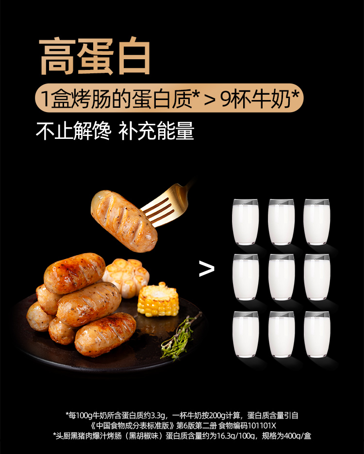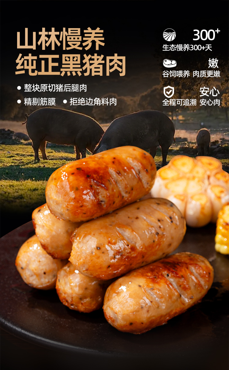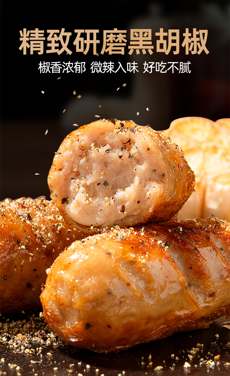 第二盒半价头厨黑猪肉爆汁烤肠-黑胡椒味(400g/盒 8根)生产日期: 2月